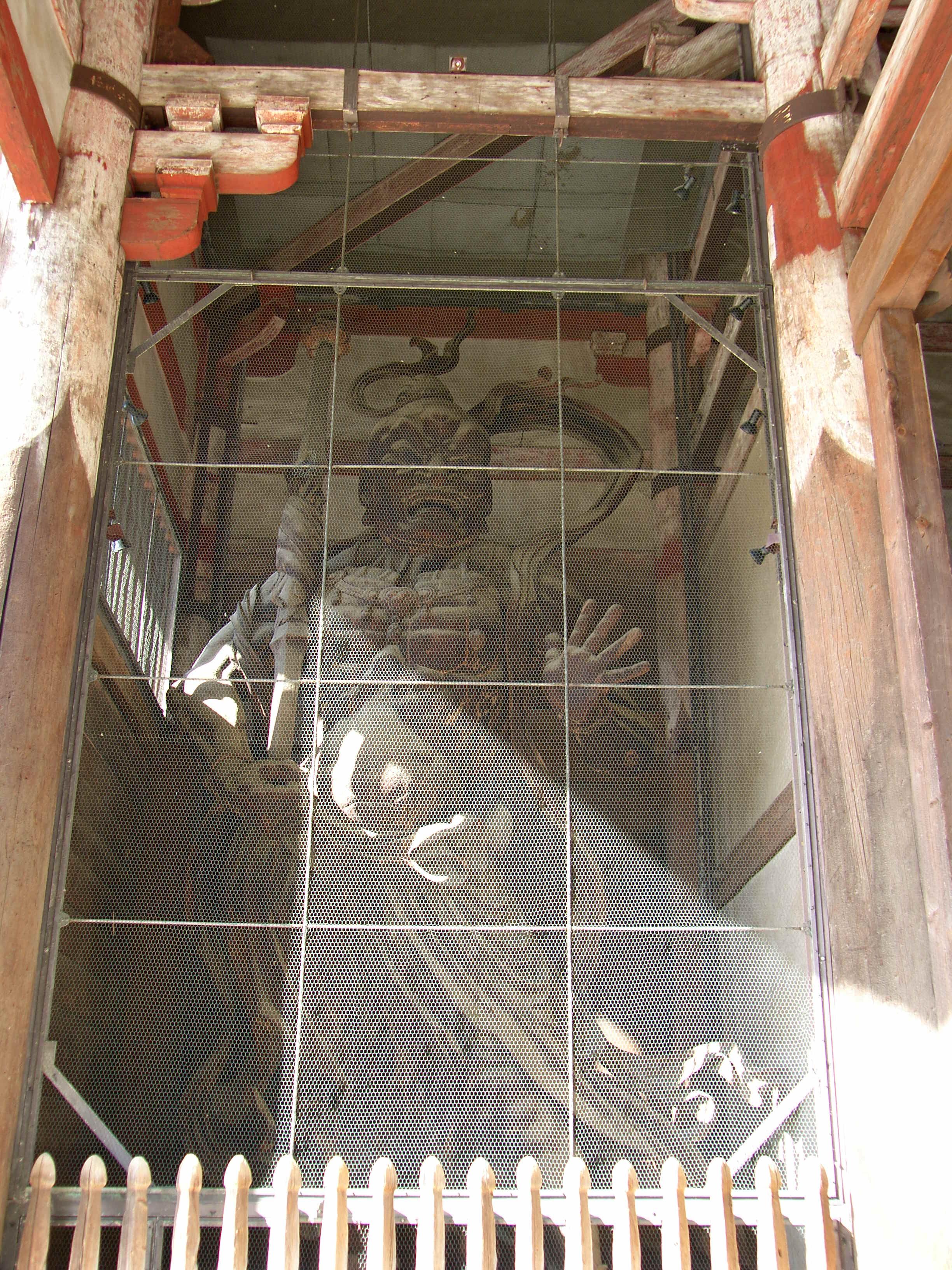 금강역사 두 분은 모두 목조입니다. 높이가 무려 8.4미터에 달합니다. 우리로 치면 고려 중기 때인 건인建仁 3년, 1203년에 69일이 걸려 완성했다고 합니다.