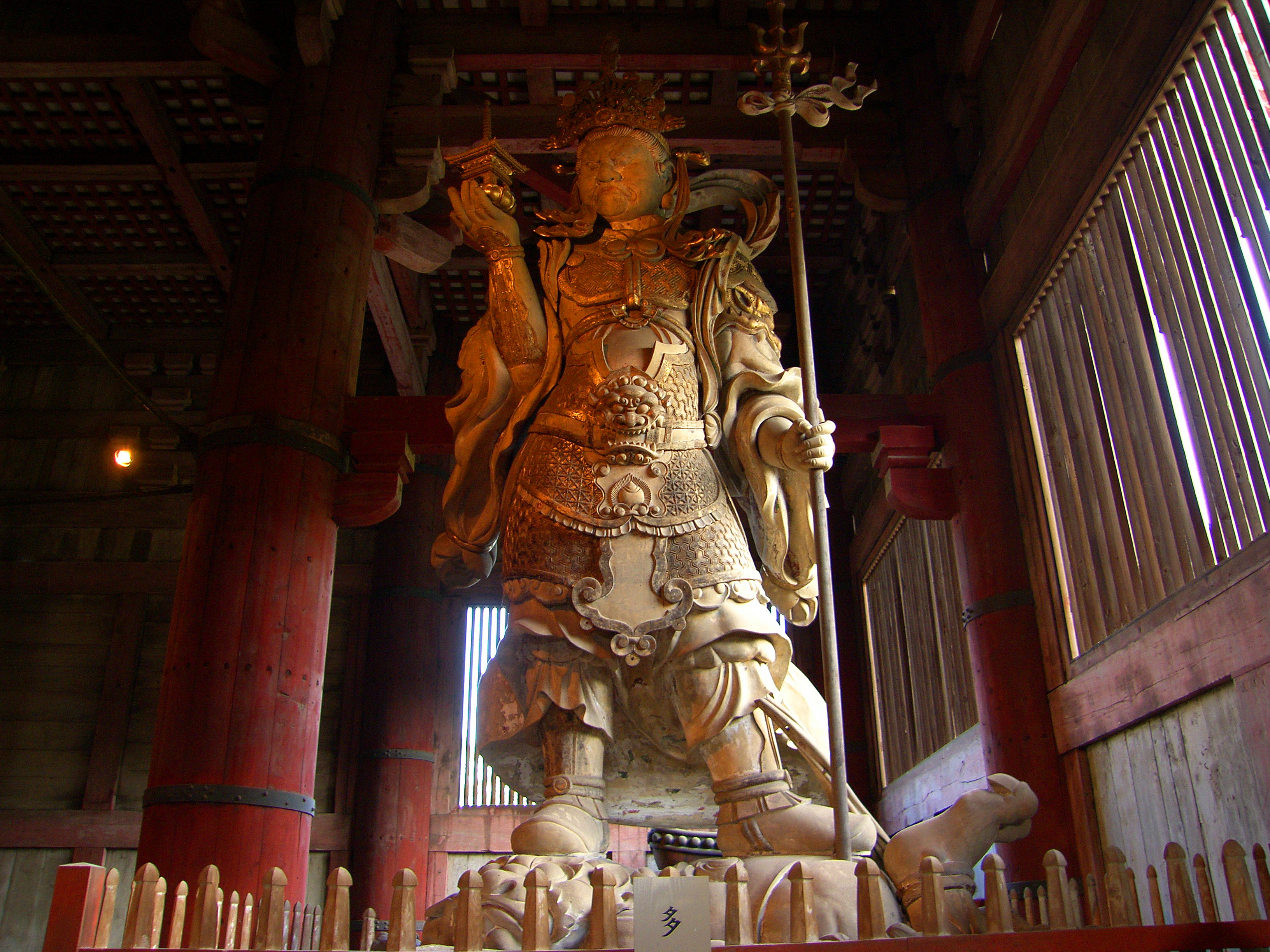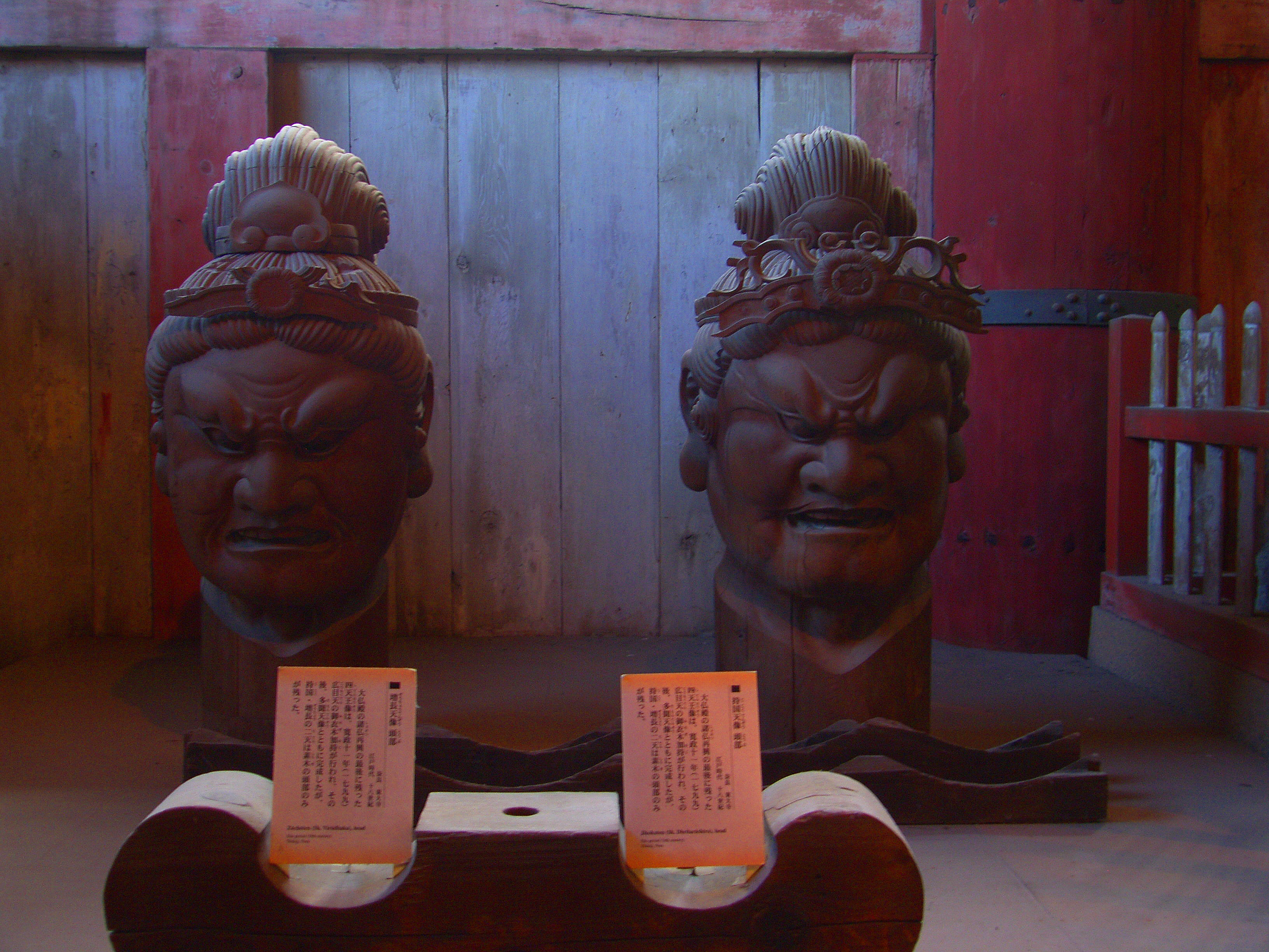 대불전 안 북서쪽과 북동쪽 귀퉁이에 사천왕四天王 중에서도 서쪽을 담당하는 광목천왕広目天像과 북쪽을 담당하는 다문천왕多聞天像을 모셔놨습니다. 사방을 수호한다는 뜻입니다.