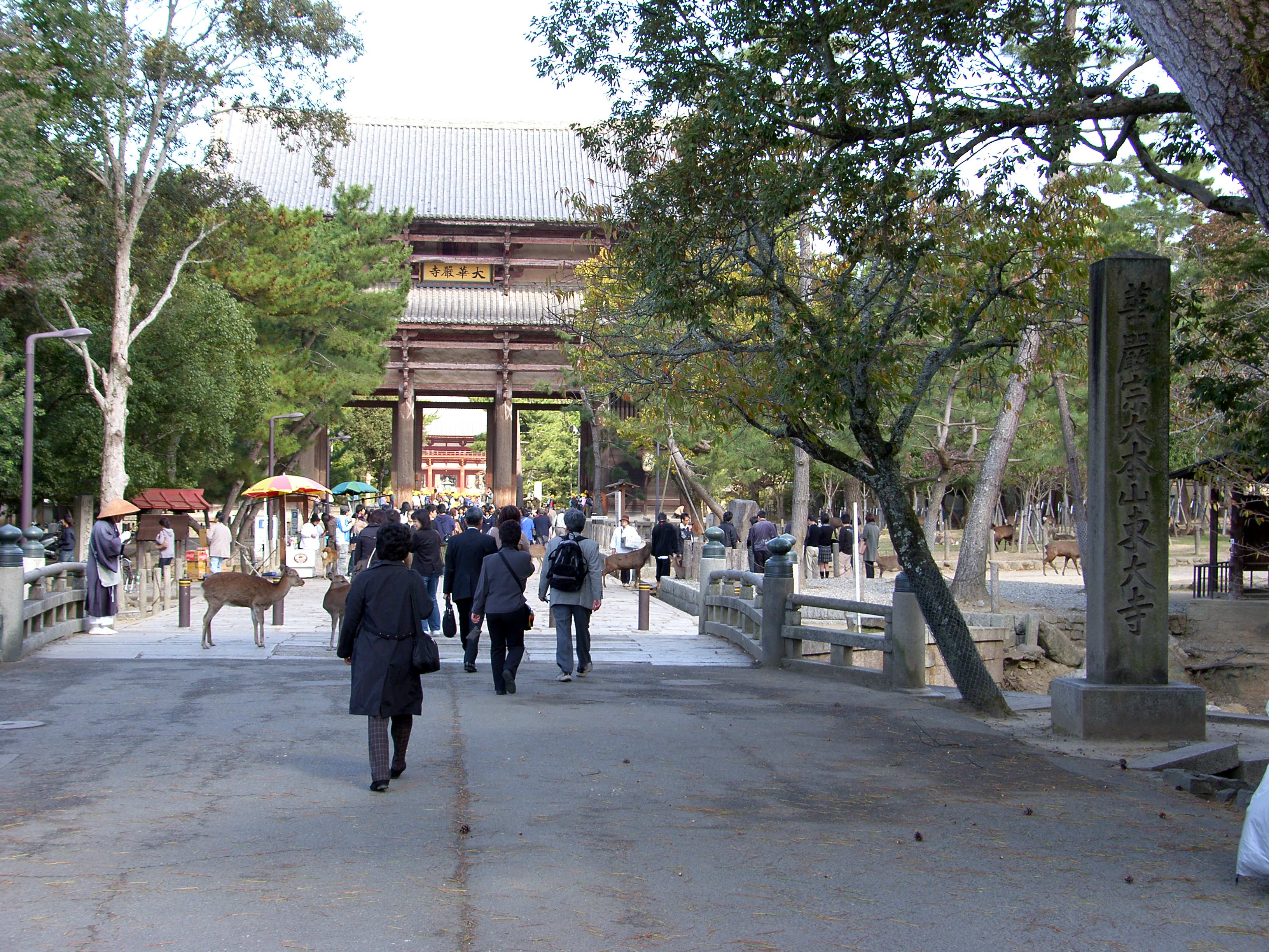 한국에서는 보통 입구에 일주문이라 해서 기둥 한 줄로 만든 대문을 세우고는 무슨 산 무슨 寺라는 표식을 큼지막하게 하는데, 이 동대사는 그런 일주문 대신, 저런 큰 대문 하나가 있습니다.