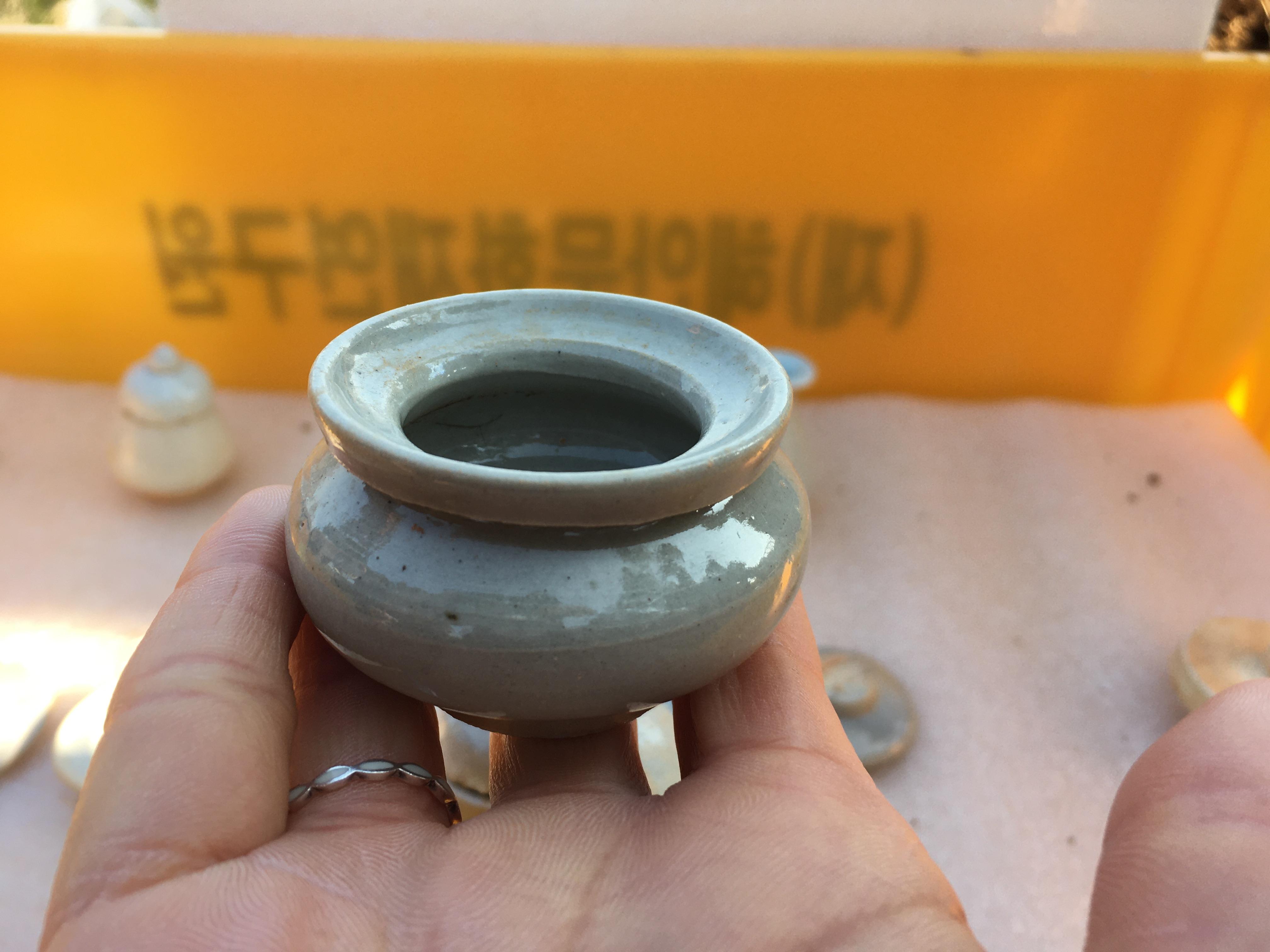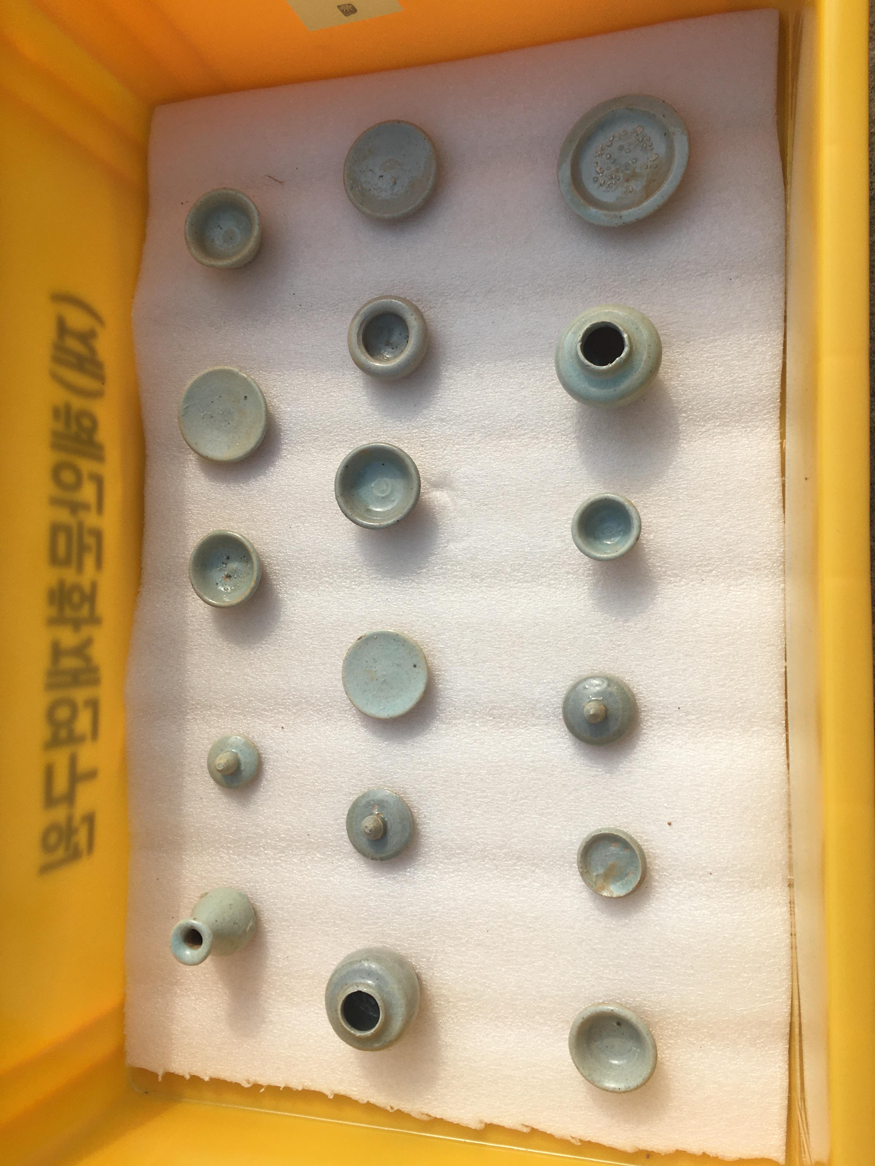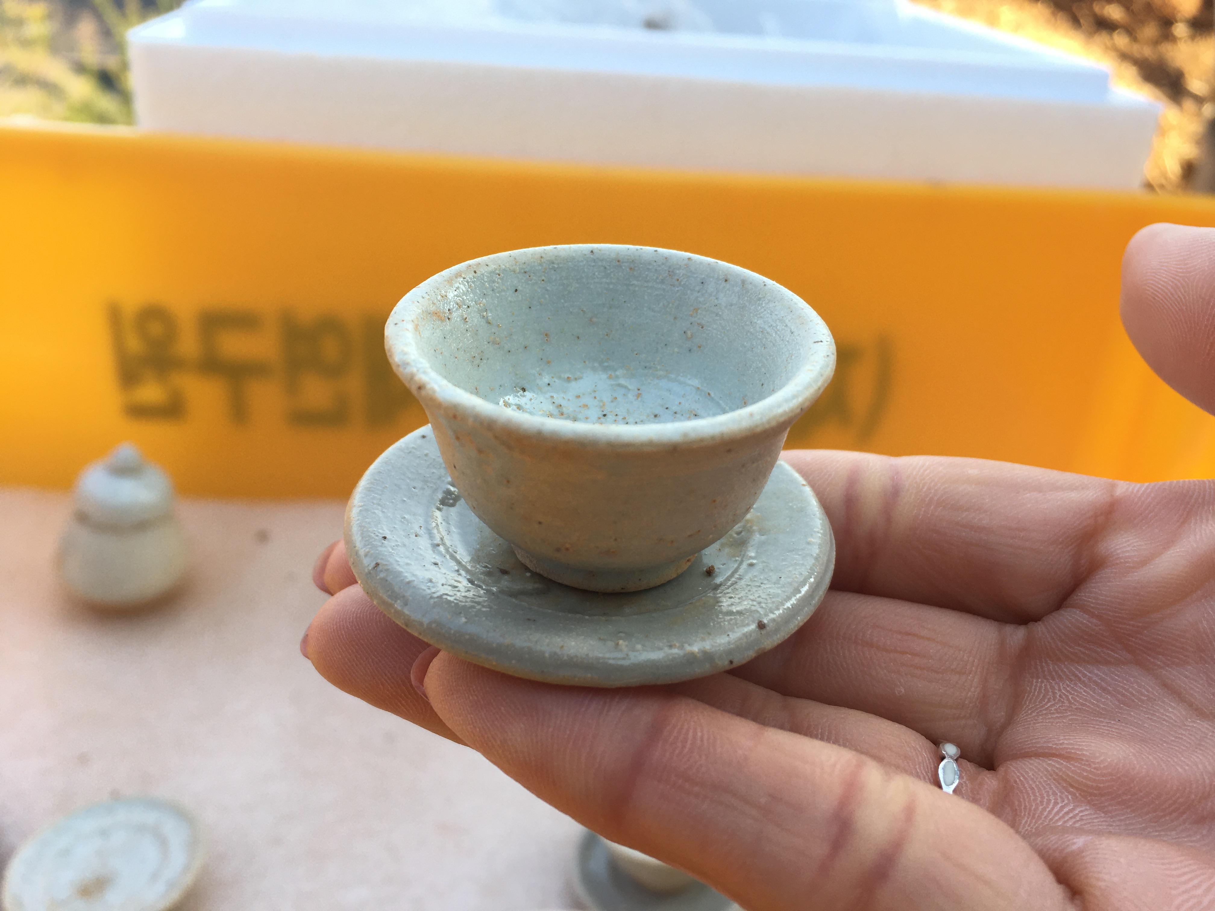 좌우의 감실에서 백자 명기가 각각 17점, 20점이 출토되었는데 여자측 명기가 유색이나 굽의 상태로 보아 좀 더 고급품이다. 조사단에서는 17세기 관요 생산품으로 추정했다.