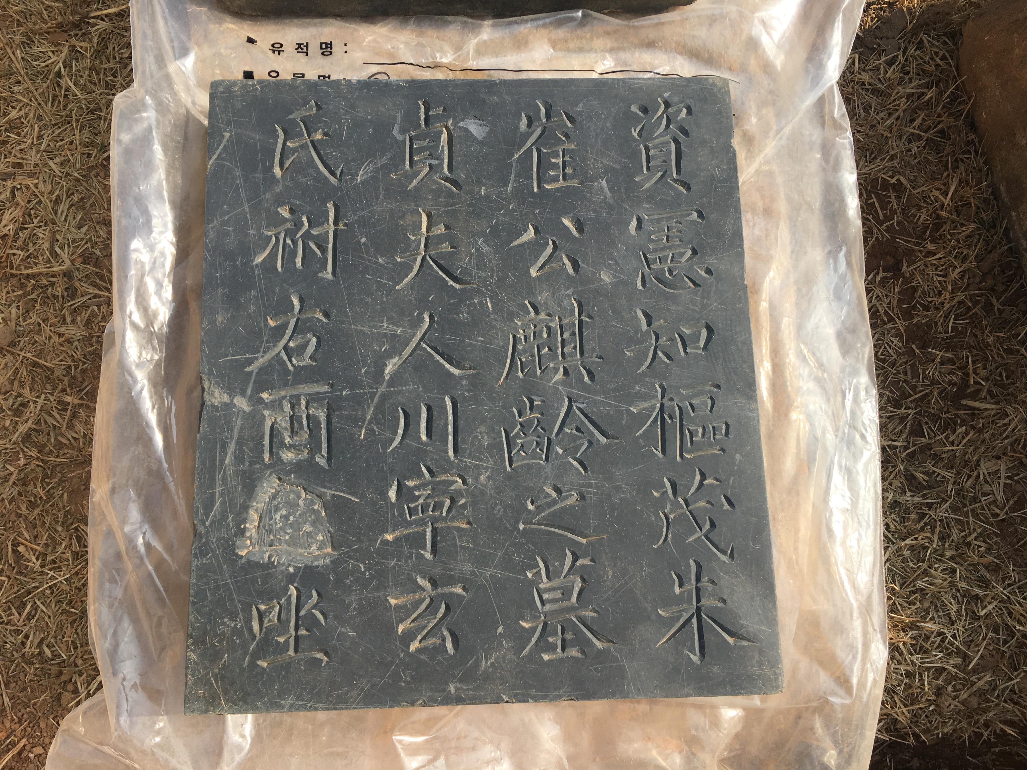 가경7년(1802년)명 지석이 나온 최기령의 묘는 정부인 천녕현씨와 증정부인 정읍이씨와의 합장묘다. 최기령(1737~1802)은 집안대대로 역관을 지냈는데 왜학을 전공했다. 지석은 두장인데 한장은 벼루를 재활용한 듯 하다.
