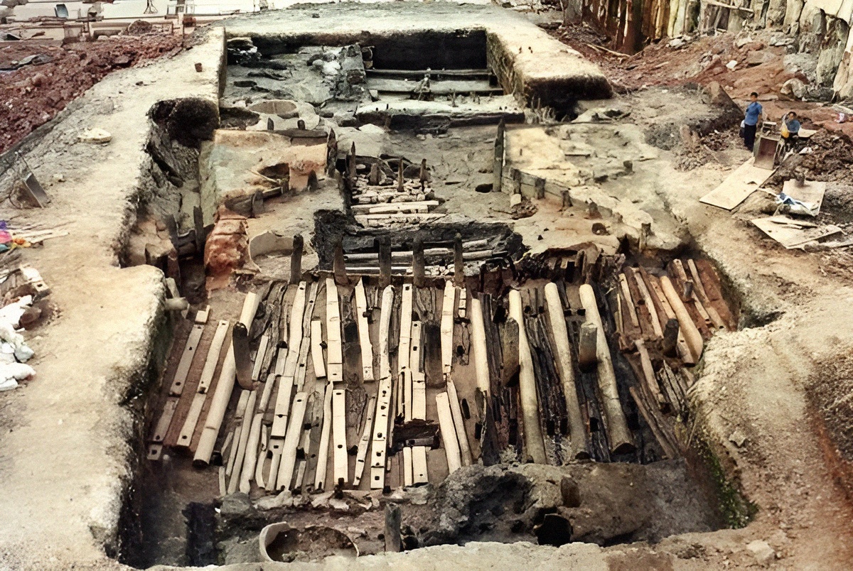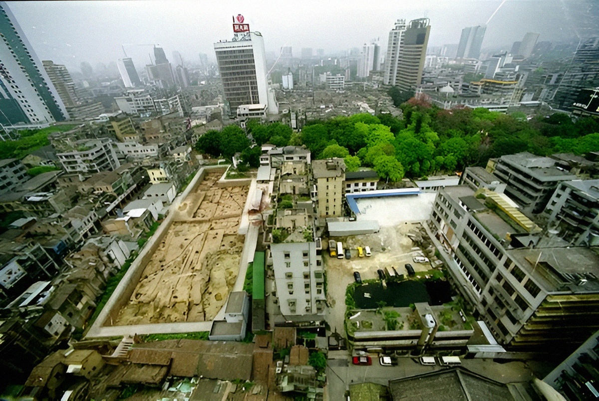 1997년에는 신덕문화광장信德文化廣場 건설현장에서 서쪽에서 동쪽으로 이어지는 150m 길이 곡류석거曲流石渠가 발견됐다. 이 석거 바닥에는 검은색 난석卵石을 깔았다.