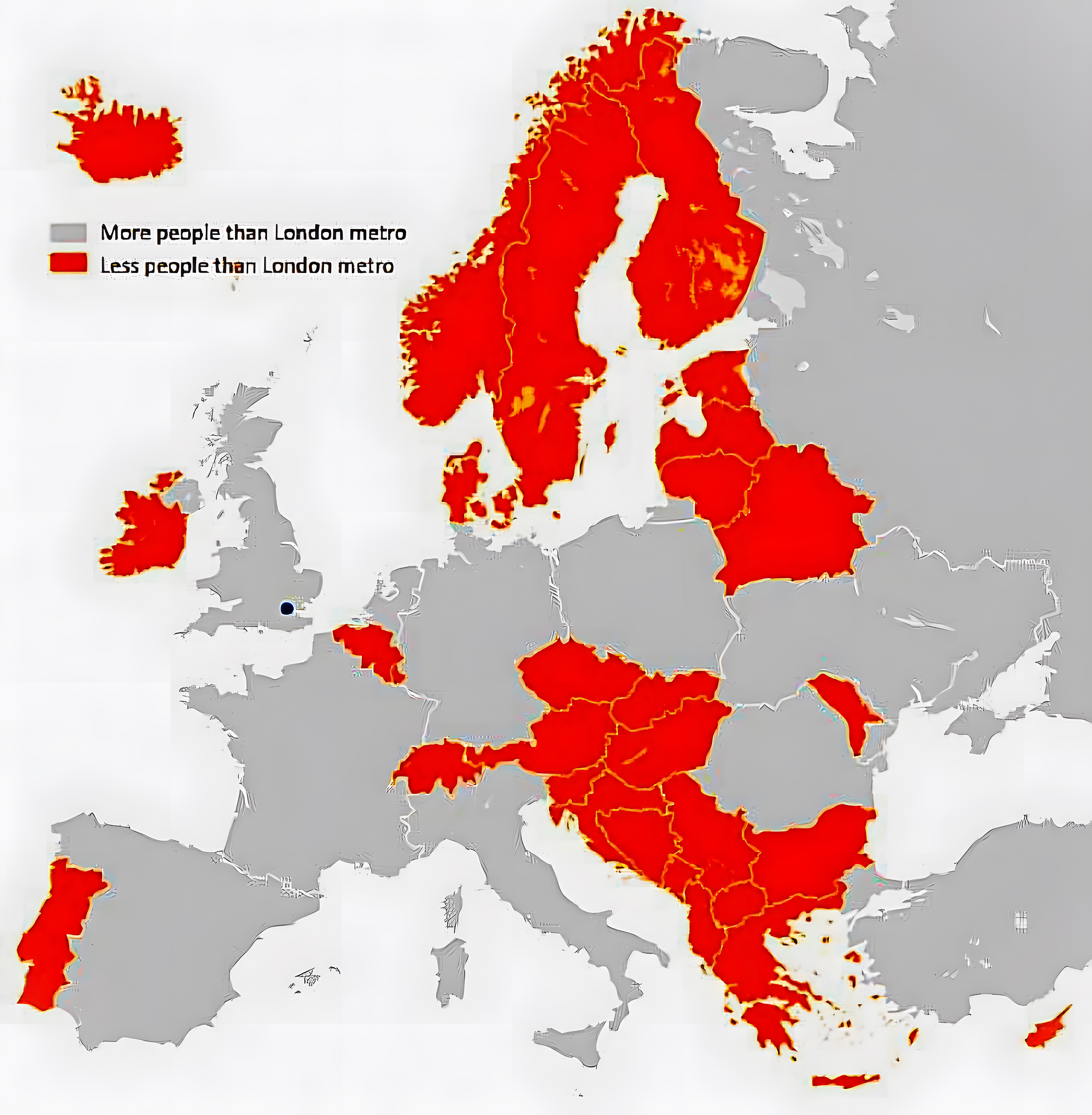 곧, 광역 런던보다 인구수가 적은 유럽 국가 현황이다.