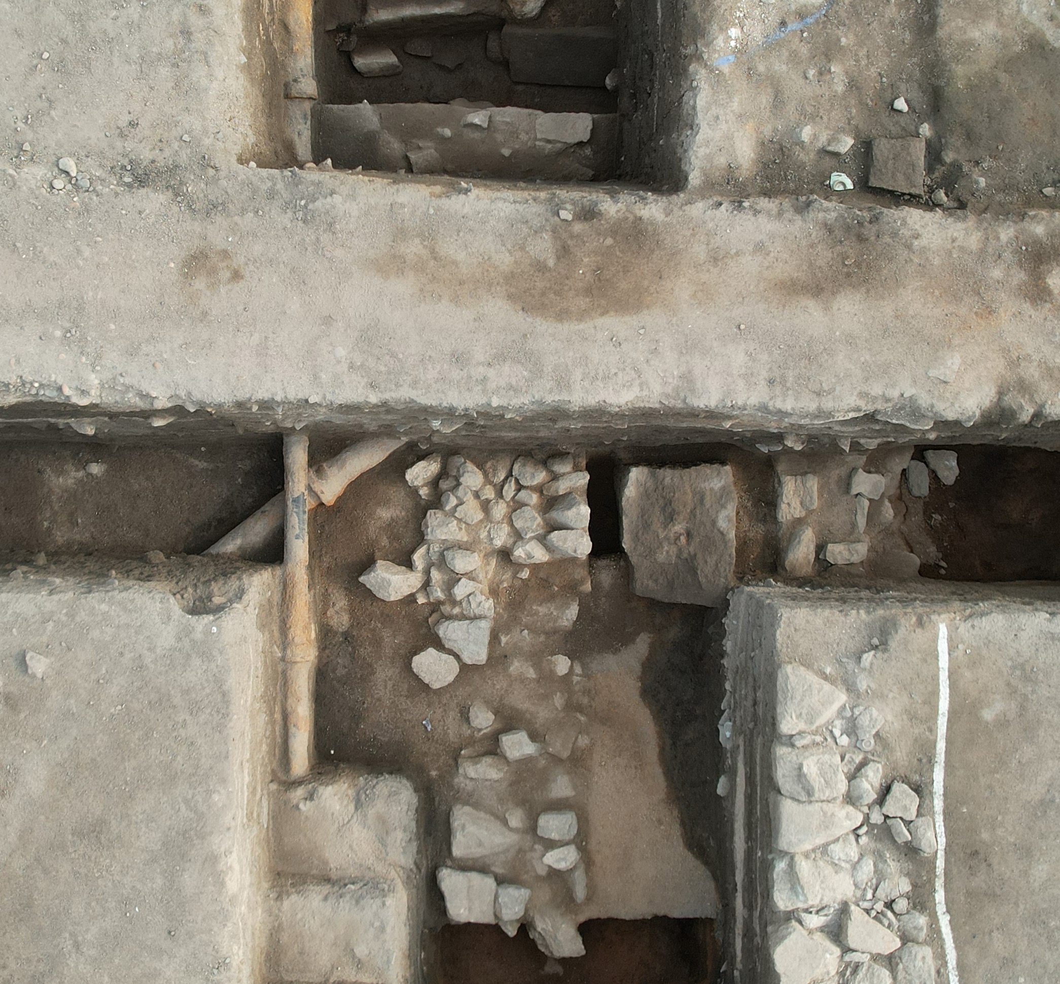 양쪽 돌렬 사이는 너비가 약 85cm로, 길이 20~30cm인 크고 작은 석재가 일정한 너비를 이루며 남북방향으로 길게 이어진댄다.