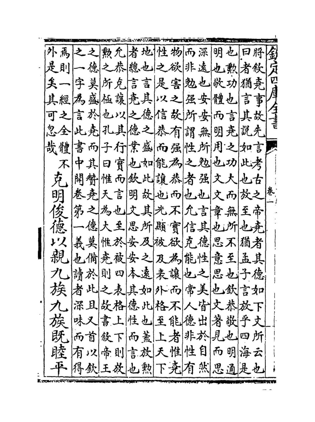 “옛날 요 임금을 상고하건대, 방훈이시니, 공경하고 밝고 문채 나고 생각함이 편안하고 편안하시며 진실로 공손하고 능히 겸양하시어 광채가 사표에 입혀지며 상하에 이르셨다.[曰若稽古帝堯 曰放勳 欽明文思安安 允恭克讓 光被四表 格于上下]”