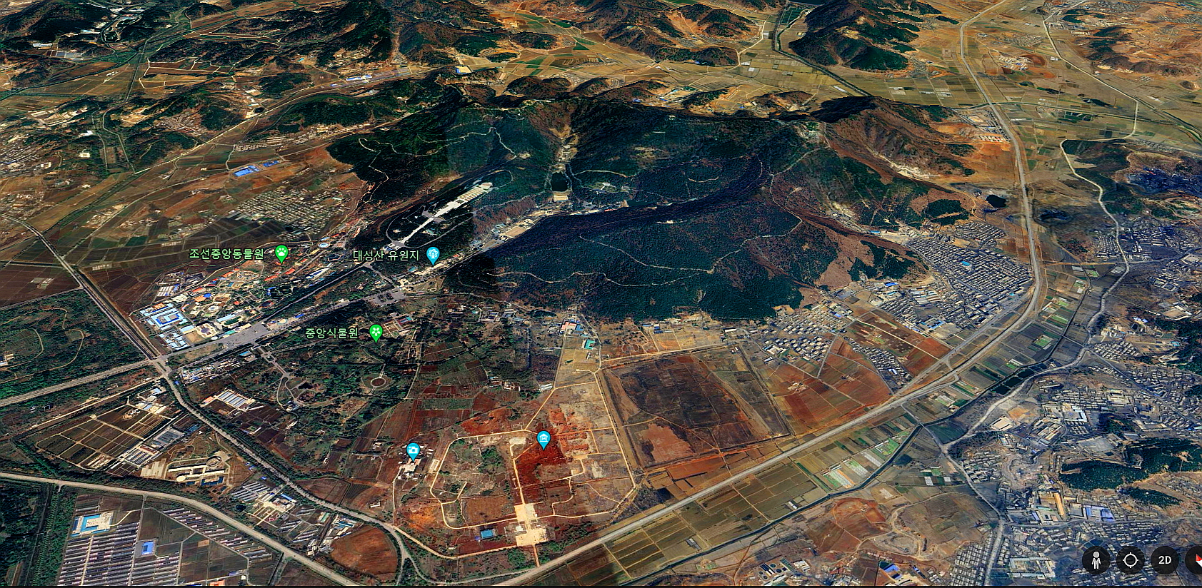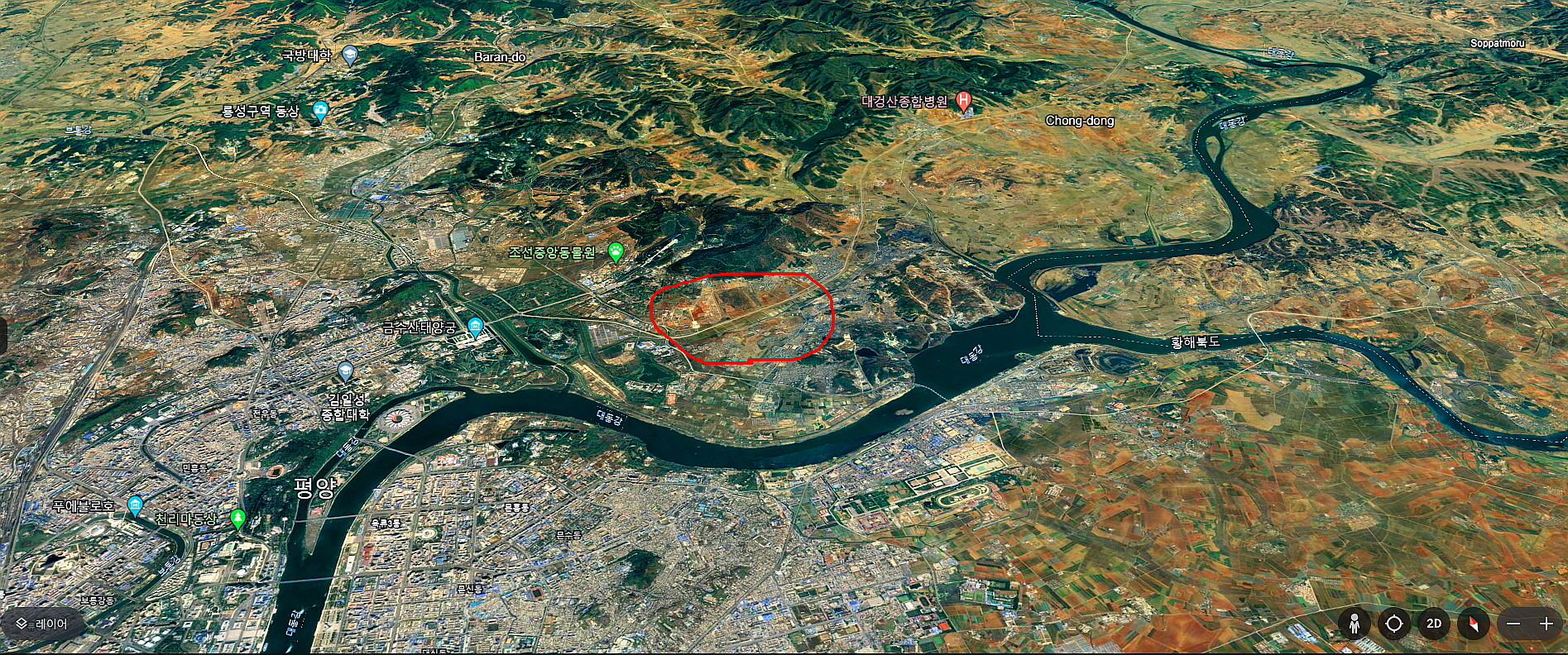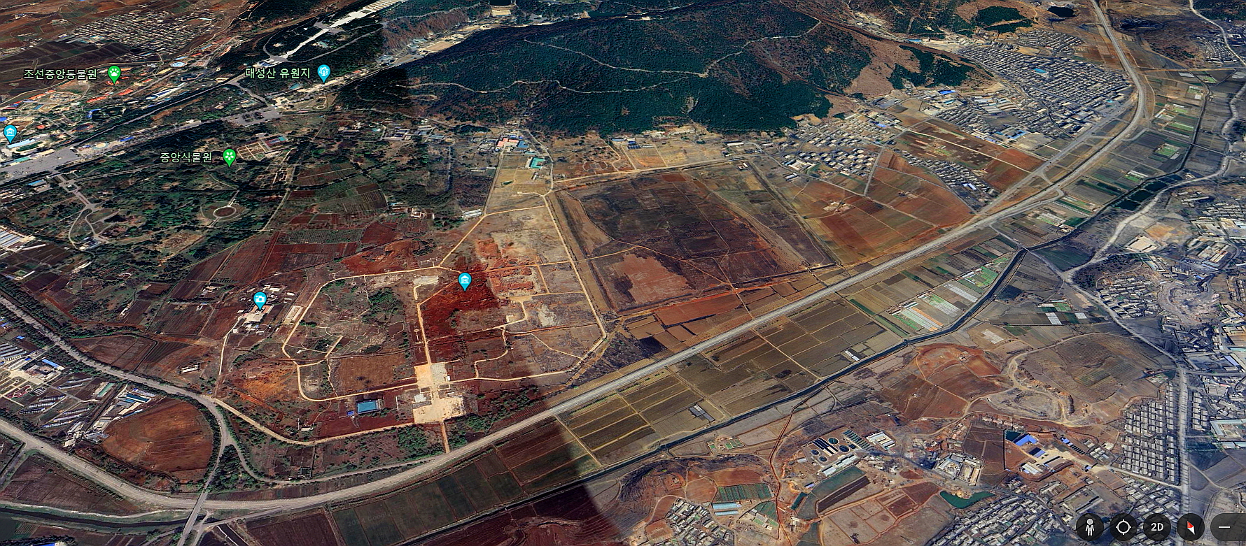구글어스로 평양을 탐방한다. 툭하면 하는 북한 여행인데 묘미가 있다. 이 구글어스도 유료인가 전환하면 더 좋은 환경을 제공하는 것으로 안다. 요새 계속 이 대성산 남쪽 기슭 안학궁을 탐방