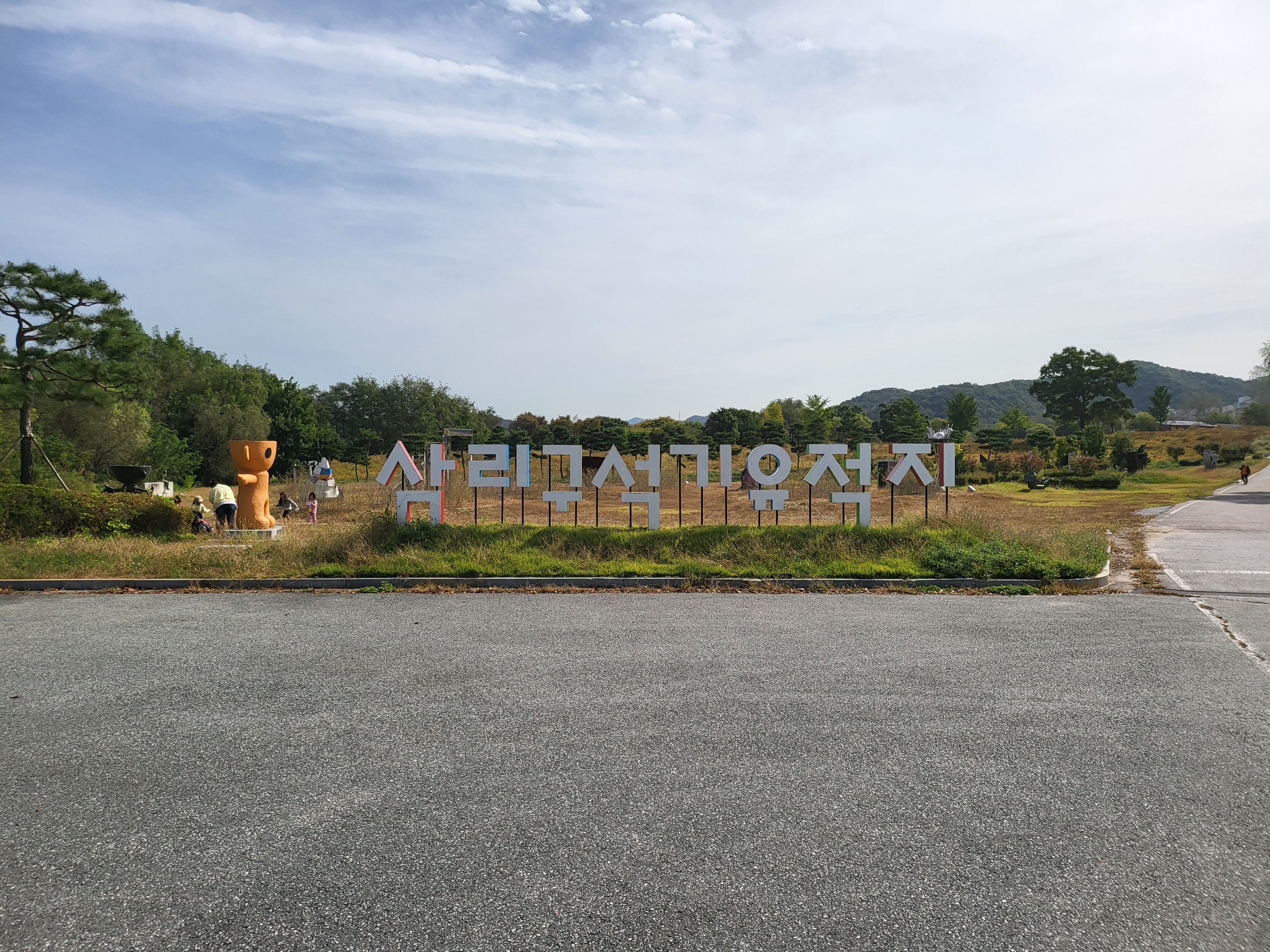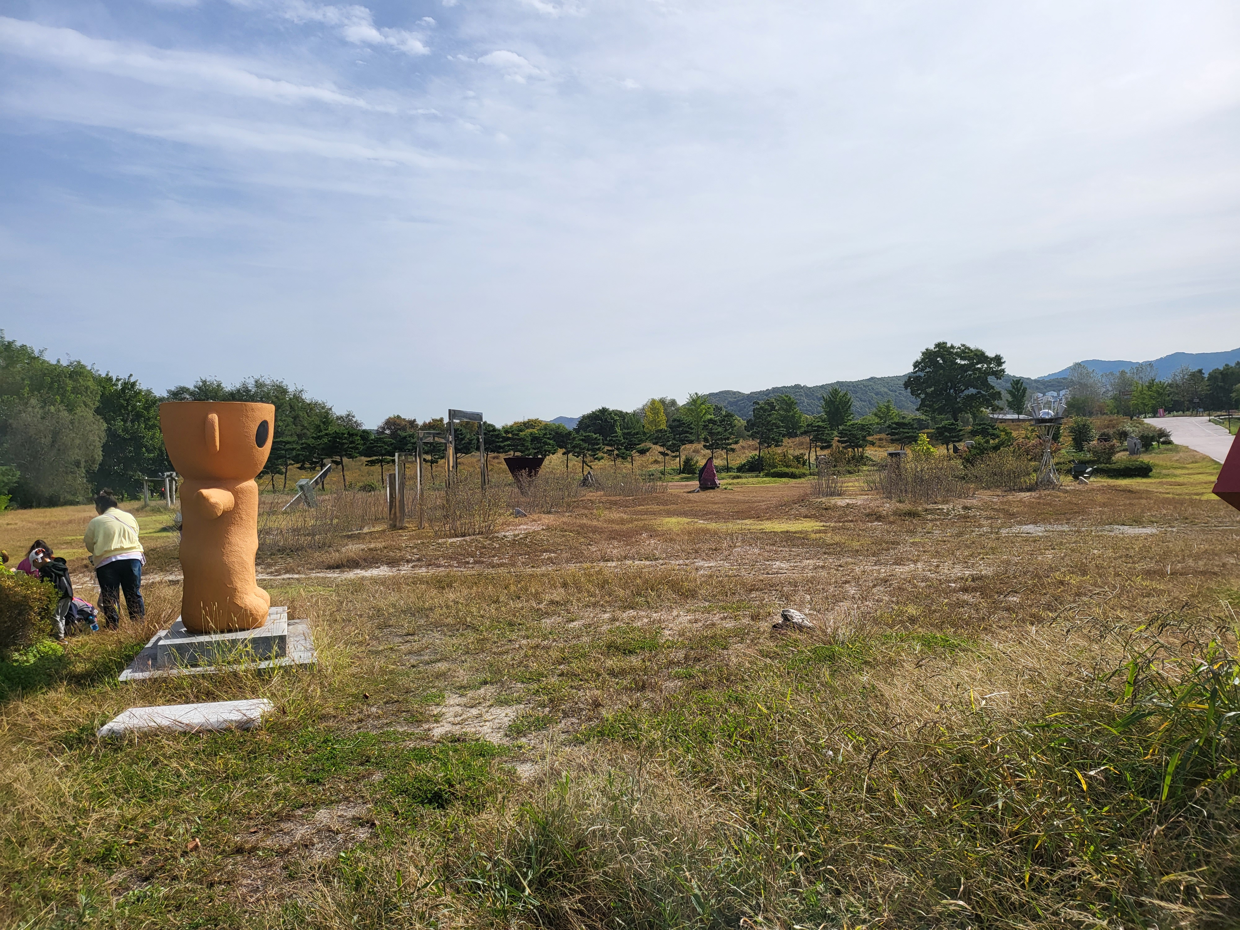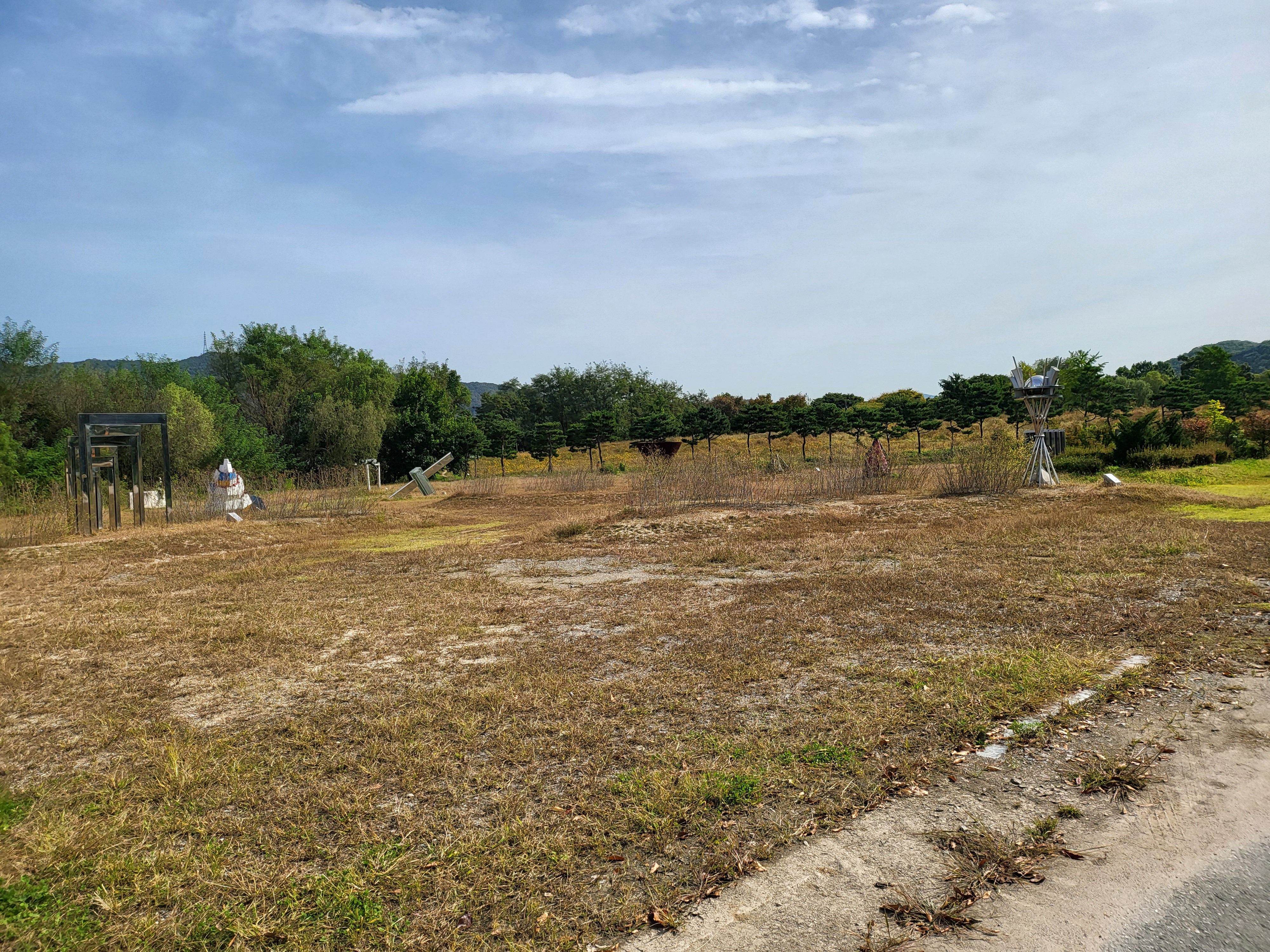 이곳이 열라 중요한 유적이라는 강박 가득한 안내판 하나랑 족보도 없는 조형물 몇 개, 그리고 잡풀 들판이 전부다.