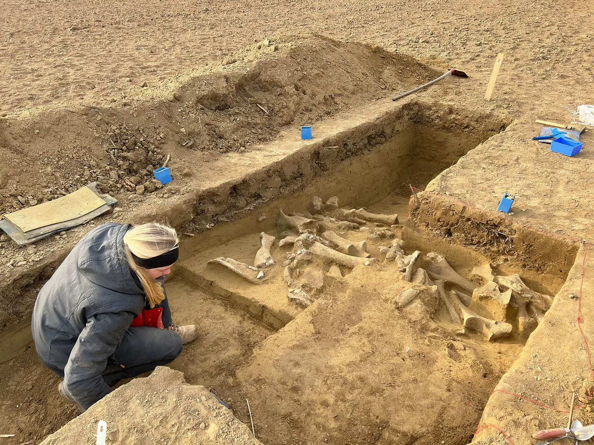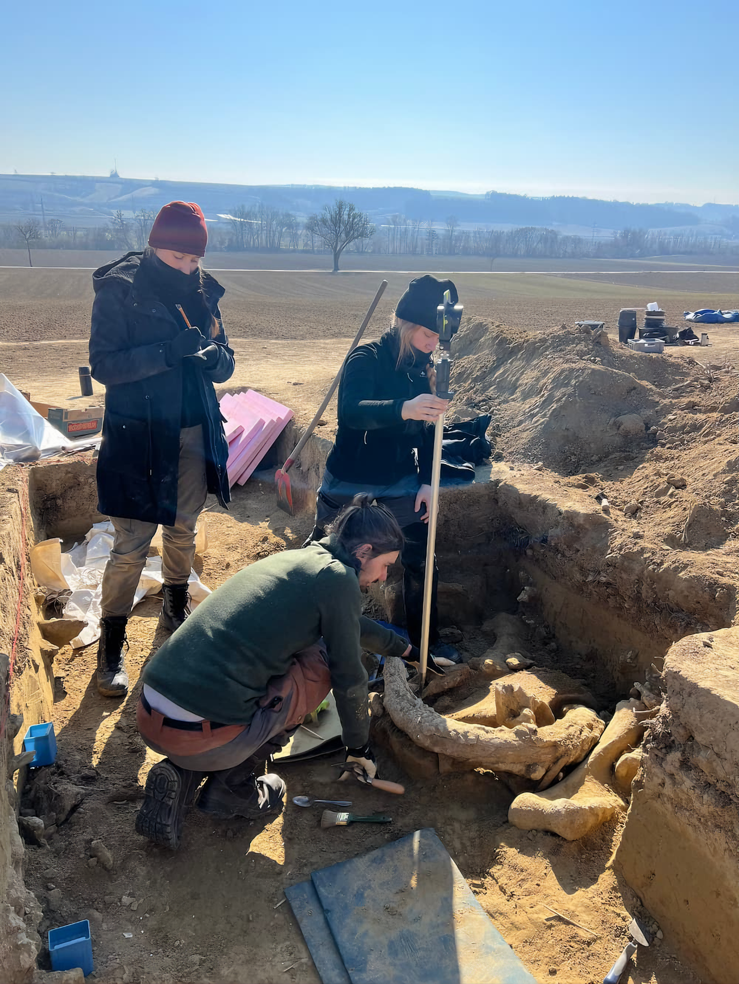 불과 50피트 떨어진 곳에서 고고학자들은 상아를 포함한 매머드 3마리 유해를 더 발견했다.