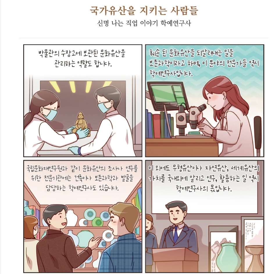물론 이 짧은 만화로 학예연구사라는 직업을 모두 담을 수도 없고, 설명할 수도 없지만,