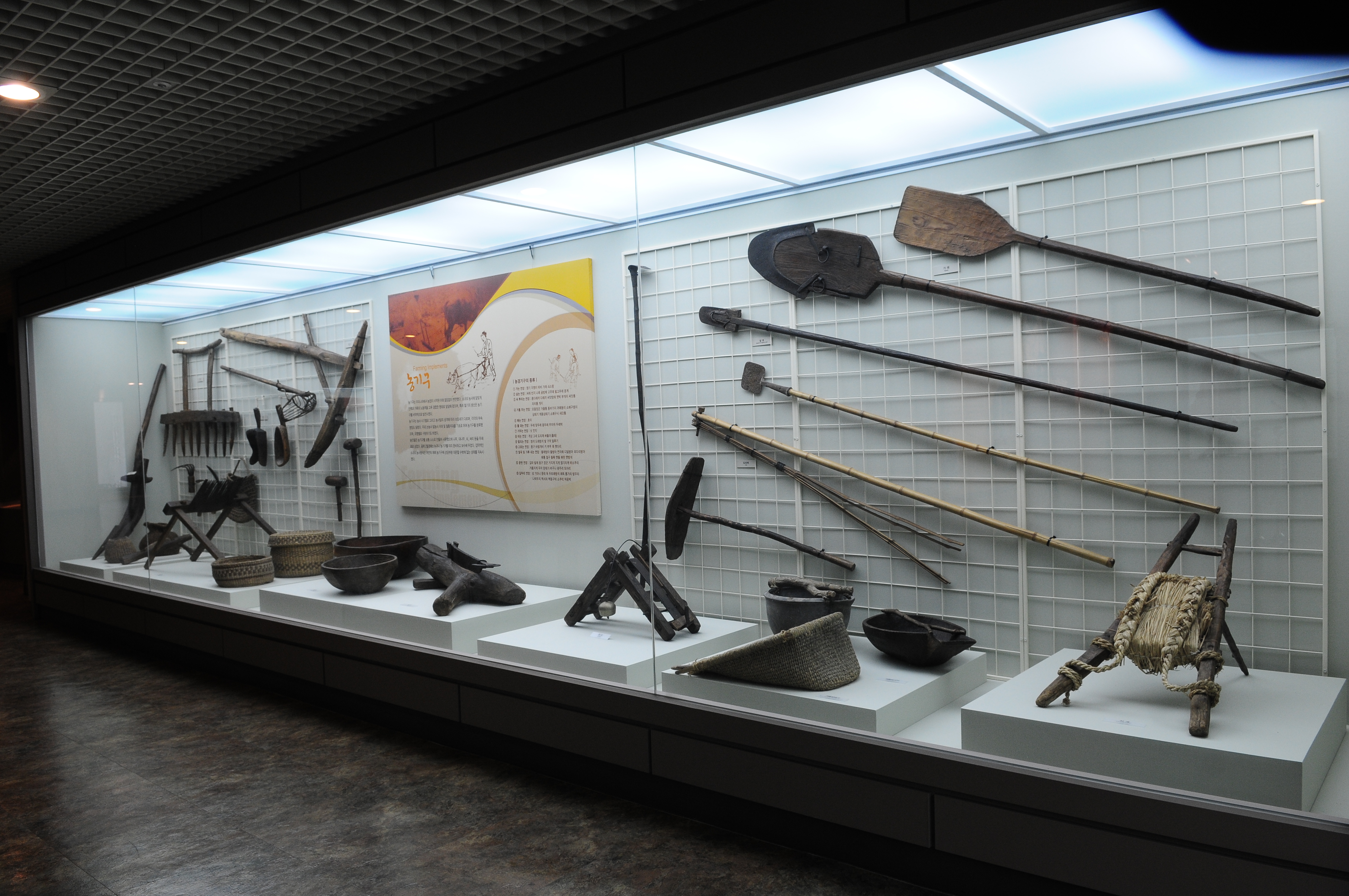 본관 1층의 생활 민속실에는 농기구 가래와 각종 떡살을 비롯하여 둔마리 벽화 고분 모형, 선현 유품, 안방, 사랑방, 한약방, 농기구 민예품, 생활용품 등이 전시되어 있다.