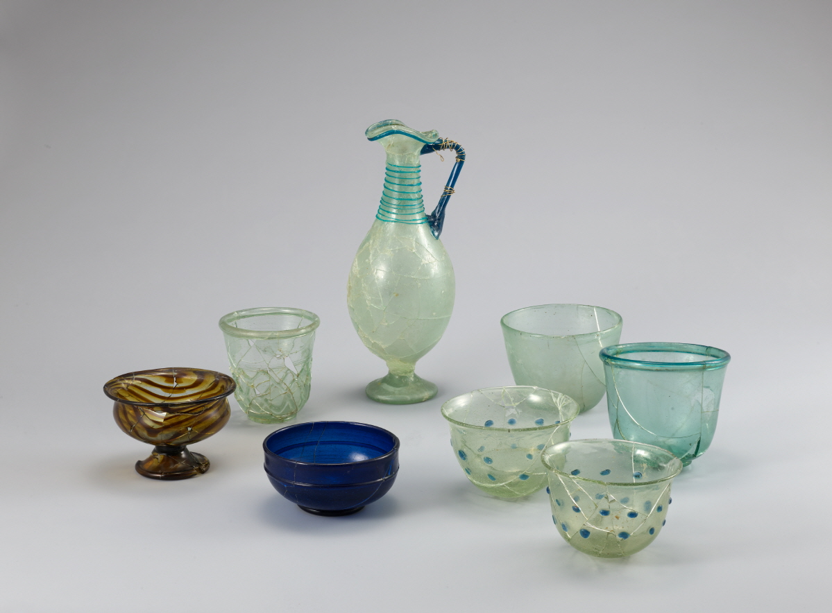 4,500년 전 지중해 지역에서 탄생한 유리는 기원전 1세기 대롱 불기라는 혁신적 기법이 개발되면서 로마 제국에서 널리 사용되었다. 고대 동아시아에서 유리는 서역에서 온 진귀한 보물로 여겨졌으며, 오색을 띠며 빛을 발하는 모습으로 묘사되곤 했다. 주로 장신구에 활용되었고, 서방에 비해 그릇류는 보편화되지 않았다.