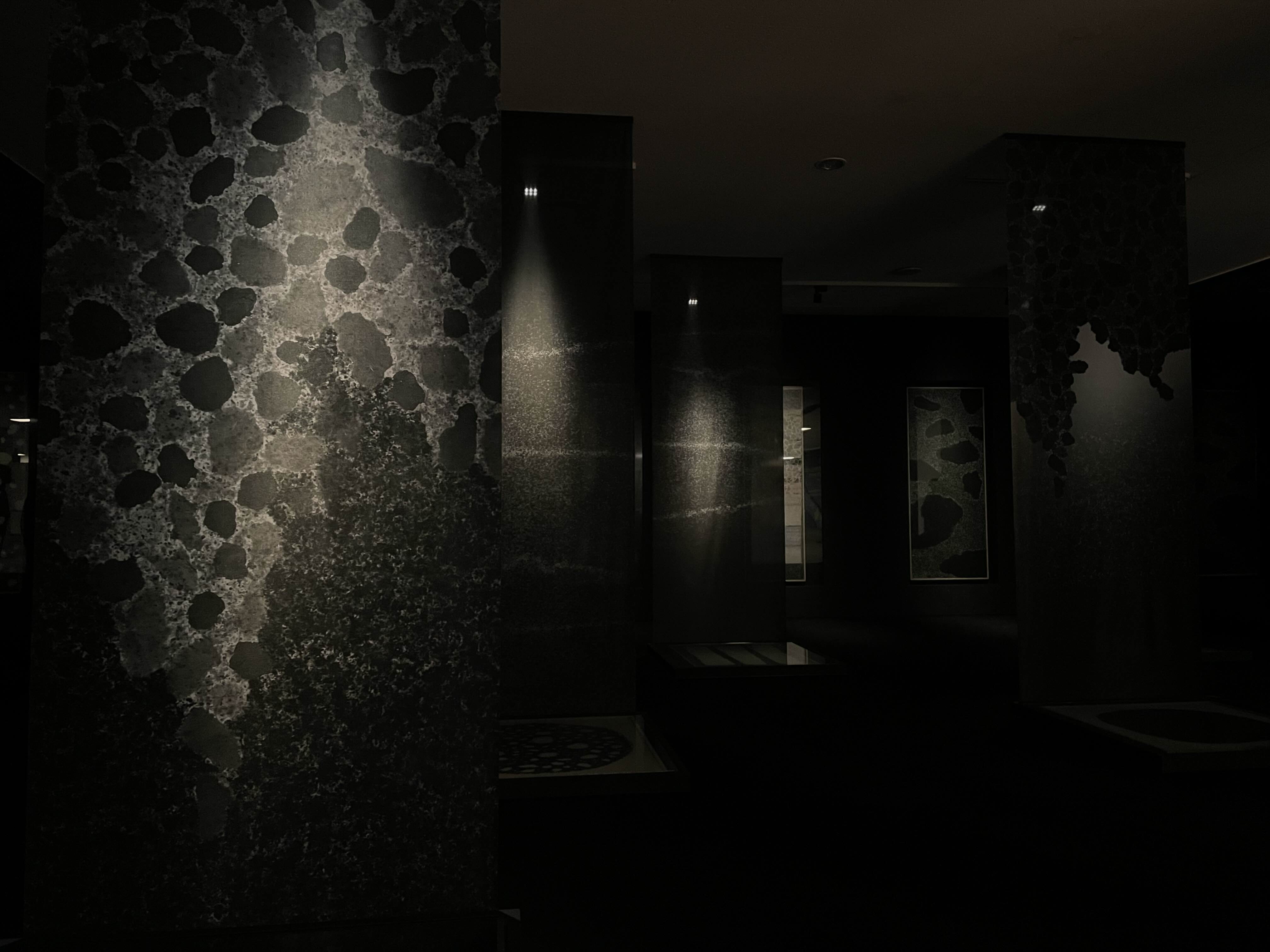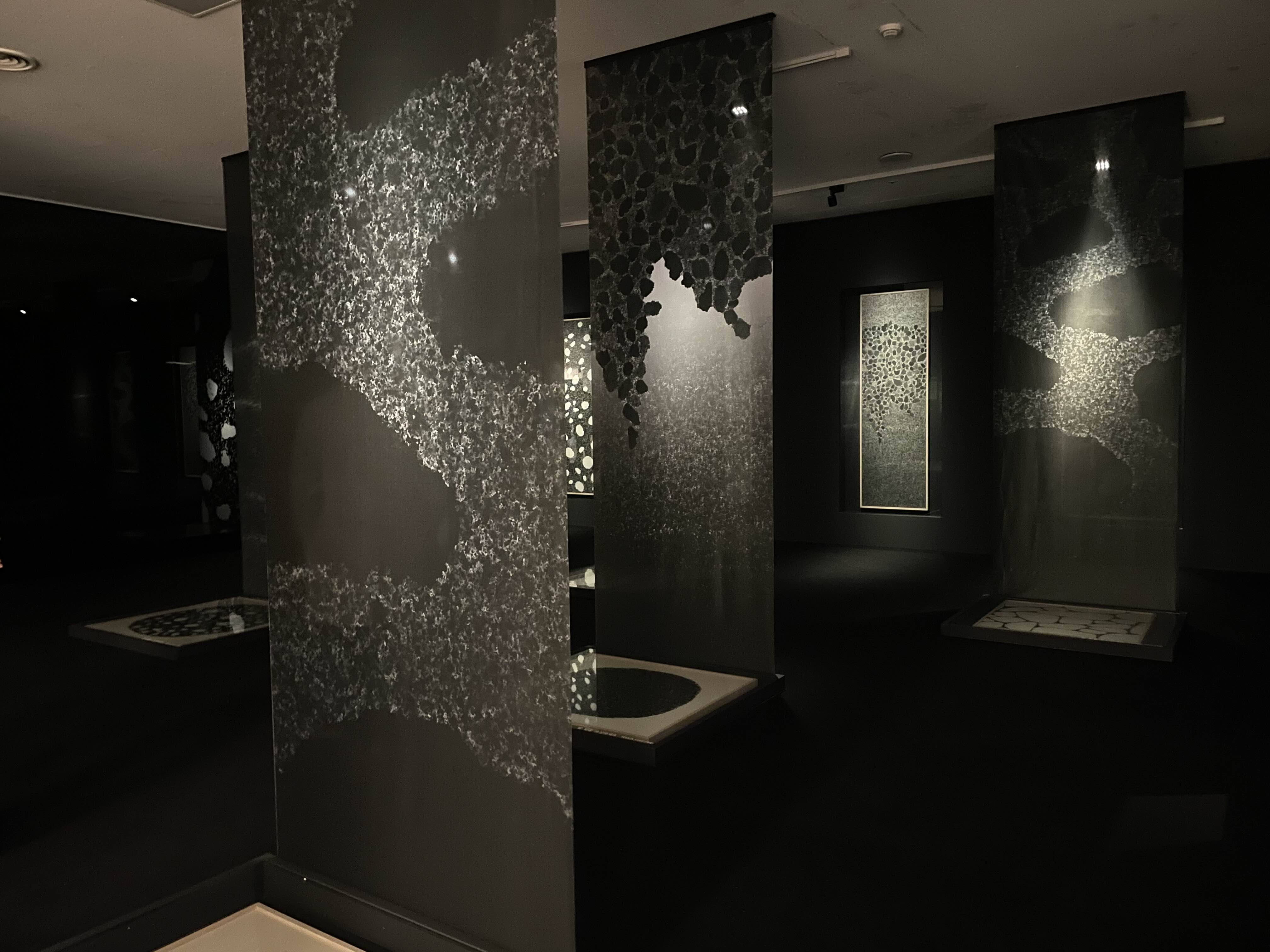 이번 전시 포스터를 보고 ‘먹으로 작업한 걸까?’ 생각했는데, 역시…! 박진우 작가님 작품이었습니다. 먹으로 적심을 표현한 것이라는데, 작가의 말처럼 꼭 적심 사이를 걷는 것 같았습니다. 무한히 떨어진 먹을 보고 있으면, 마치 우주에 와 있는 기분마져 들었습니다.