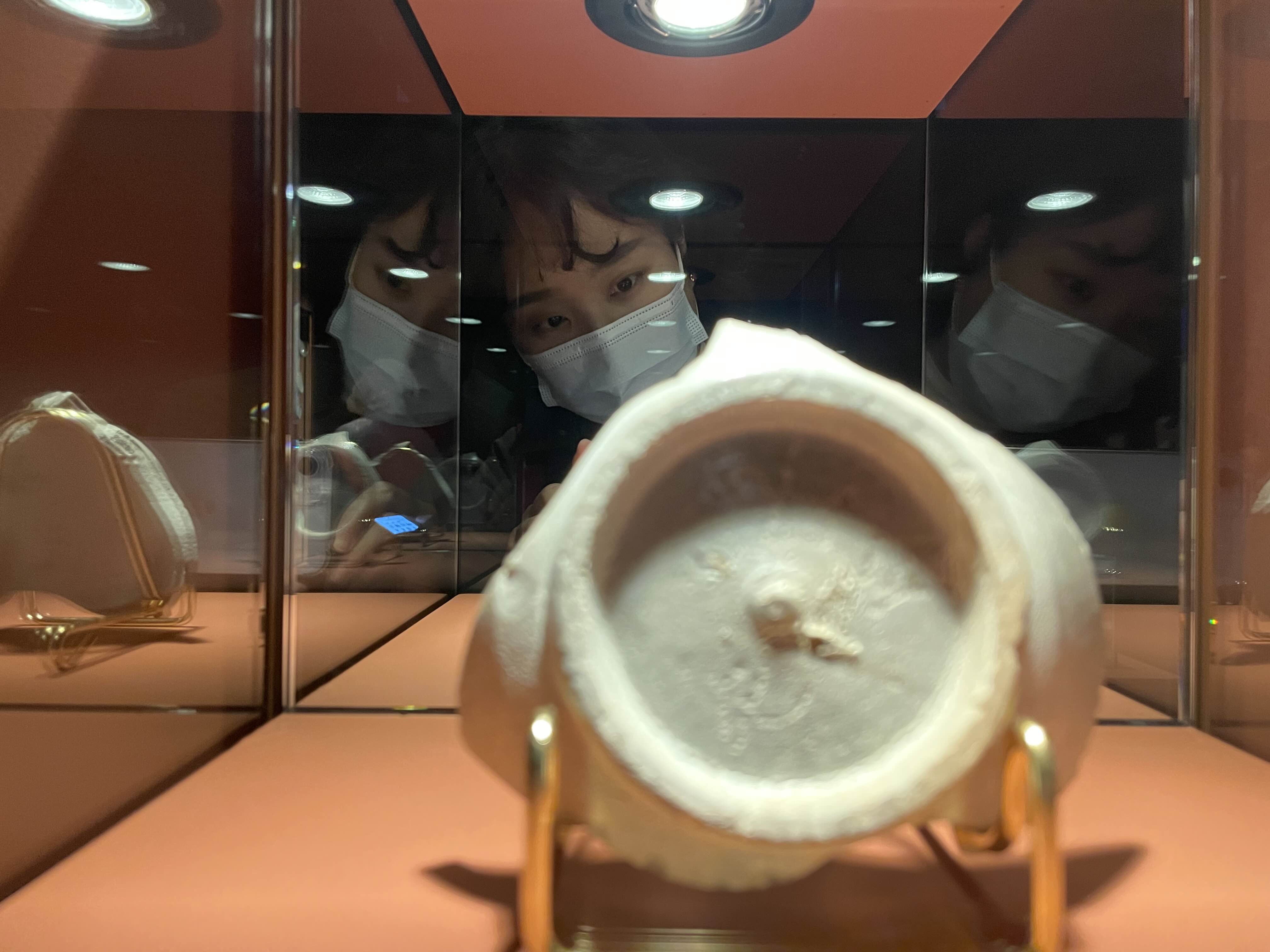 국립부여박물관 왕흥사 전시에서 이렇게 거울을 활용해 사리구를 보여준 적이 있었는데, 유물의 반대면 모습까지 볼 수 있어 좋았습니다.