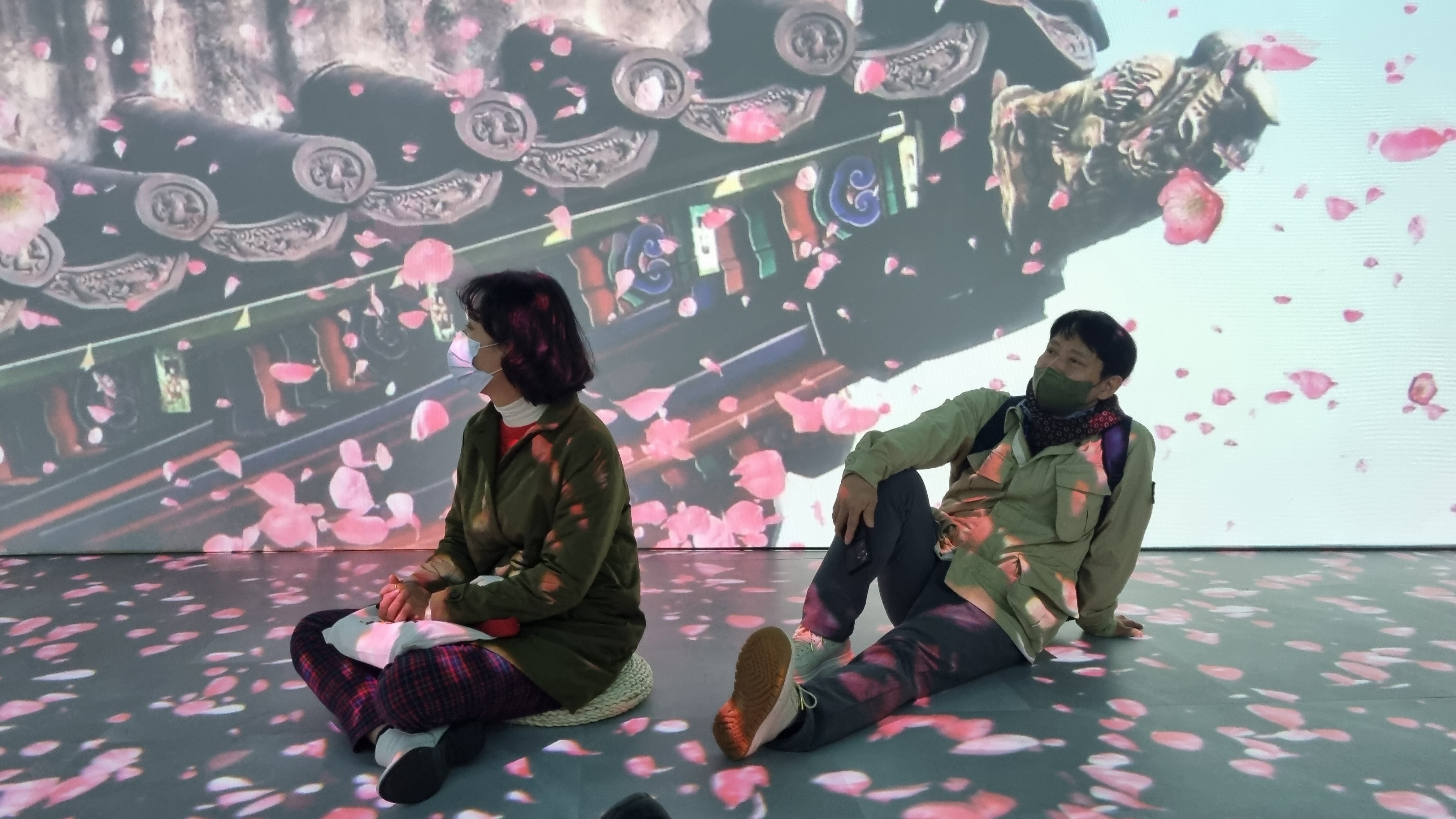 경복궁 발굴에 참여한 모든 분의 이름이 벽면 가득 떠오르고, 그분들 덕분에 이렇게 멋진 고궁을 우리가 볼 수 있게 되었다는 듯 화려한 꽃잎으로 영상이 바뀝니다.