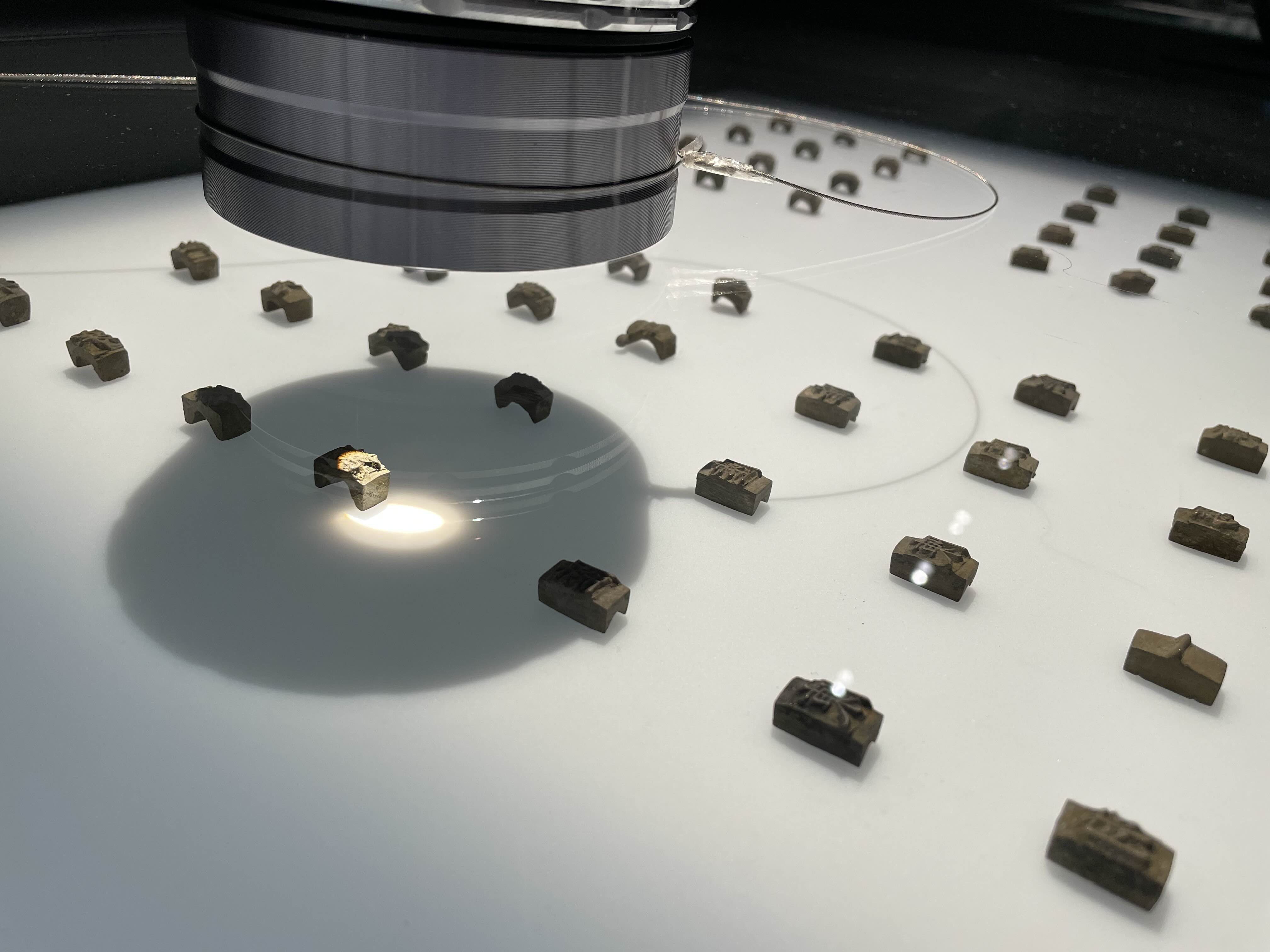 금속활자 크기는 작은 건 제 손톱만한 정도였습니다. 금속활자 옆모습을 보니, 등이 파였군요. 활자판에 끼우기 위해서일까요?