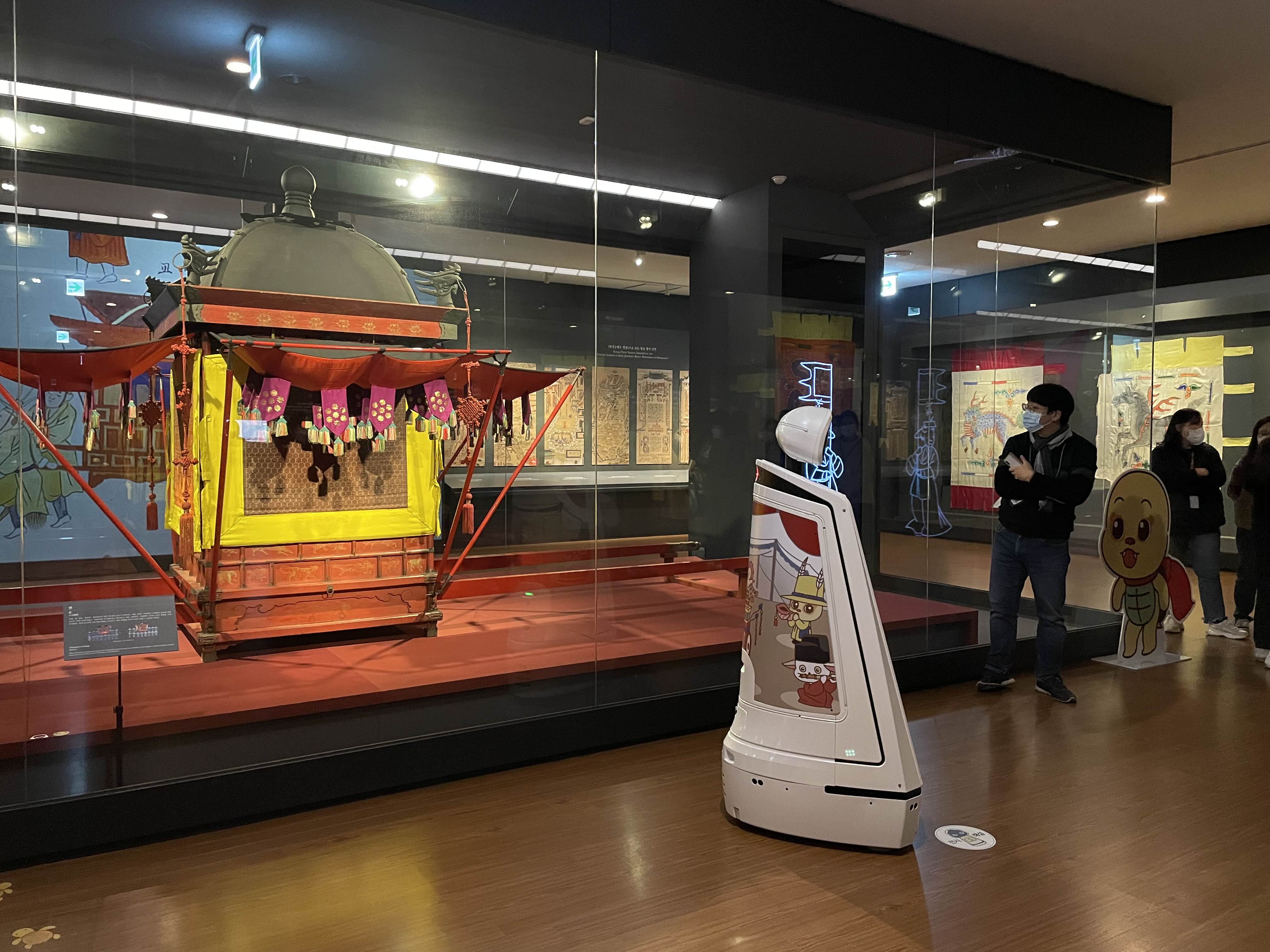 박물관 로비에 있는 로봇은 박물관 전반적인 시설안내와 이용안내를 해주고, 1층 전시실과 지하 1층 전시실에 있는 로봇은 자신만의 방식으로 전시를 설명해 줍니다.
