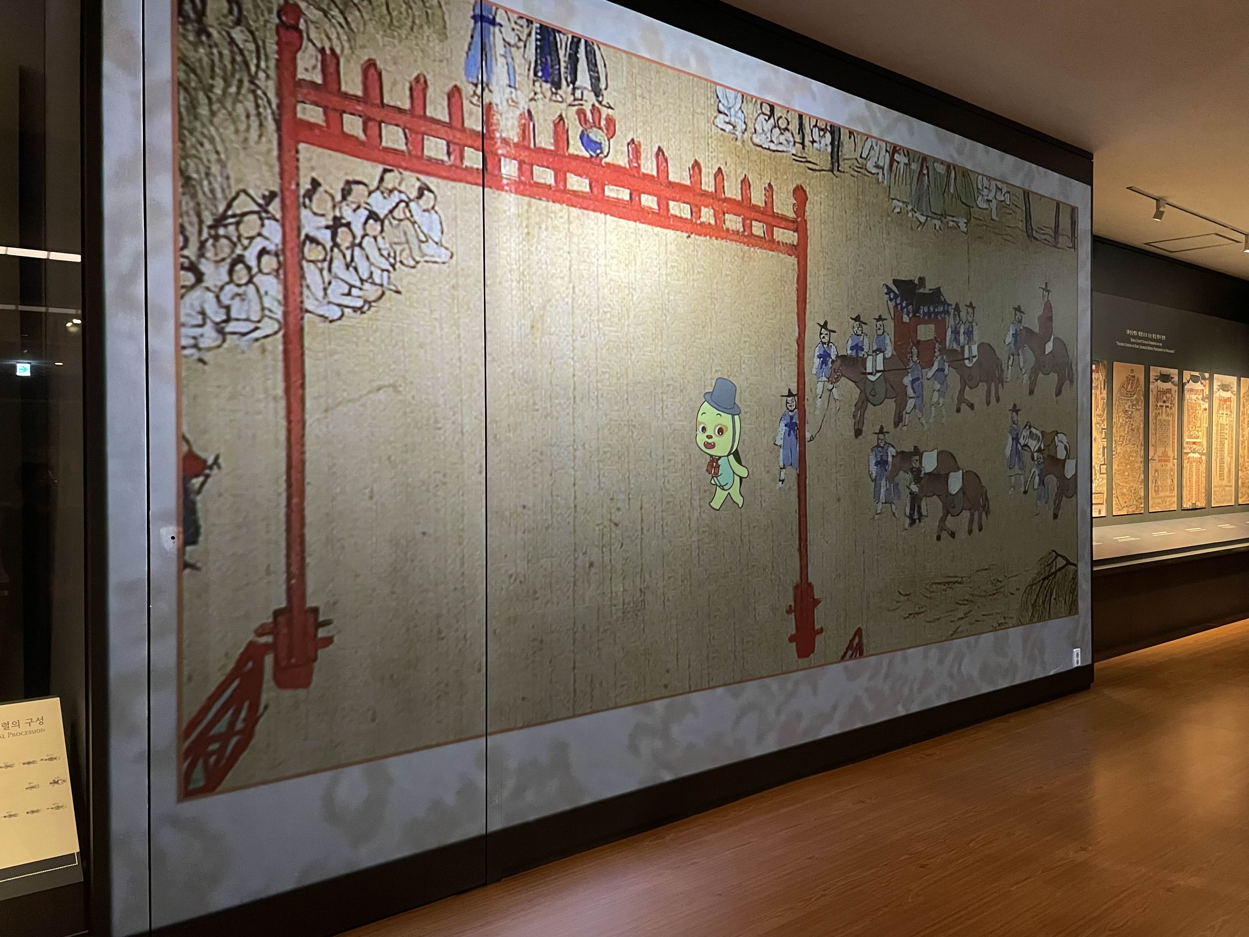 특정한 전시주제를 잡아 설명해 줍니다. 1층은 어차, 지하 1층은 정조대왕 능행차도입니다.