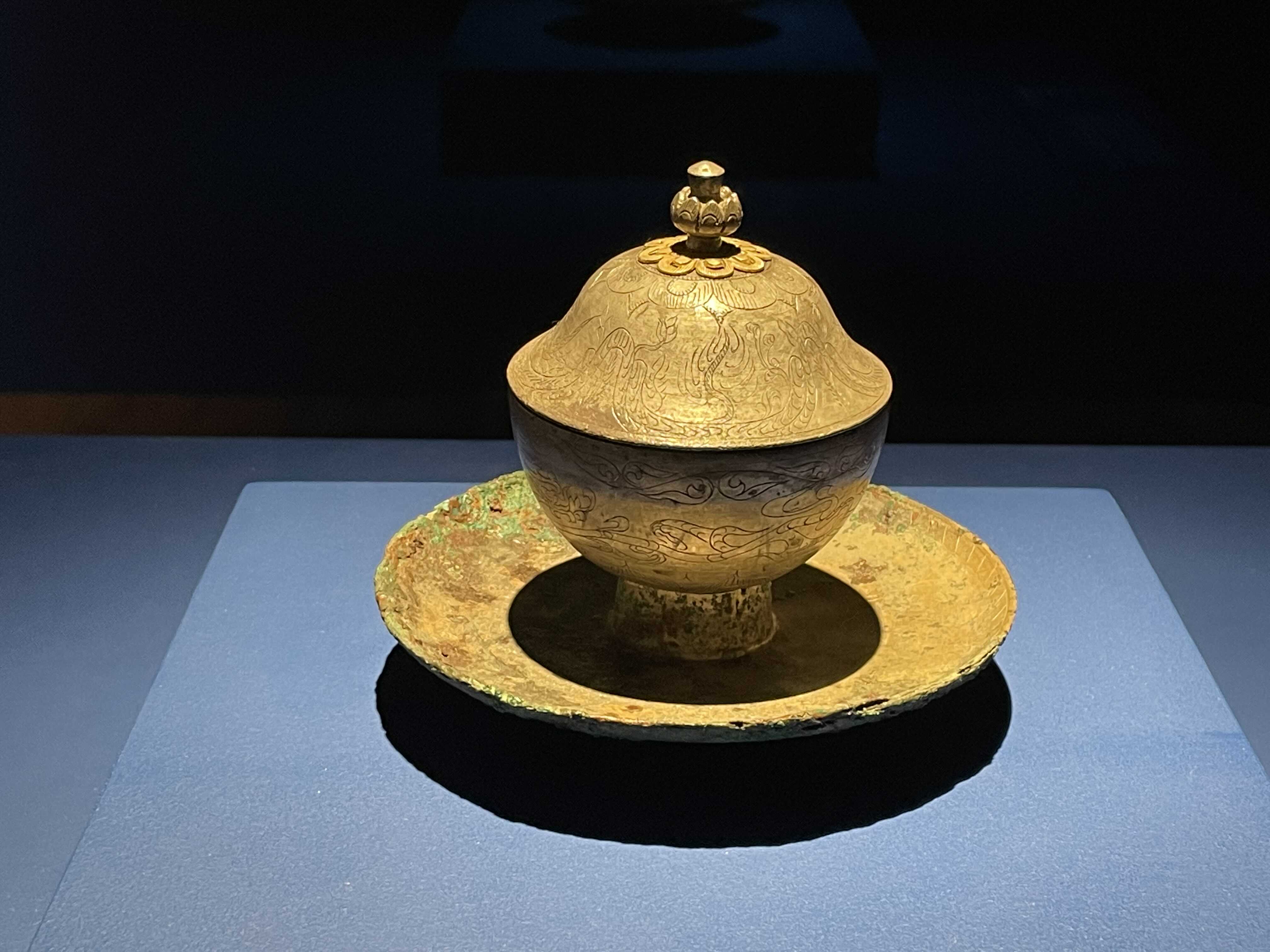 예전 공주박물관 도록 겉 표지가 <받침있는 은잔>을 위에서 찍은 모습으로 기억합니다. 여덟개의 금색 꽃잎 위에 앙증맞은 봉오리가 톡하고 맺혀 있어 '참 아름답다' 생각했는데, 이렇게 직접 실견하게 됩니다.