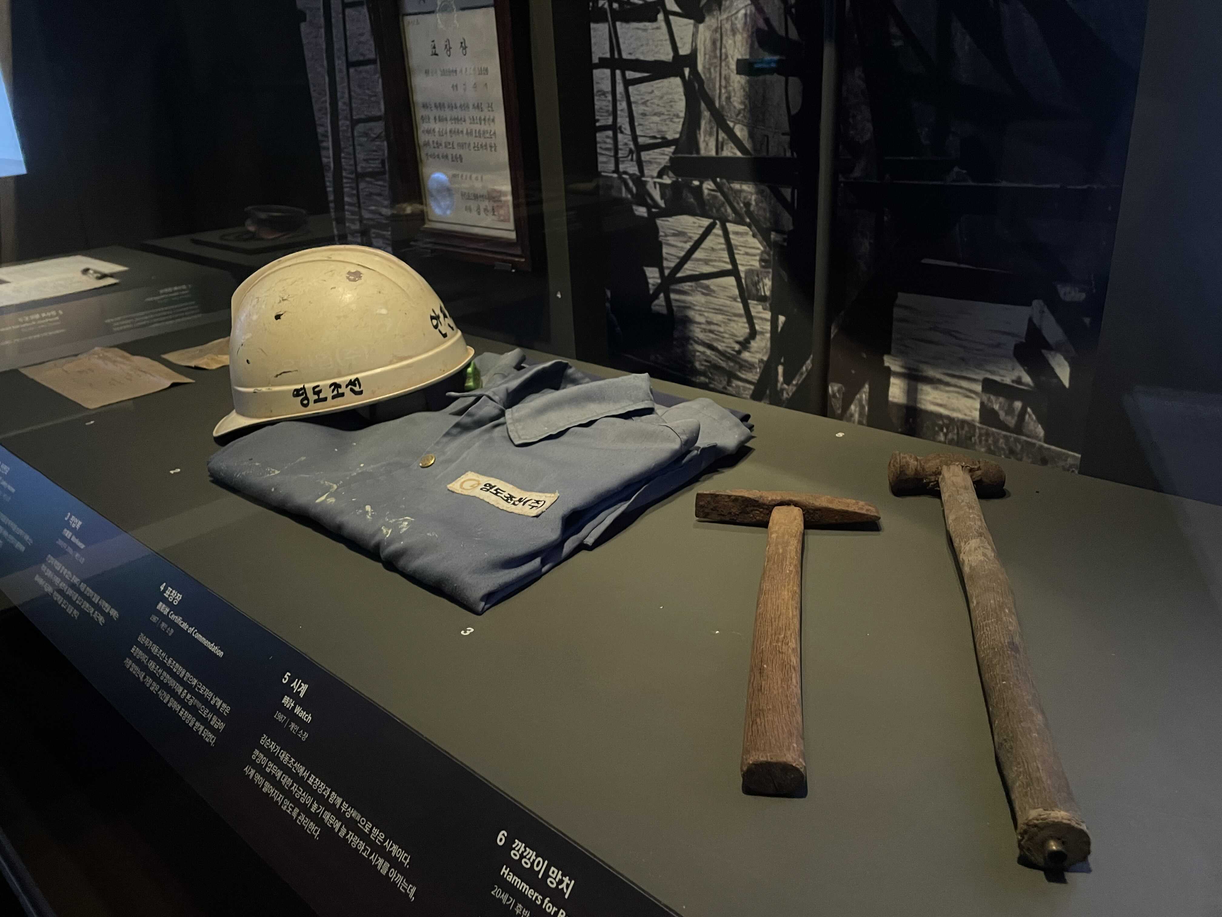 도슨트 선생님 말씀으로는 당시에는 마스크도 없어 작업할 때 수건으로 대충 얼굴을 두르고 했다고 합니다. 작업 하다보면 더워서 수건을 그냥 던져 버리는데, 그래서 녹 가루 등이 그대로 몸속으로 들어가 건강이 매우 안좋다고 합니다. 영상 속 할머니도 이제는 몇 발자국만 걸어도 숨이 헉헉 차신다고 하네요.