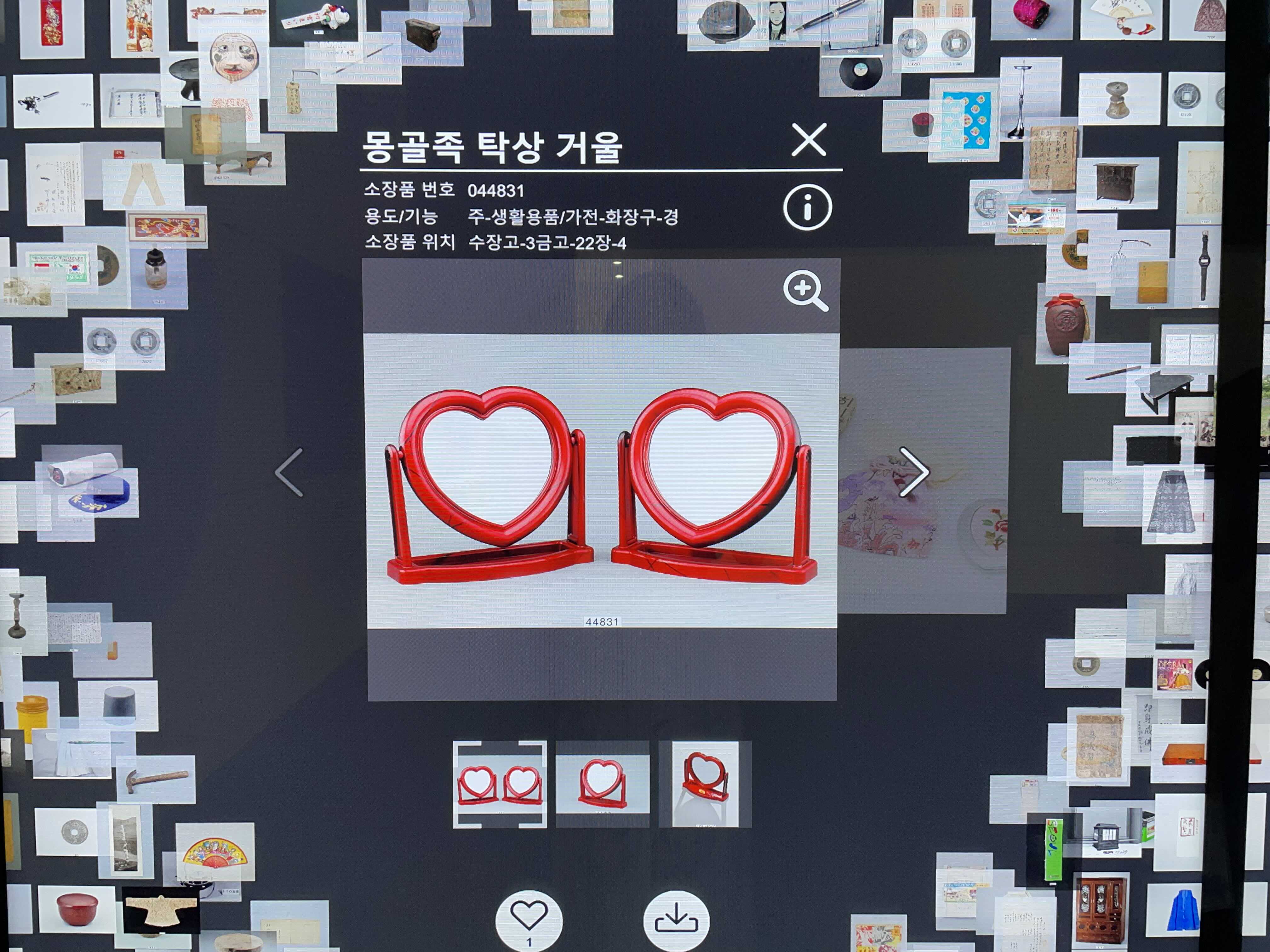 소장품 이미지 하단 좋아요(하트모양)을 누르거나 소장품 정보를 내려받을 수있는 기능도 있습니다.