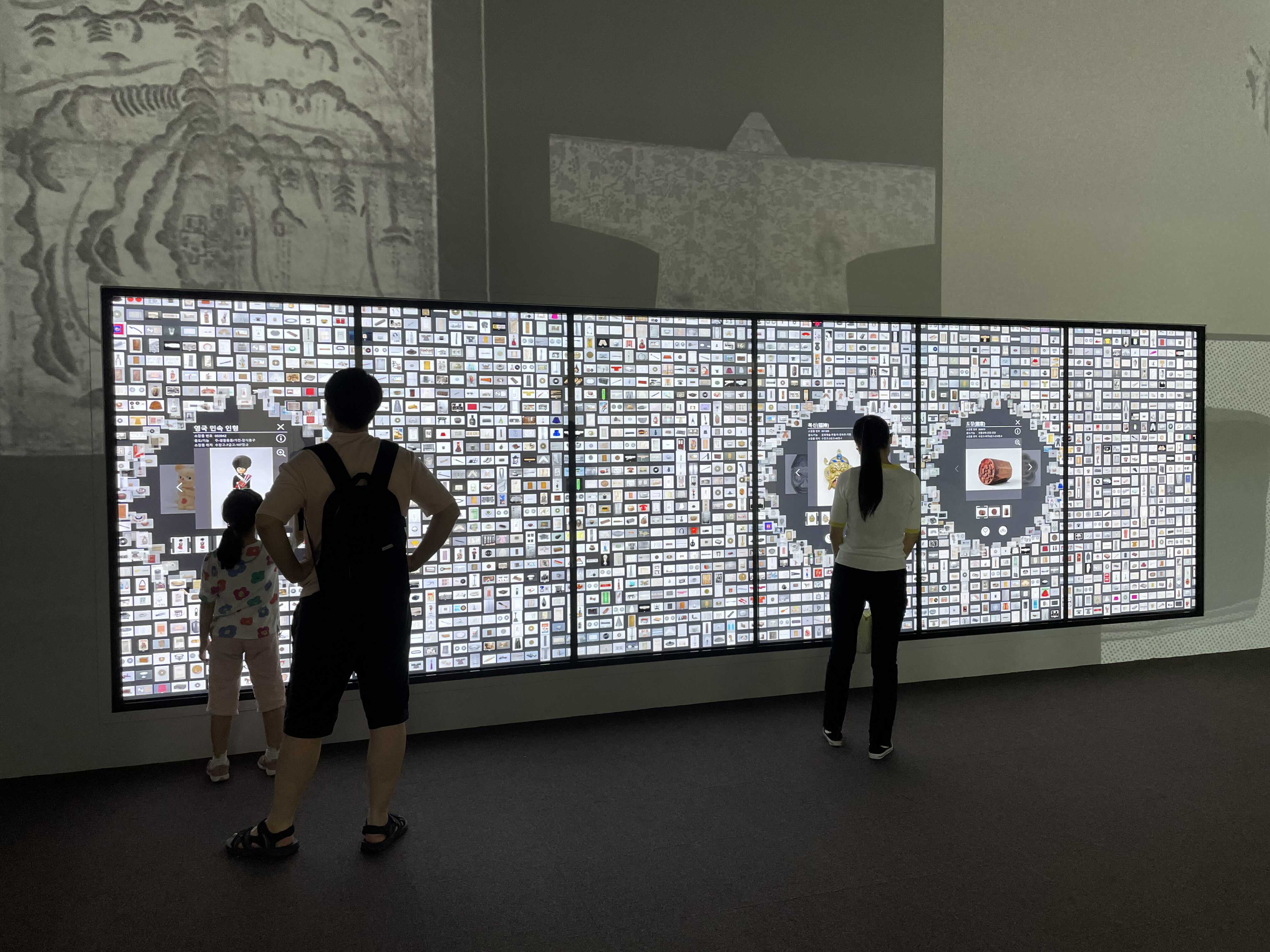 국립민속박물관 소장품 전체의 유물정보를 대형미디어 패널로 볼 수 있음.