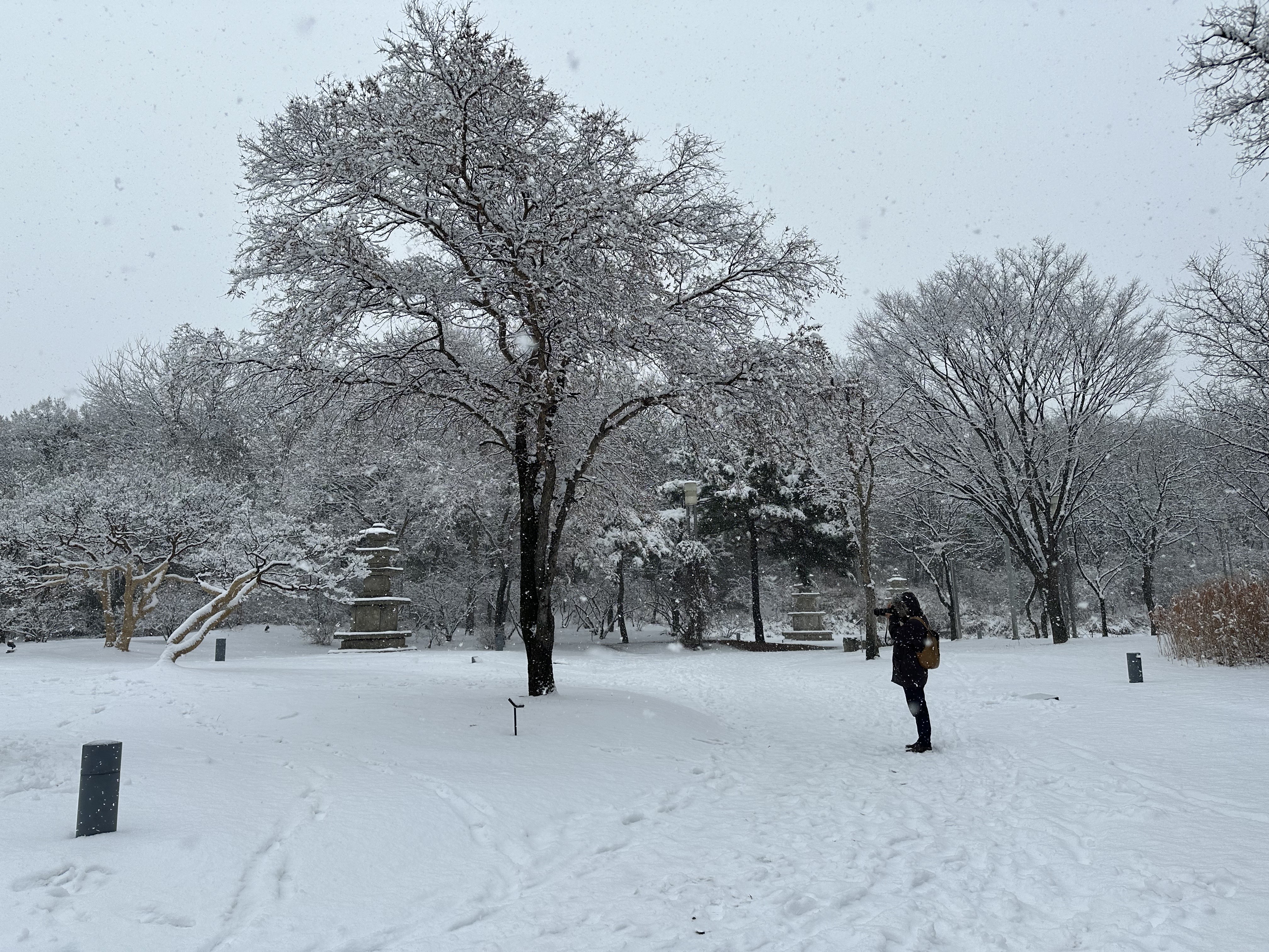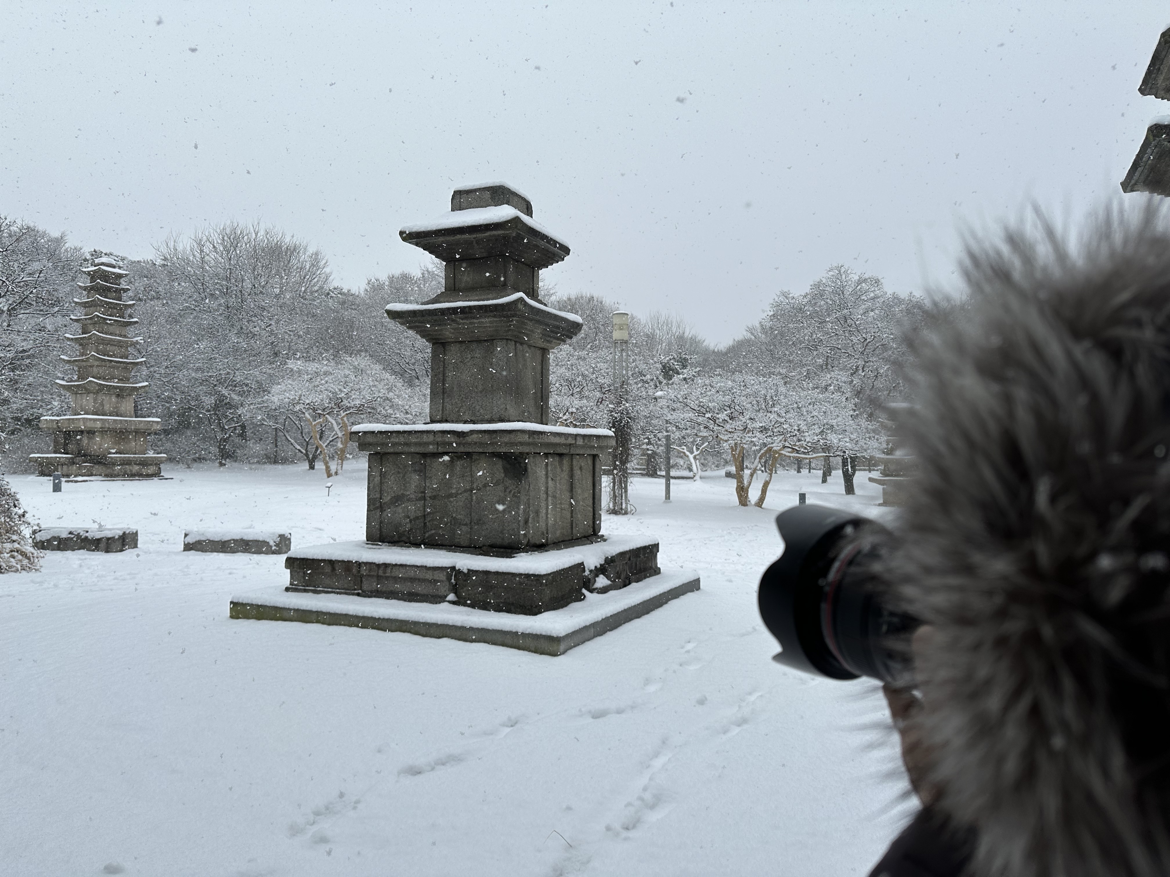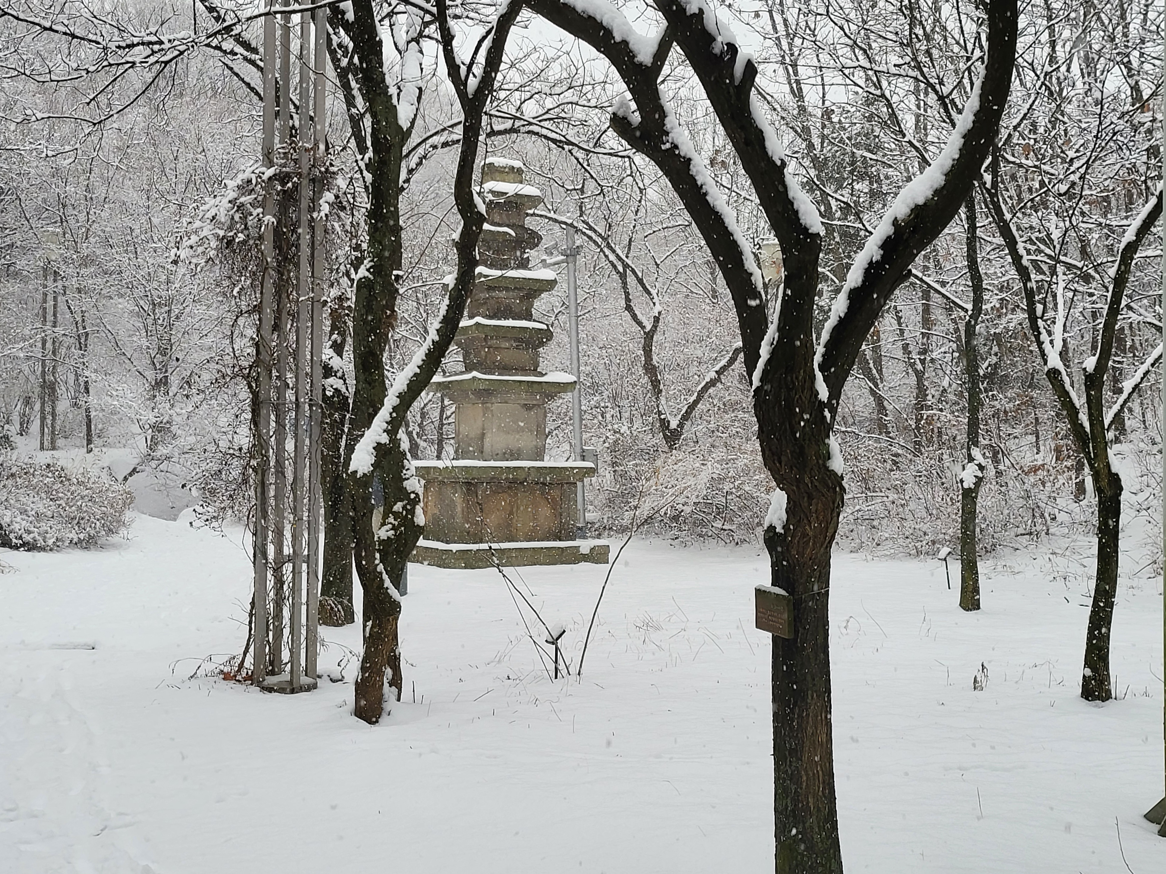 종묘 다음으로 설경 장관을 꼽는 데가 용산 국립중앙박물관 야외 공원, 특히 용산가족공원으로 이어지는 석탑이 들어선 데다.