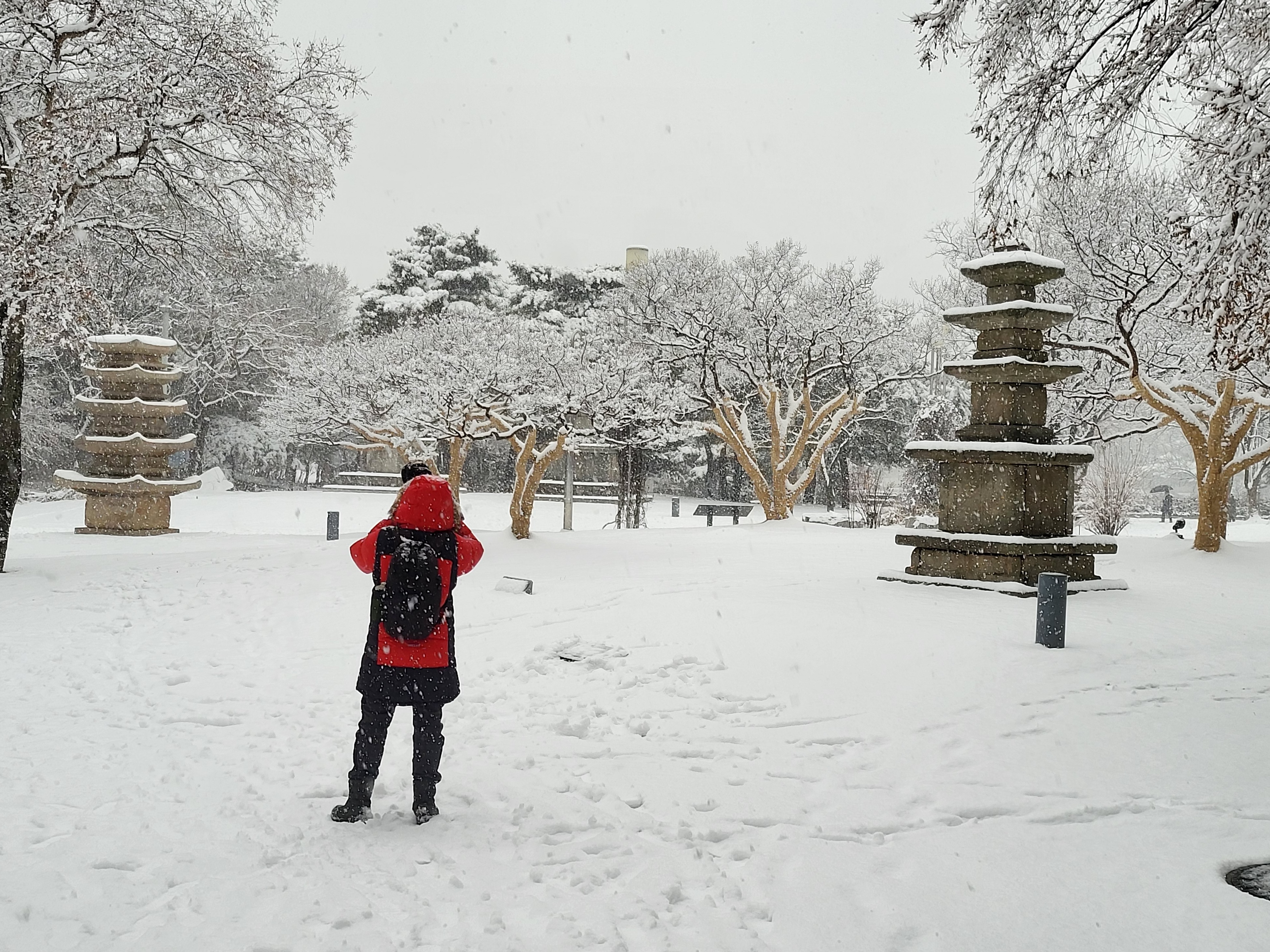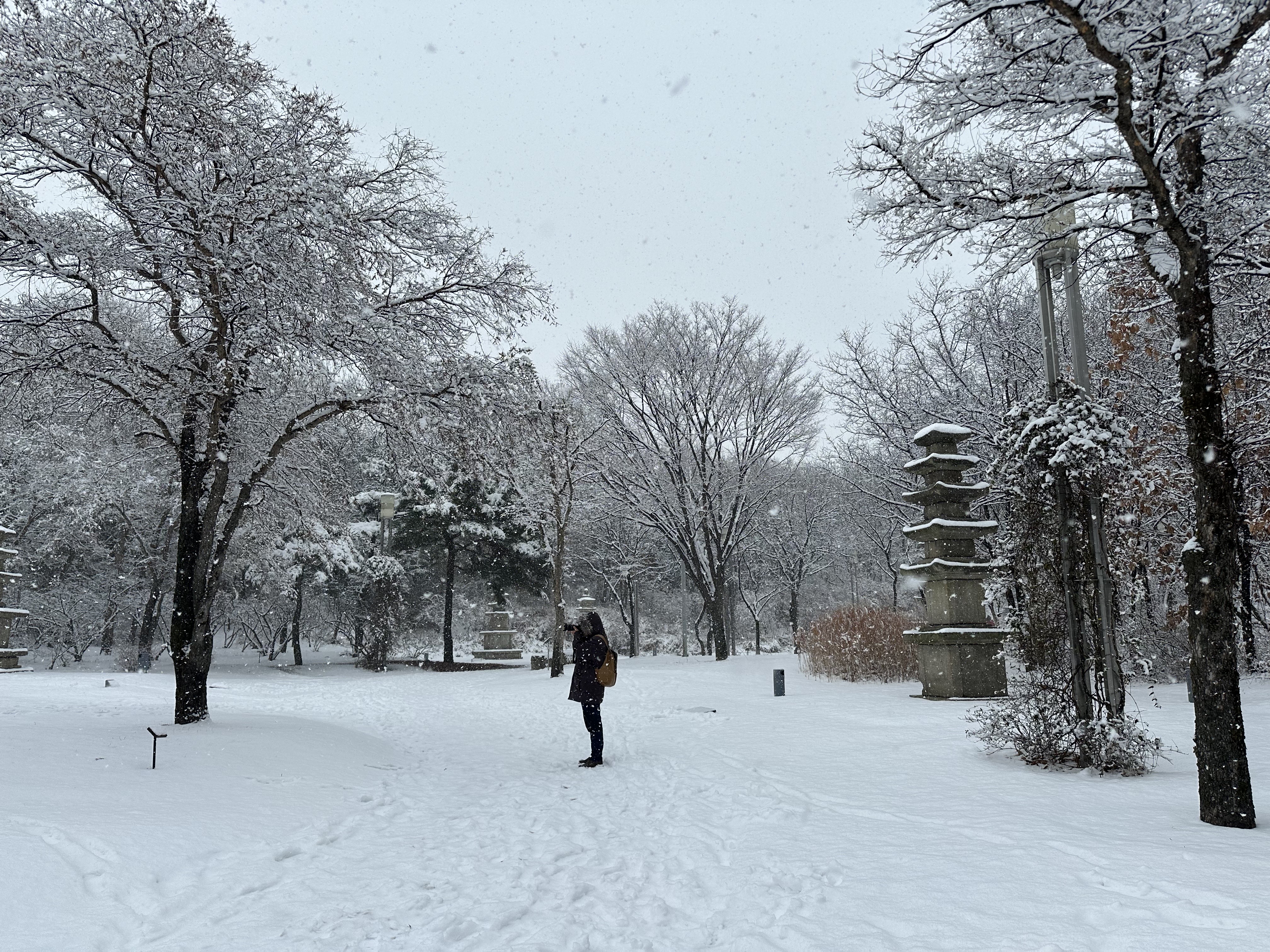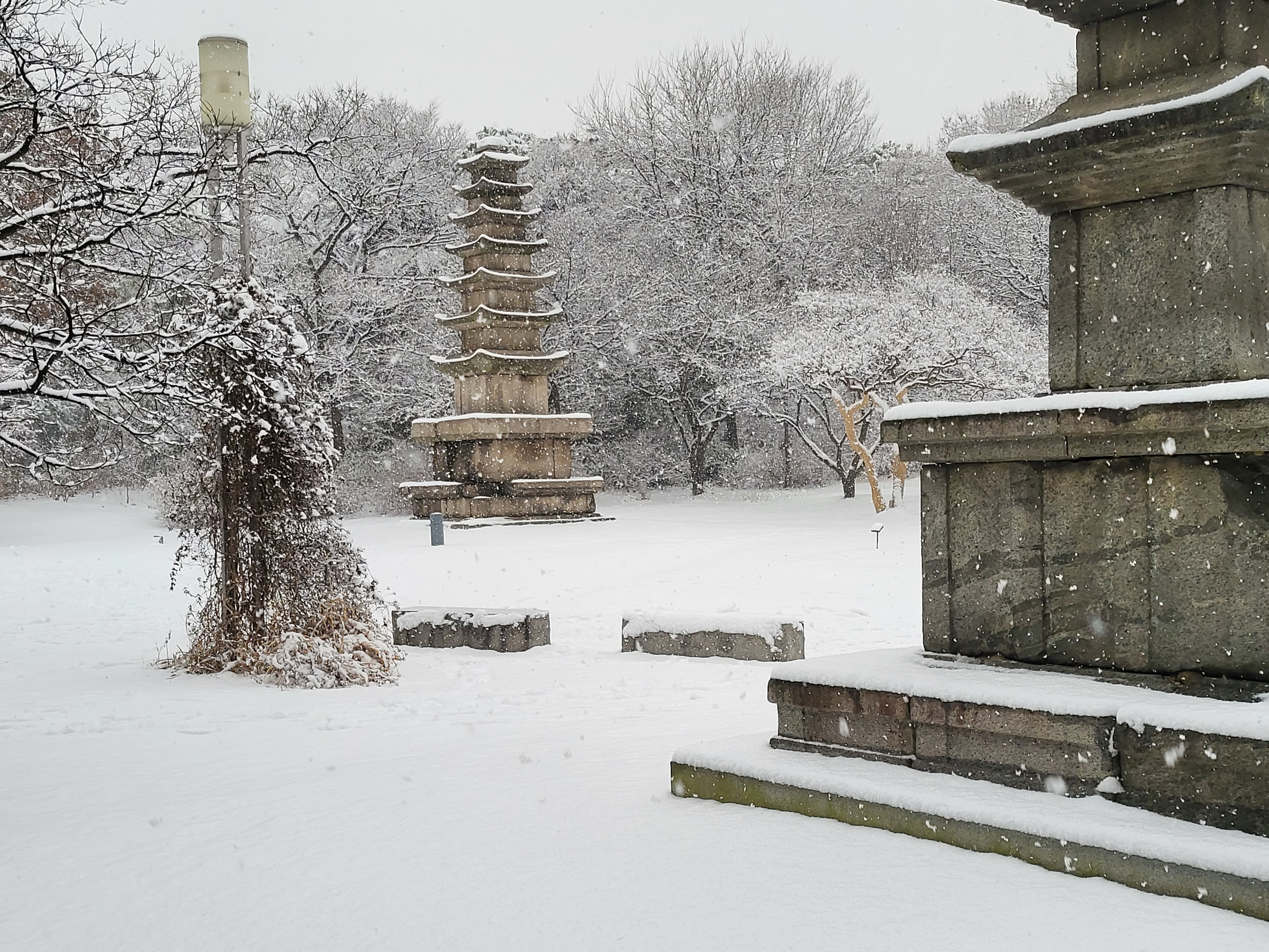 종묘 다음으로 설경 장관을 꼽는 데가 용산 국립중앙박물관 야외 공원, 특히 용산가족공원으로 이어지는 석탑이 들어선 데다.