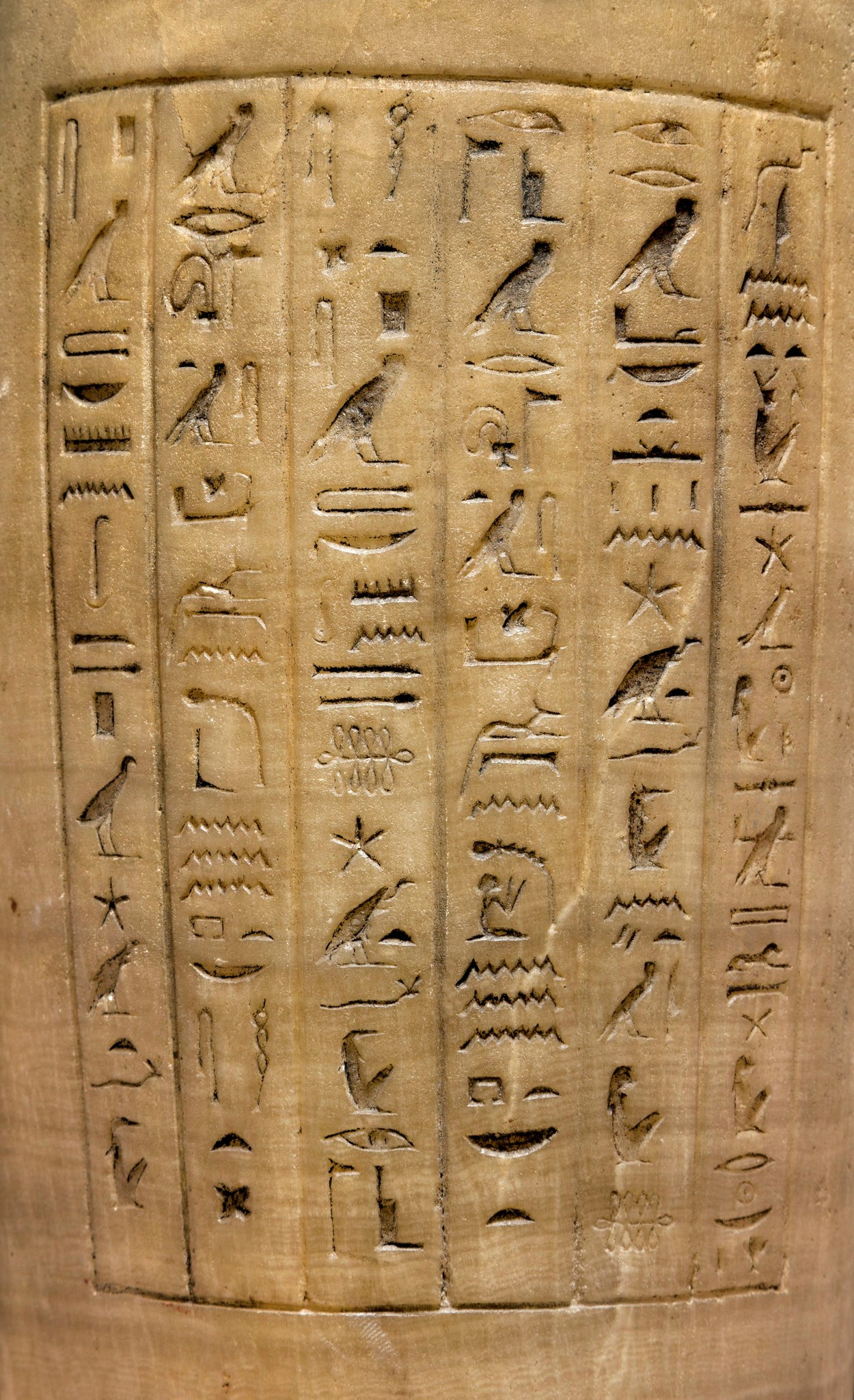 몸체에 새긴 텍스트는 두아무테프와 관련한 내용입니다만 뚜껑은 비비 원숭이 모습을 한 하피의 것이며 따라서 몸체와 뚜껑 크기가 정확하게 일치하지 않습니다.