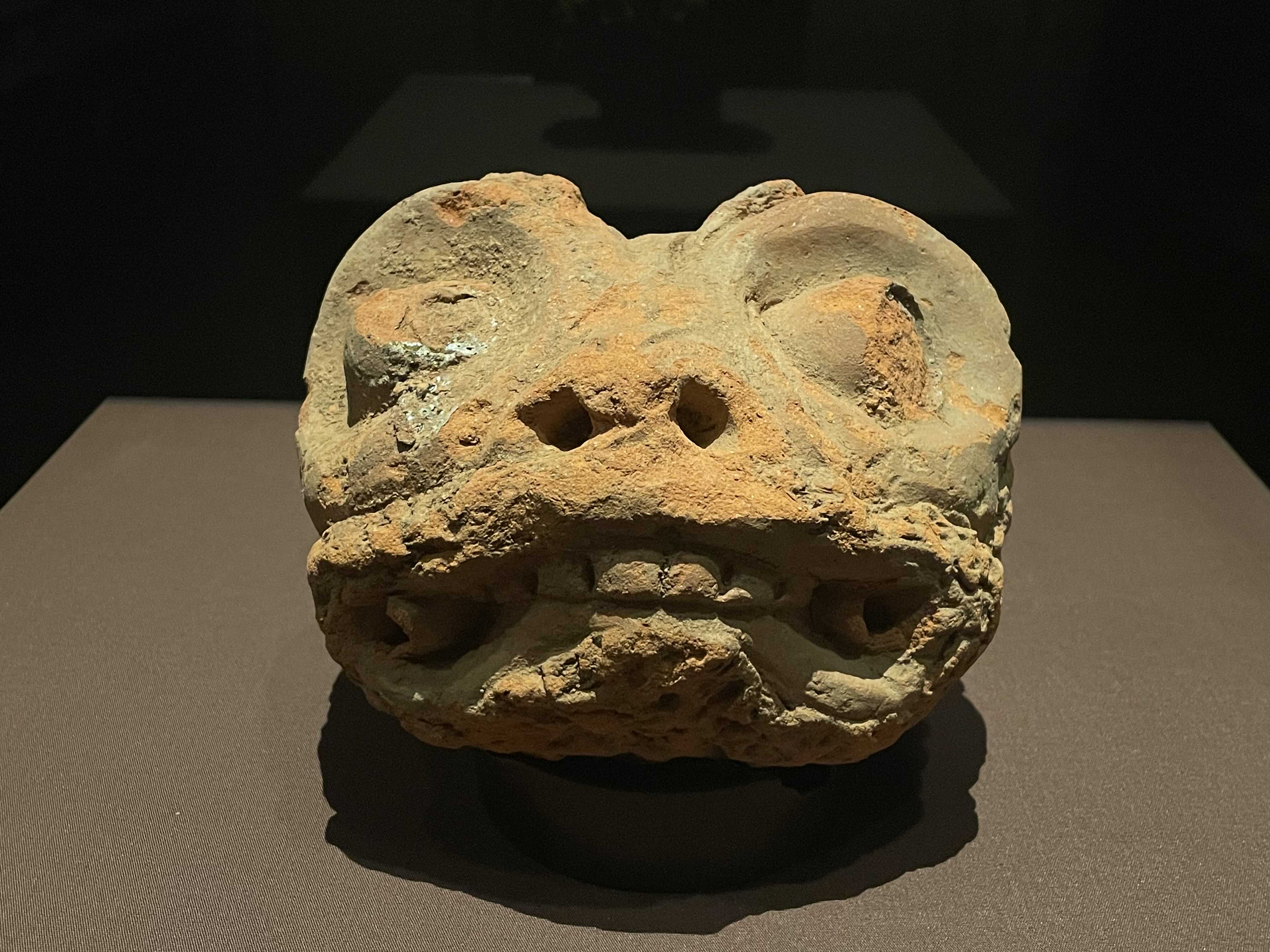 제석사지 폐기장에서 발견된 소조 / 동물머리? 눈에 반짝반짝 유리흘러내린 자국이 있다.