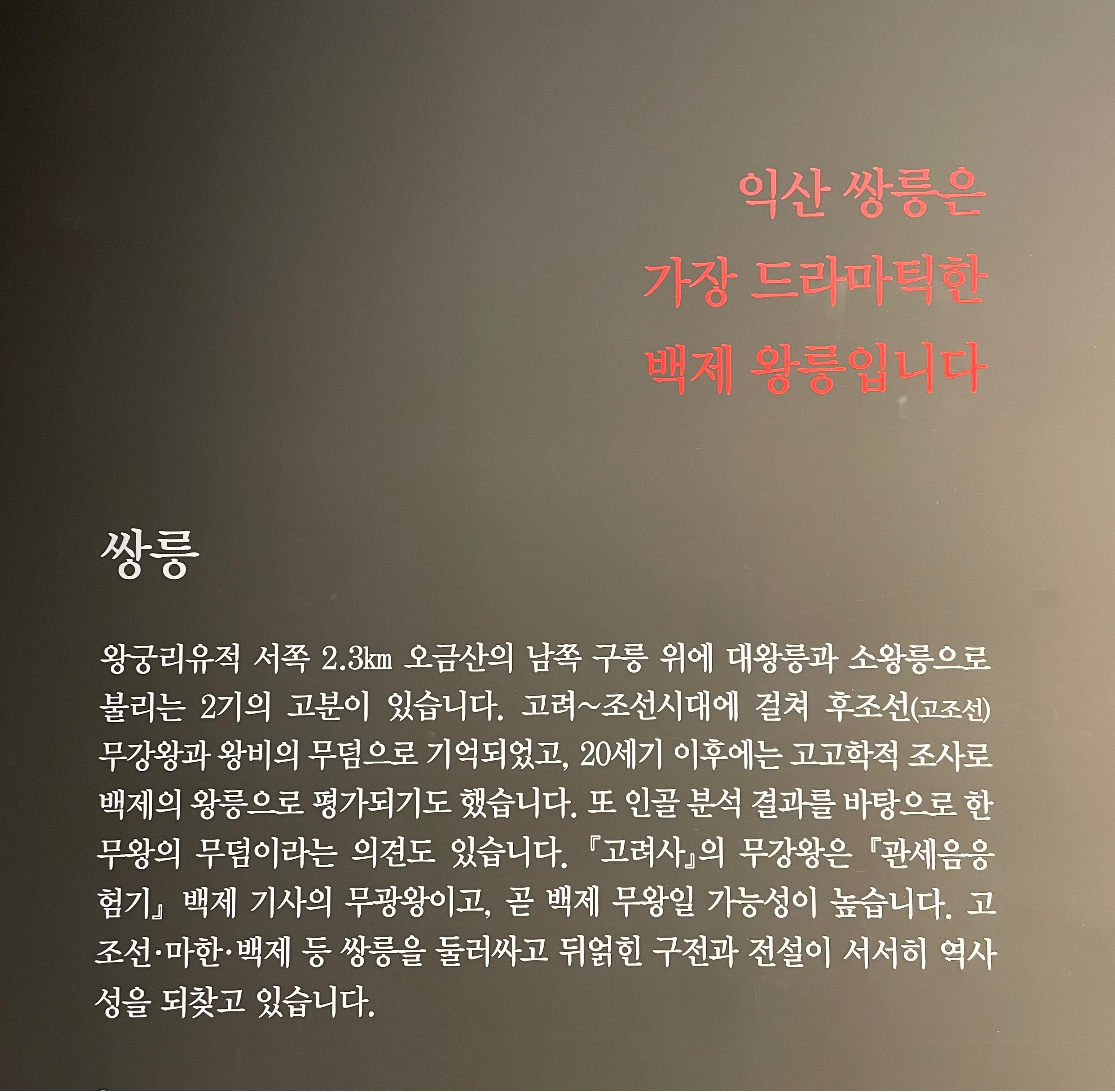 국립익산박물관 설명글을 보면 <큰제목, 부제, 본문> 3단계로 이루어져 있습니다. 스토리텔링한 제목을 보면 왠지 읽고 싶어 집니다.