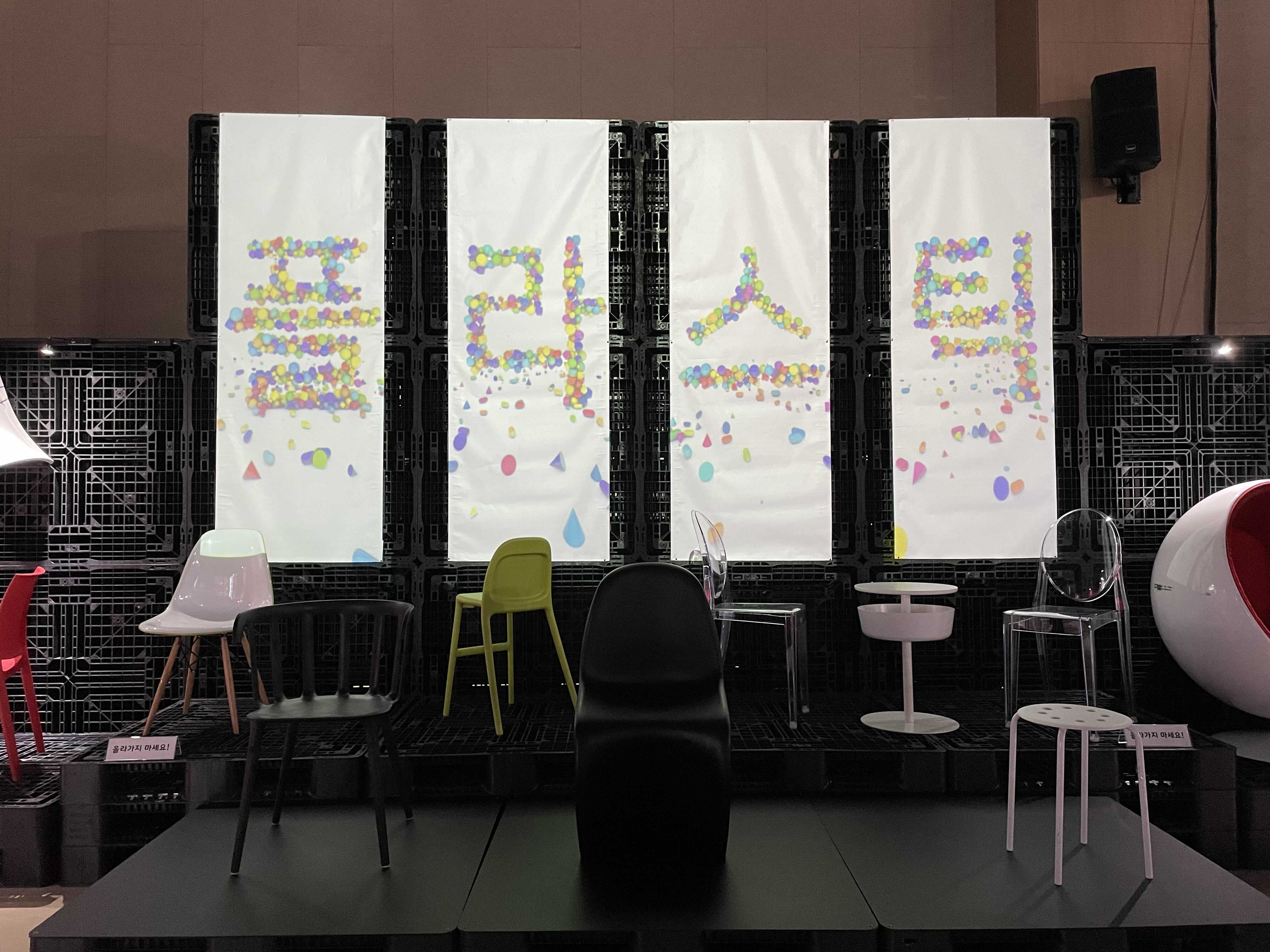 전시실 모습을 보면서 느끼셨겠지만, 이번 기획전 가벽은 모두 플라스틱 팔레트(Pallet : 무거운 것들을 운반할 수 있는 적재 판)를 재활용해 구성했습니다. 오 아이디어입니다!!