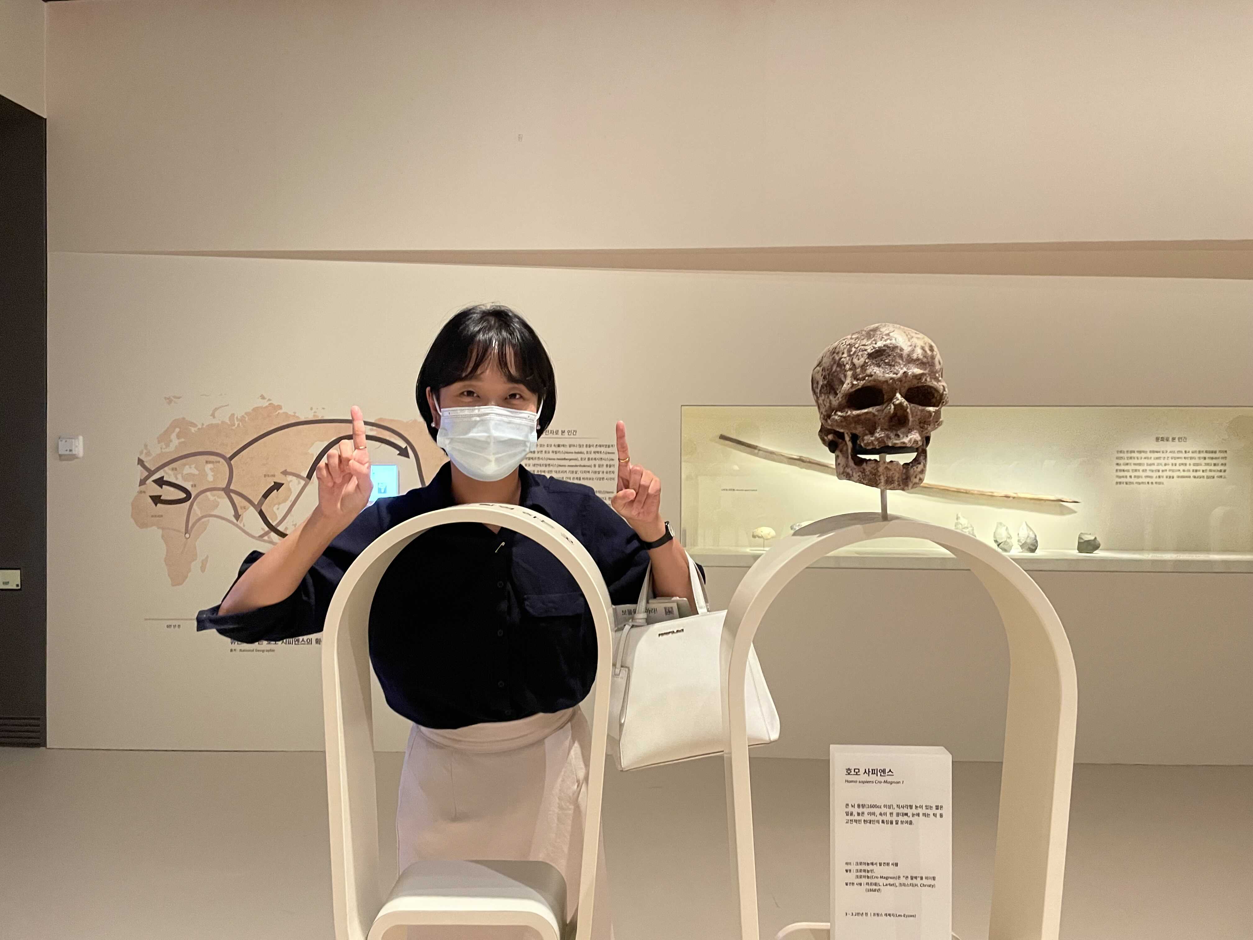 아이러니하지만 유물이 오지 못한 덕분에(?) 모형이지만 이렇게 가까이에서 고 인류 화석을 보고, 같이 사진 찍을 수 있는 기회가 생긴게 아닐까 합니다.