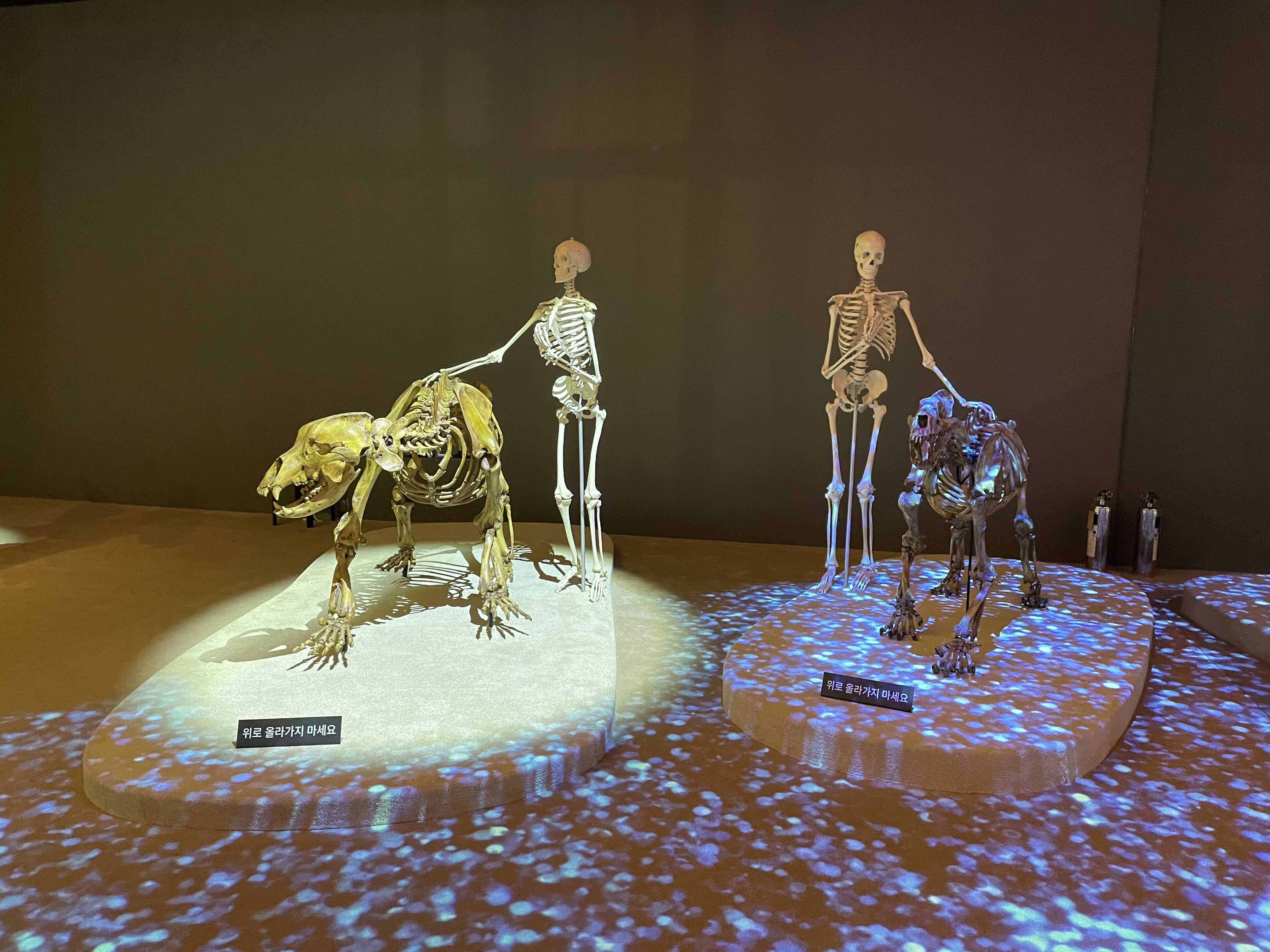 지금은 볼 수 없는 다양한 종의 화석을 볼 수 있고, 영상을 통해 현생 인류인 우리, 호모 사피엔스가 연결되는 모습을 체험할 수 있습니다.