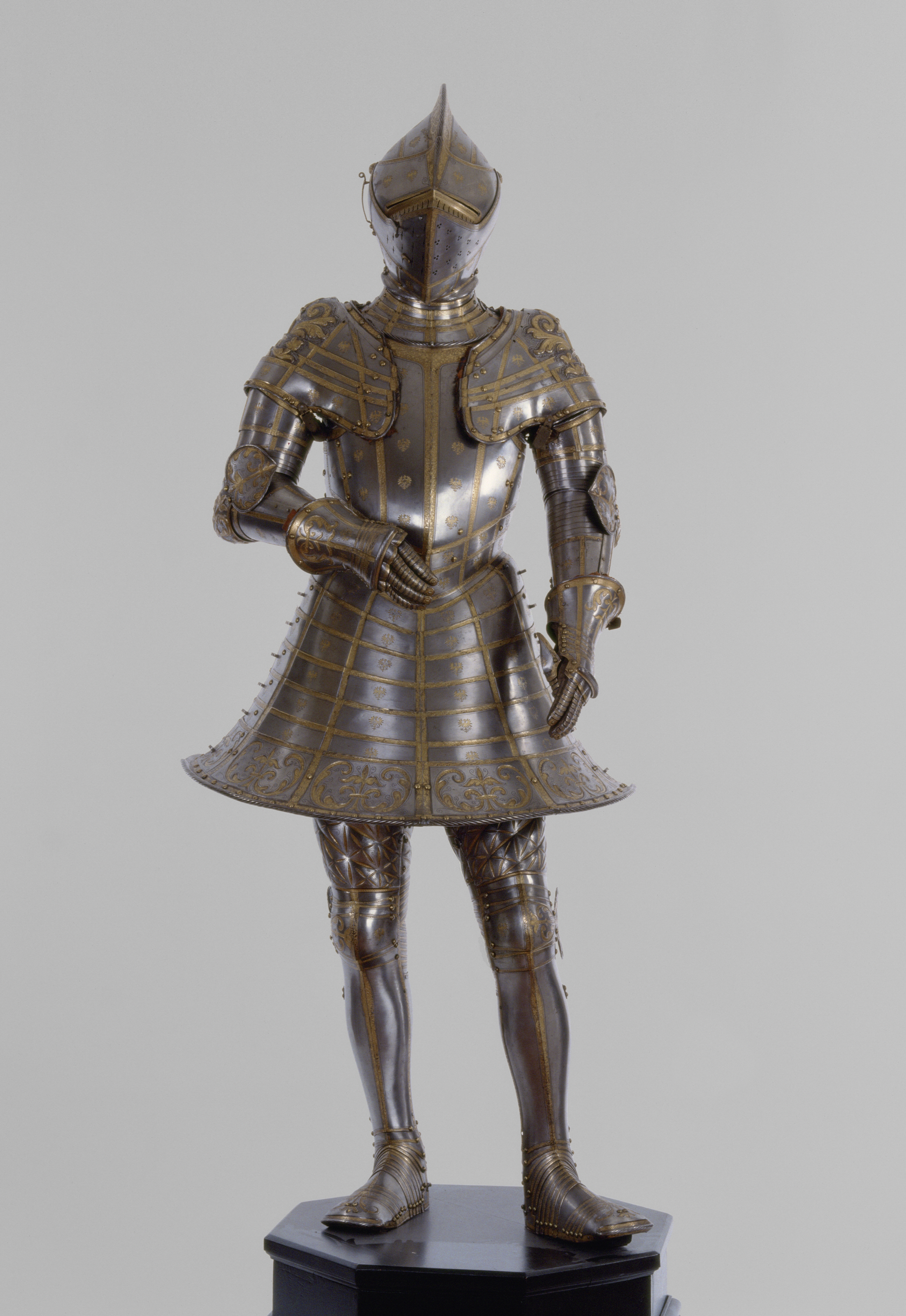 “Eagle Garniture” made for Archduke Ferdinand II, Jörg Seusenhofer, 1547, iron, fire-gilt, brass, leather, fabric, H. 180.0, Kunsthistorisches Museum Wien