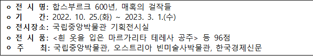 | 국립중앙박물관 특별전 ‘합스부르크 600년, 매혹의 걸작들’ (0) | 2022.10.25 |