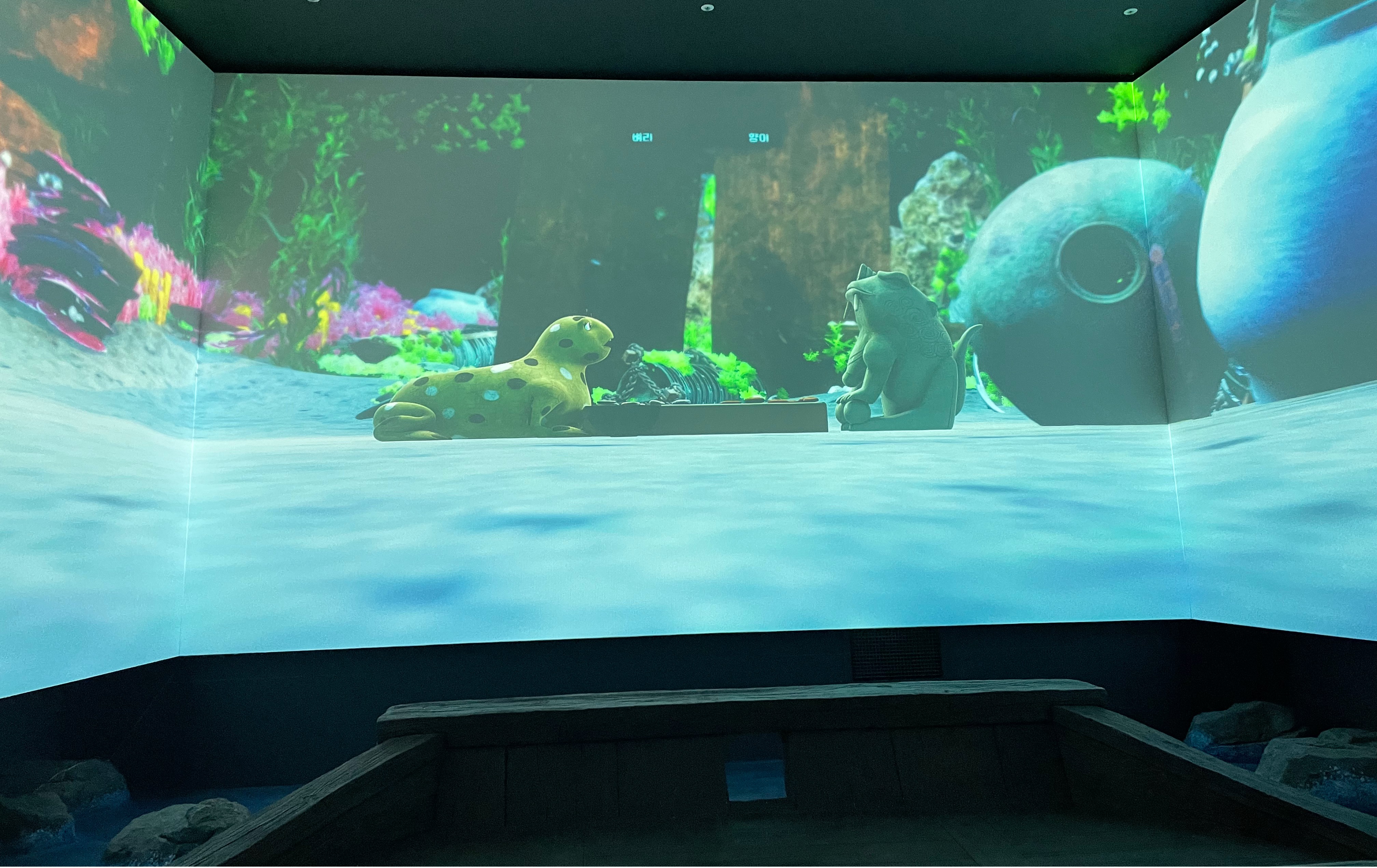 의인화된 유물 두 점 향이(청자사자모양향로), 벼리(청자두꺼비모양벼루)가 주인공으로 나와 어찌하다 바닷속에 가라 앉게 되었는지, 어떻게 바다 밖으로 나오게 되었는지, 그리고 이 유물들을 지금 어디서 볼 수 있는지! (당연히 바로 여기, 국립태안해양유물전시관 전시실 이죠!)를 소개해 줍니다.