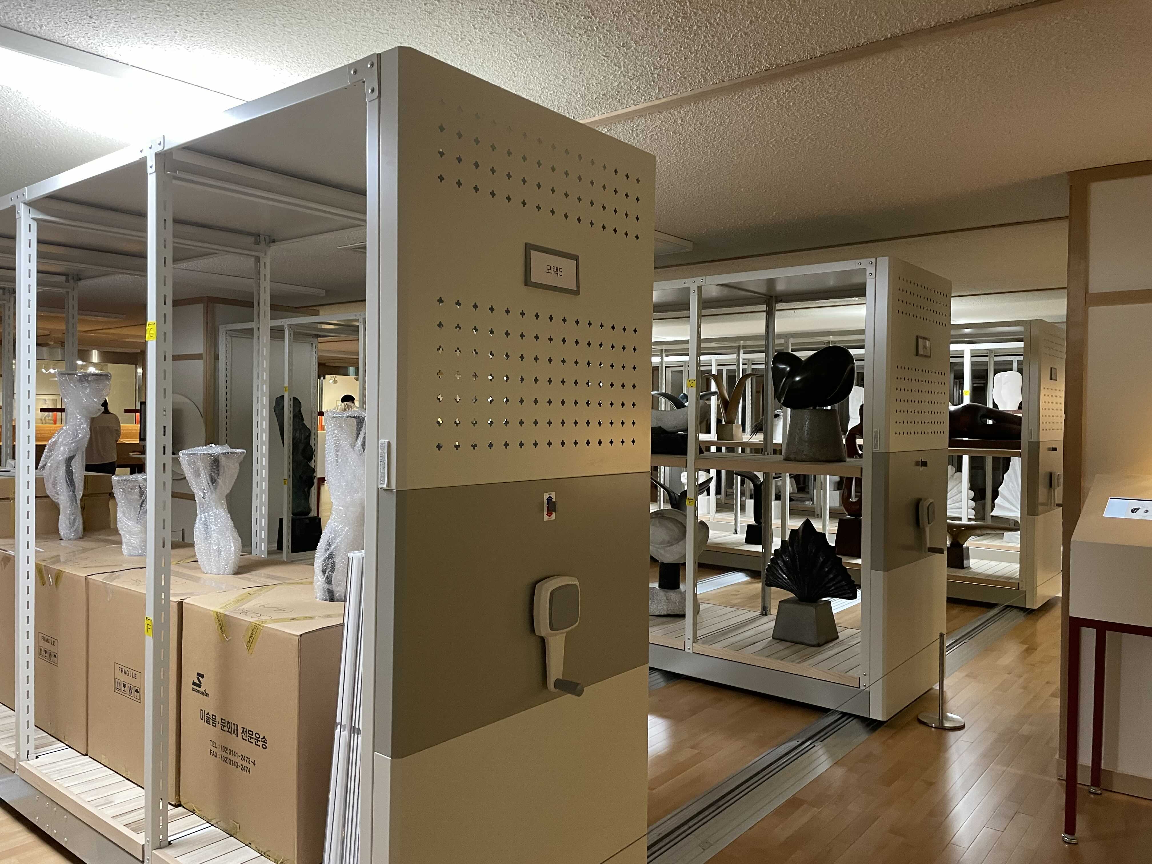 사실 개방형 수장고 전시이지만 박물관 내에서도 어떤 소장품을 주로 소장하고 있느냐에 따라 전시기법적인 면에서 차이가 있습니다. ('국립민속박물관 파주관'과 '국립경주박물관 영남권수장고')