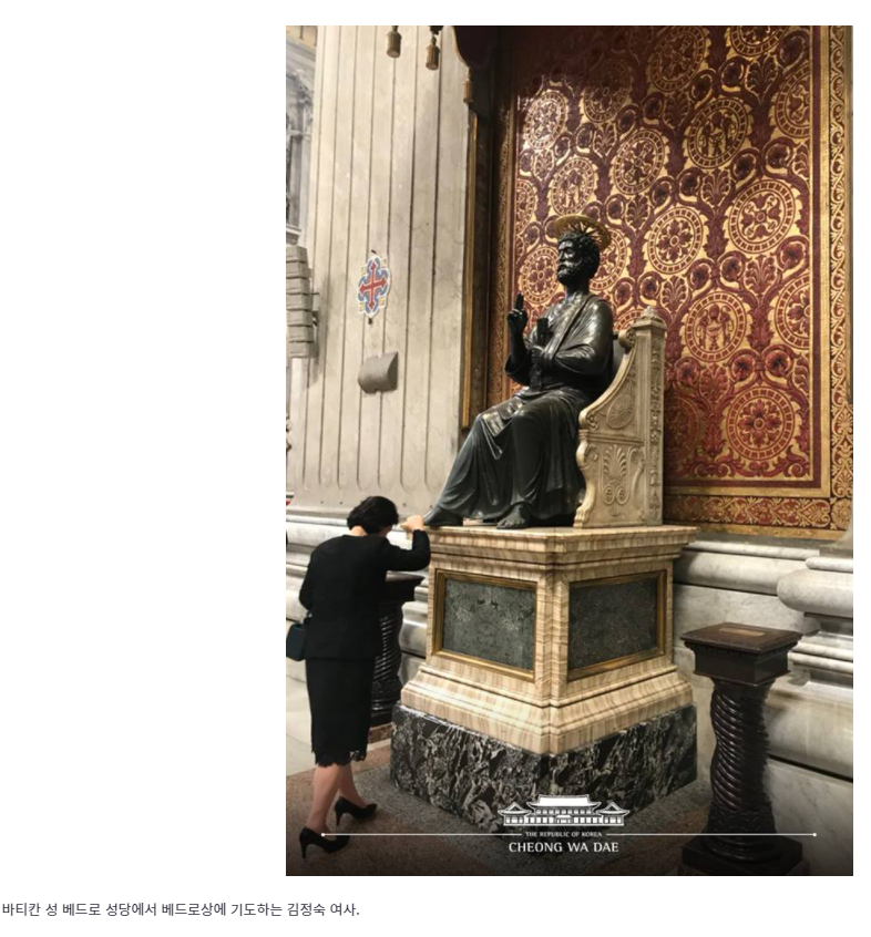 그런 와중에 문재인이 2018년 10월에 바티칸을 시작으로 덴마크를 도는 7박9일간의 유럽순방길에 올랐다가 21일 귀국했다. 이 글을 쓰는 오늘 현재 이 시간에도 대한민국 청와대 홈페이지에는 이때 바티칸 공식 방문을 담은 사진과 영상들을 소개하는 자료가 올라와 있으니 개중 두어 컷 골라본다.