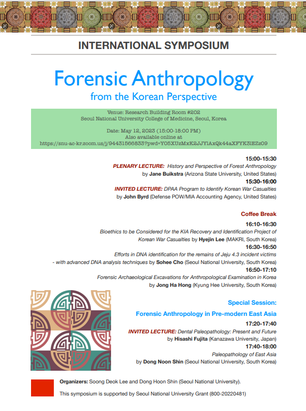 법의인류학의 현재와 미래를 짚어보기 위한 국제 심포지움이 아래와 같이 개최됩니다.