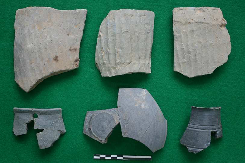 ○ 중앙토루에서 내부에서 확인된 출토유물로는 2단투창 대각편 및 토기 등으로 볼 때 최초 성벽의 축조는 5세기에 이루어진 것으로 파악됨. 이후 폐기된 수혈유구 내부에서 단각 고배편 인화문 토기 등이 수습되어 6세기말~7세기경 성벽의 개축이 이루어짐.
