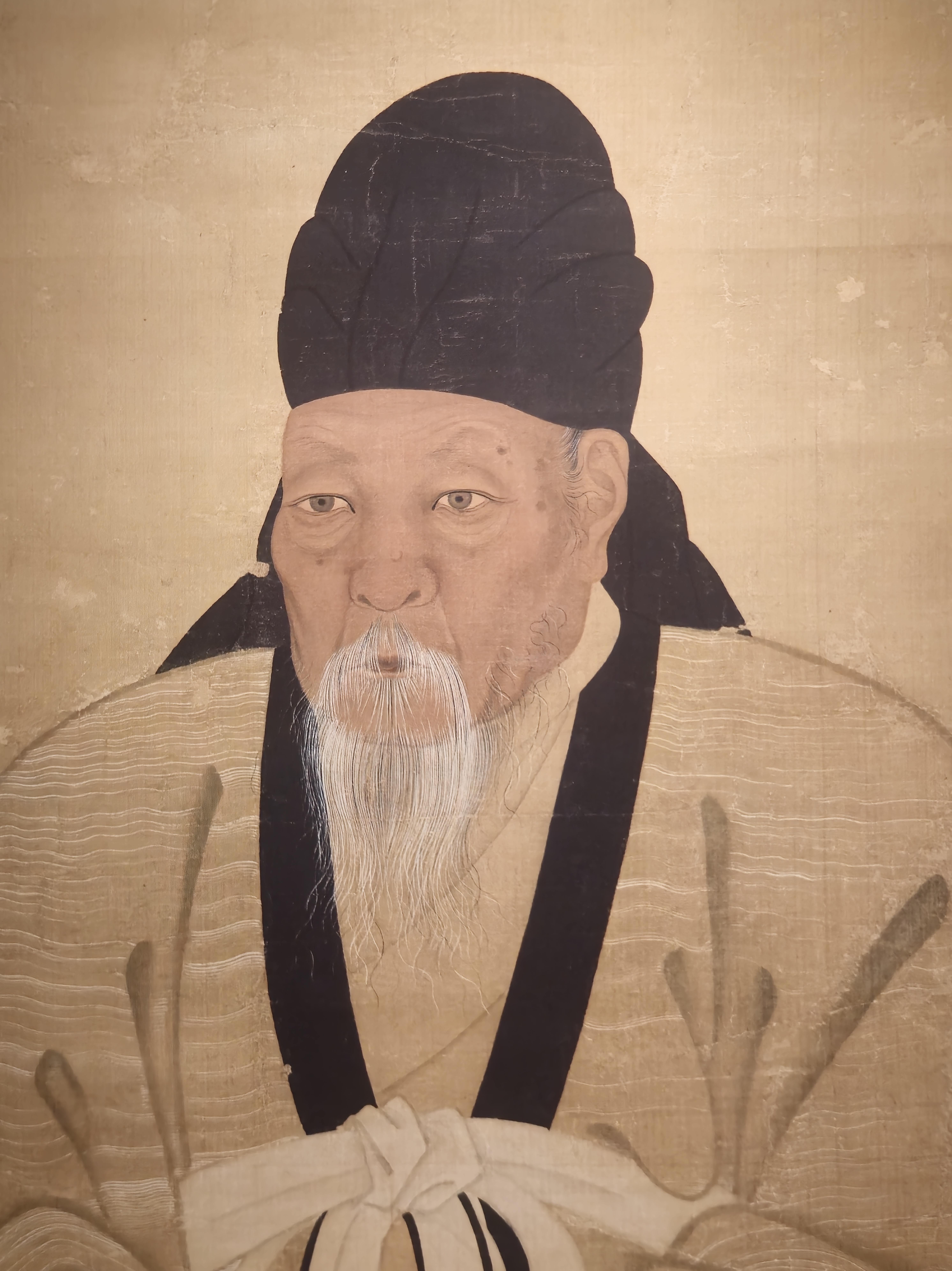 옷의 질감과 입체감을 표현한 흰색 물결 모양의 무늬는 다른 초상화와 다른 독특한 점이다.