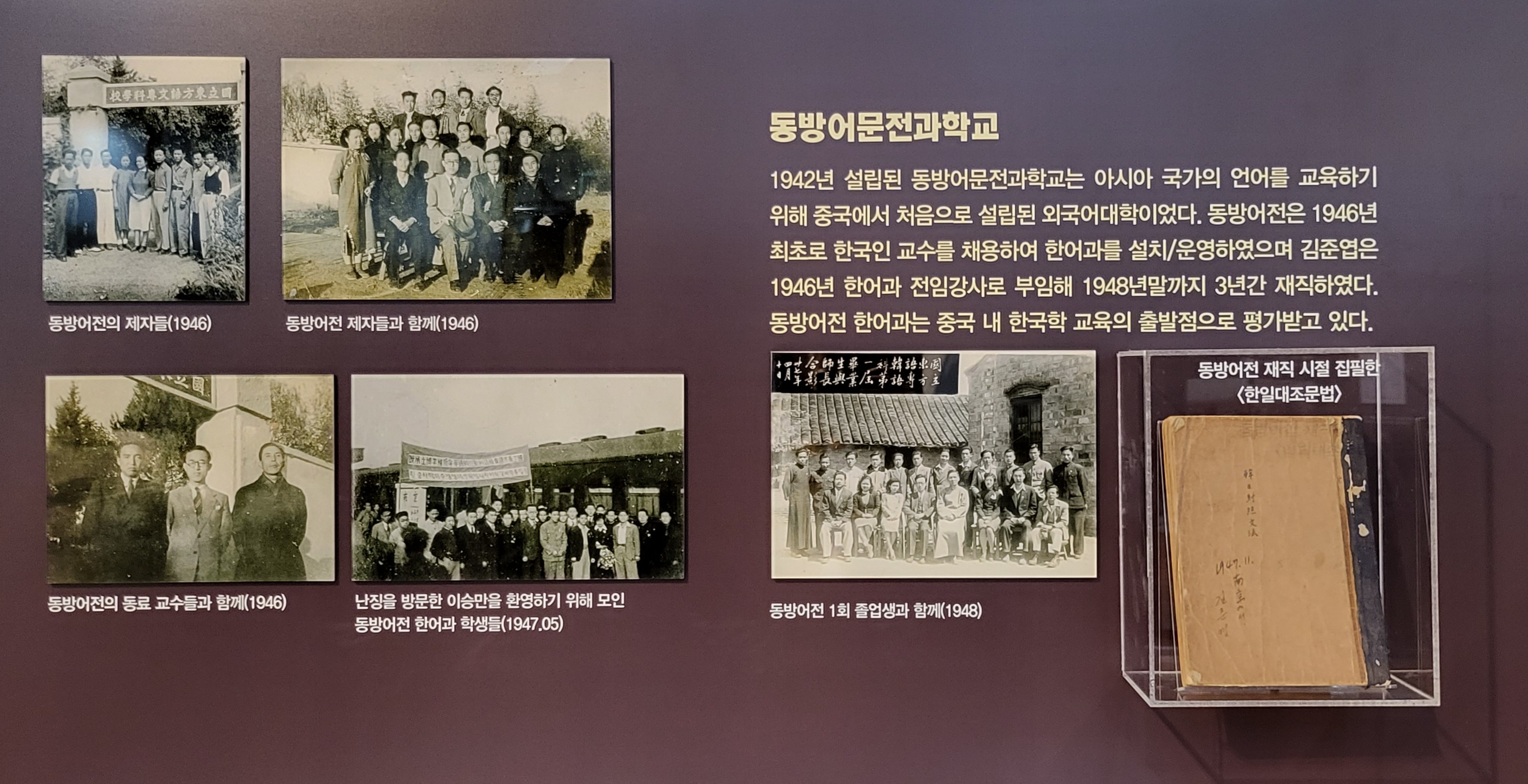 동방어전은 1946년 최초로 한국인 교수를 채용하여 한어과를 설치 운영했으니 김준엽은 1946년 한어과韓語科 전임강사로 부임해 1948년말까지 3년간 재직한다.