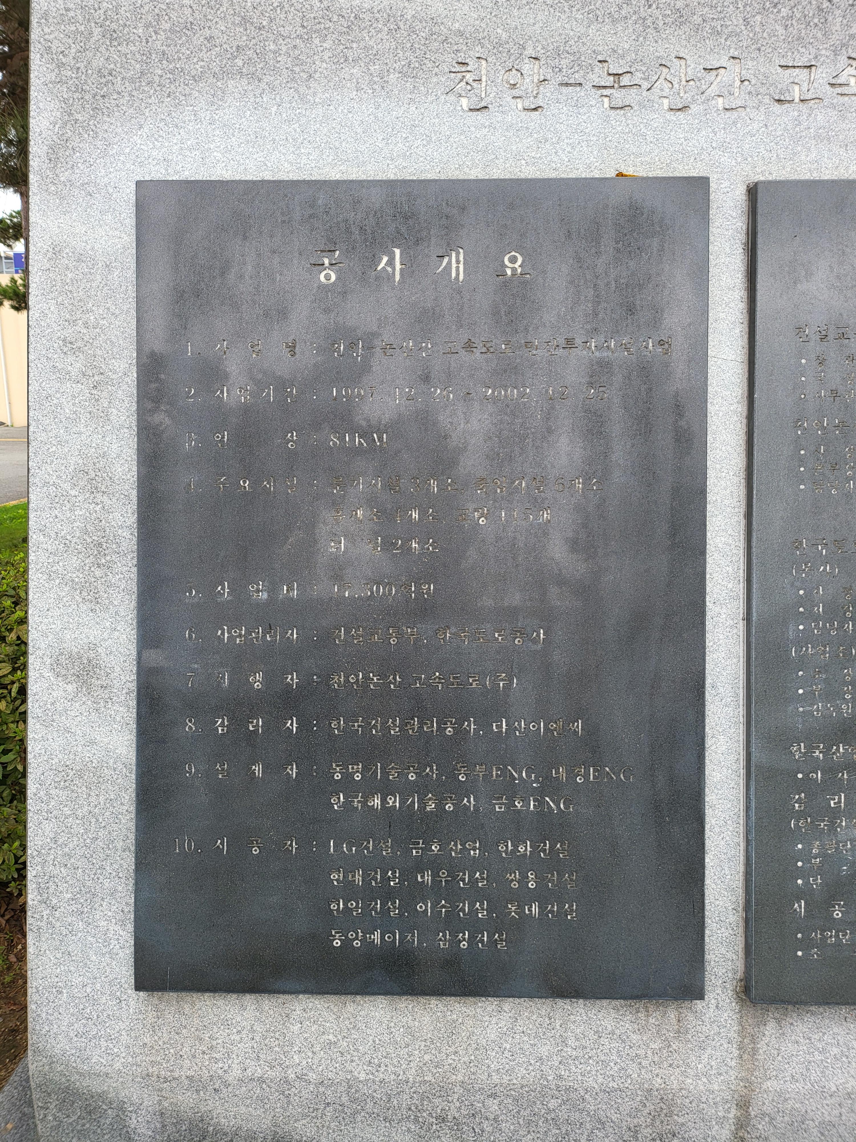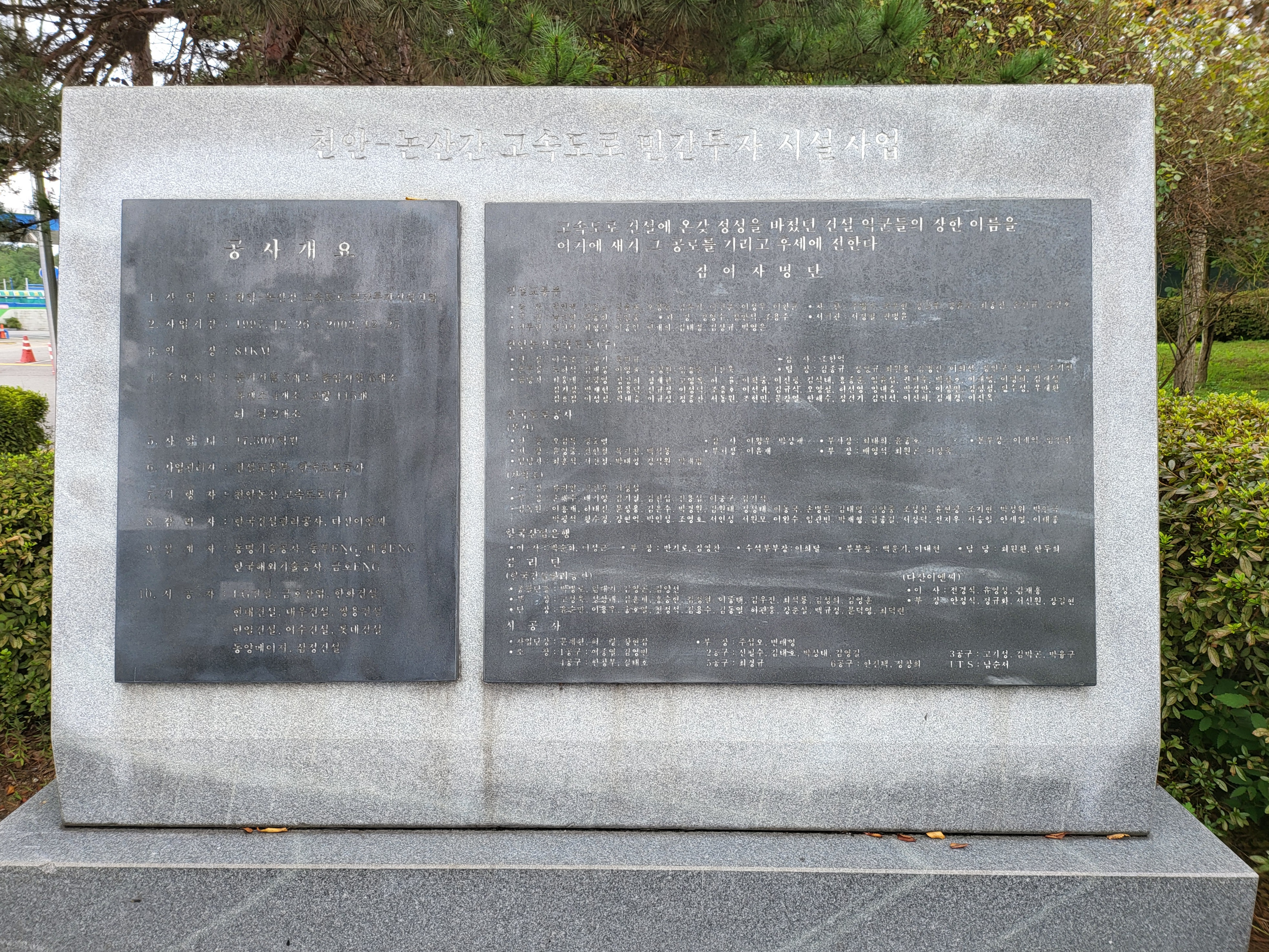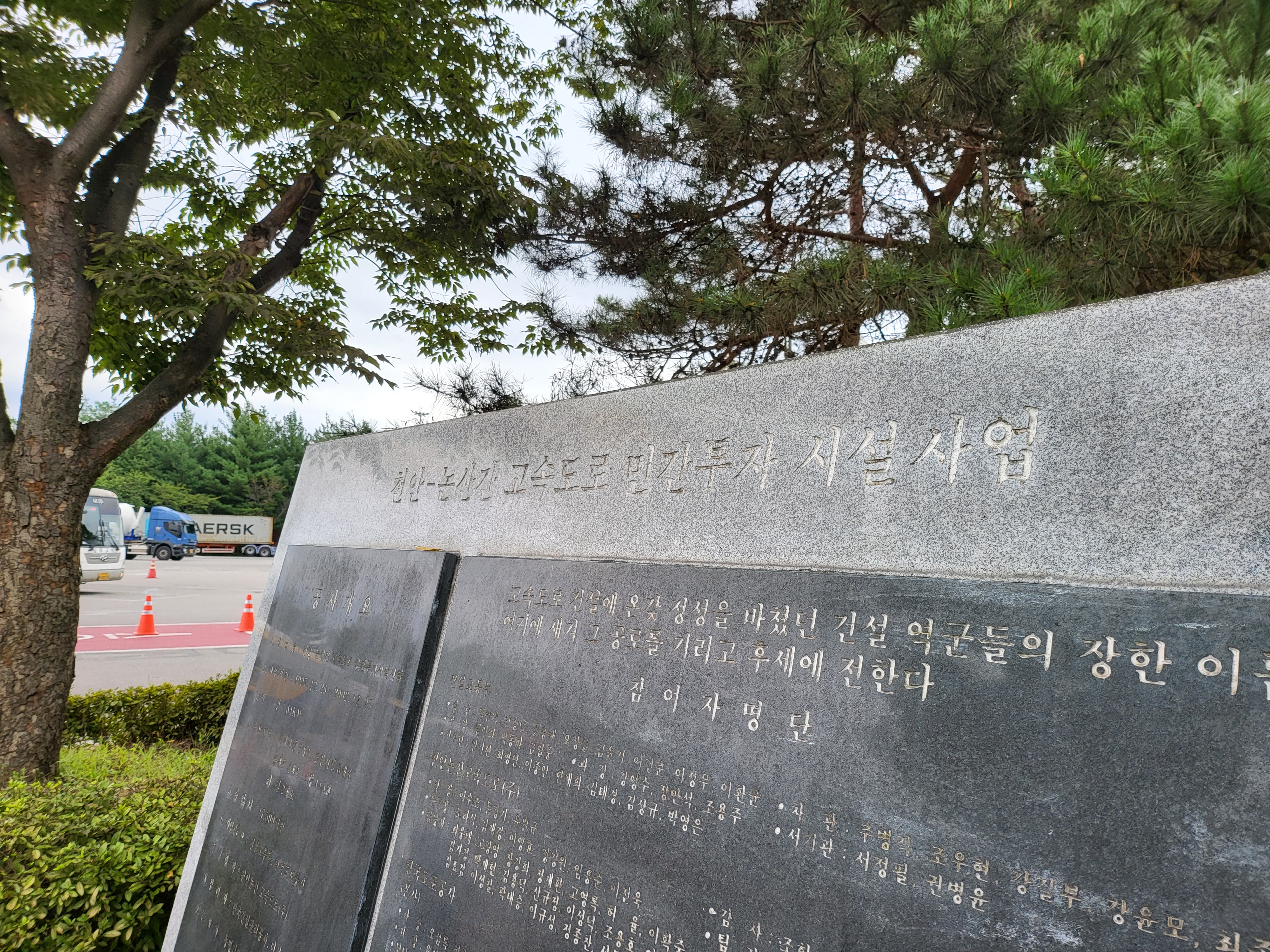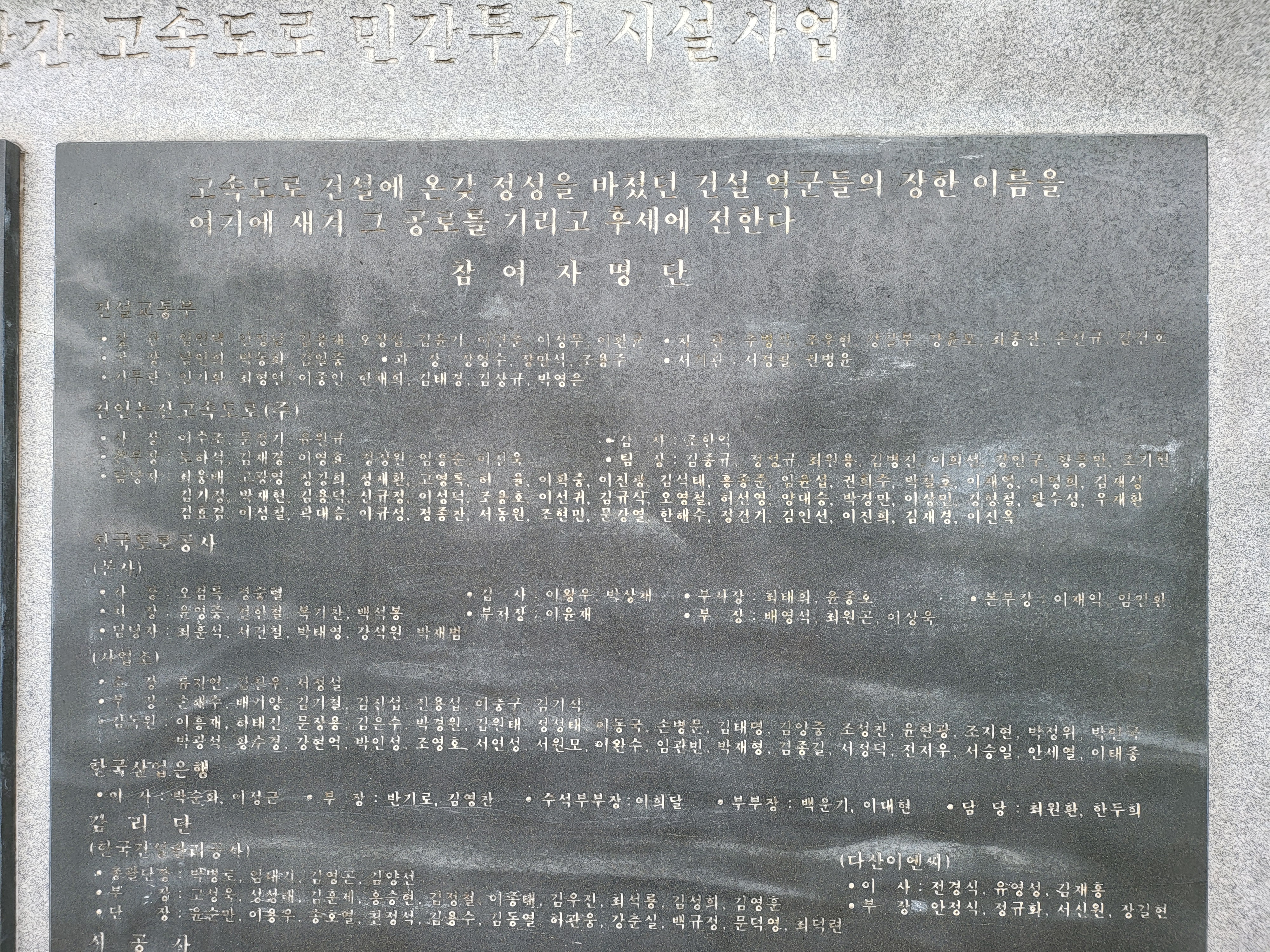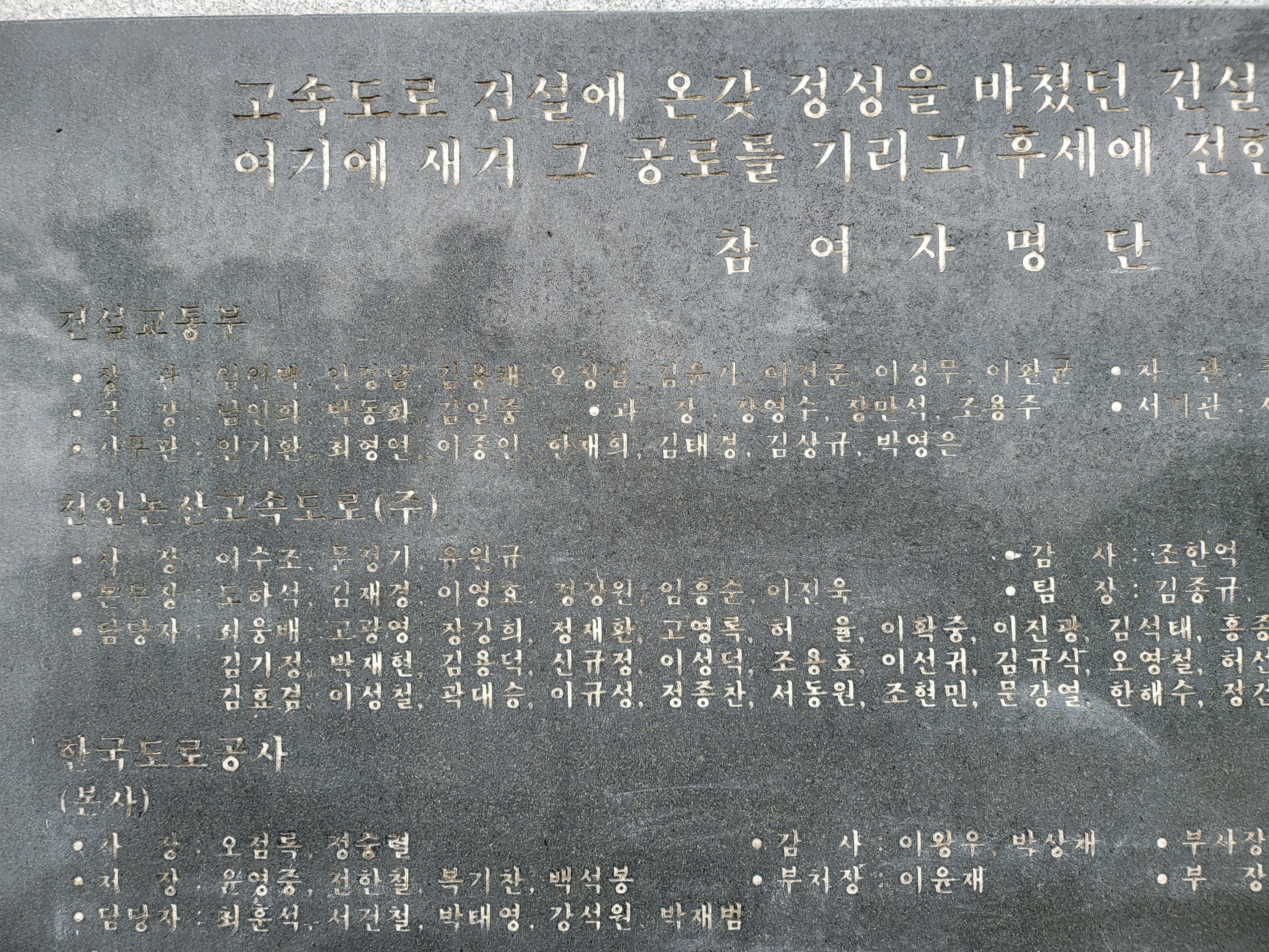 다 바래서 이젠 육안으로 읽기도 힘든 고속도로 건설 참여자 송덕비라