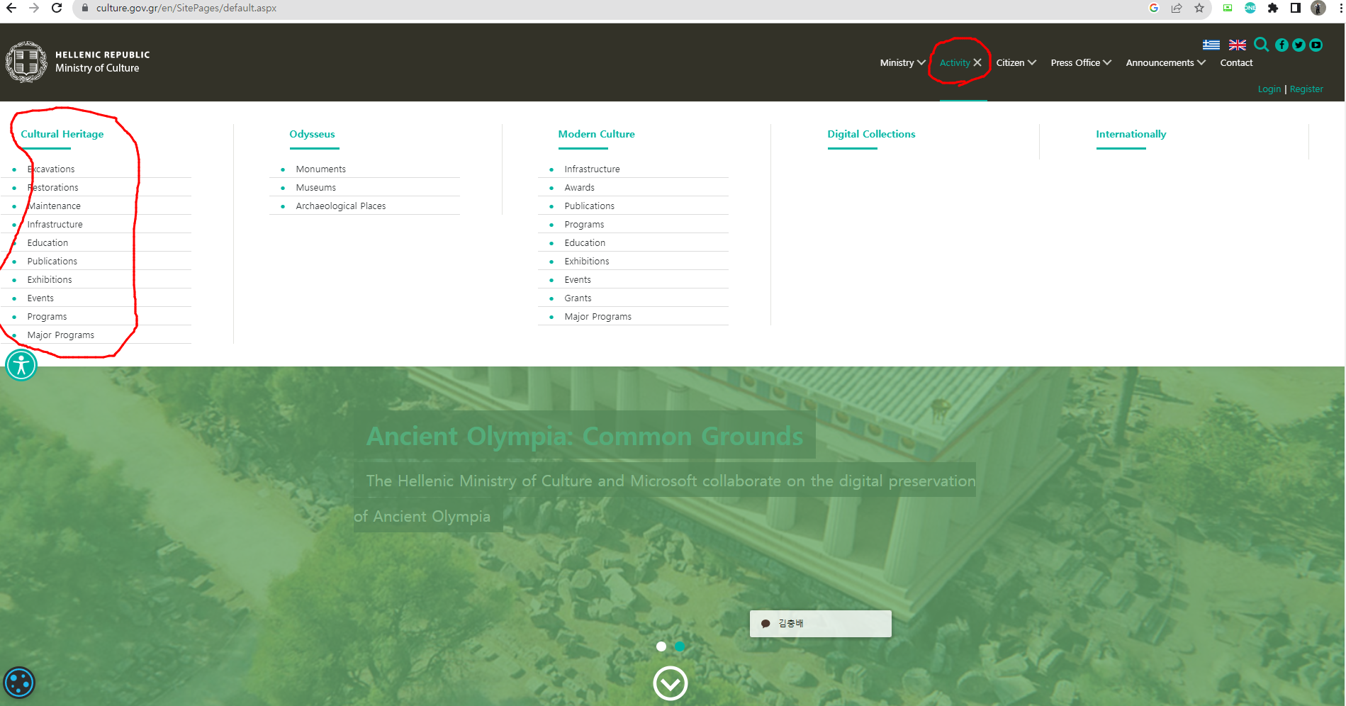 아무튼 이 기관 영문 공식 명칭은 Hellenic Ministry of Culture and Sports 라, 우리로 치면 체육 업무까지 겸함을 본다.