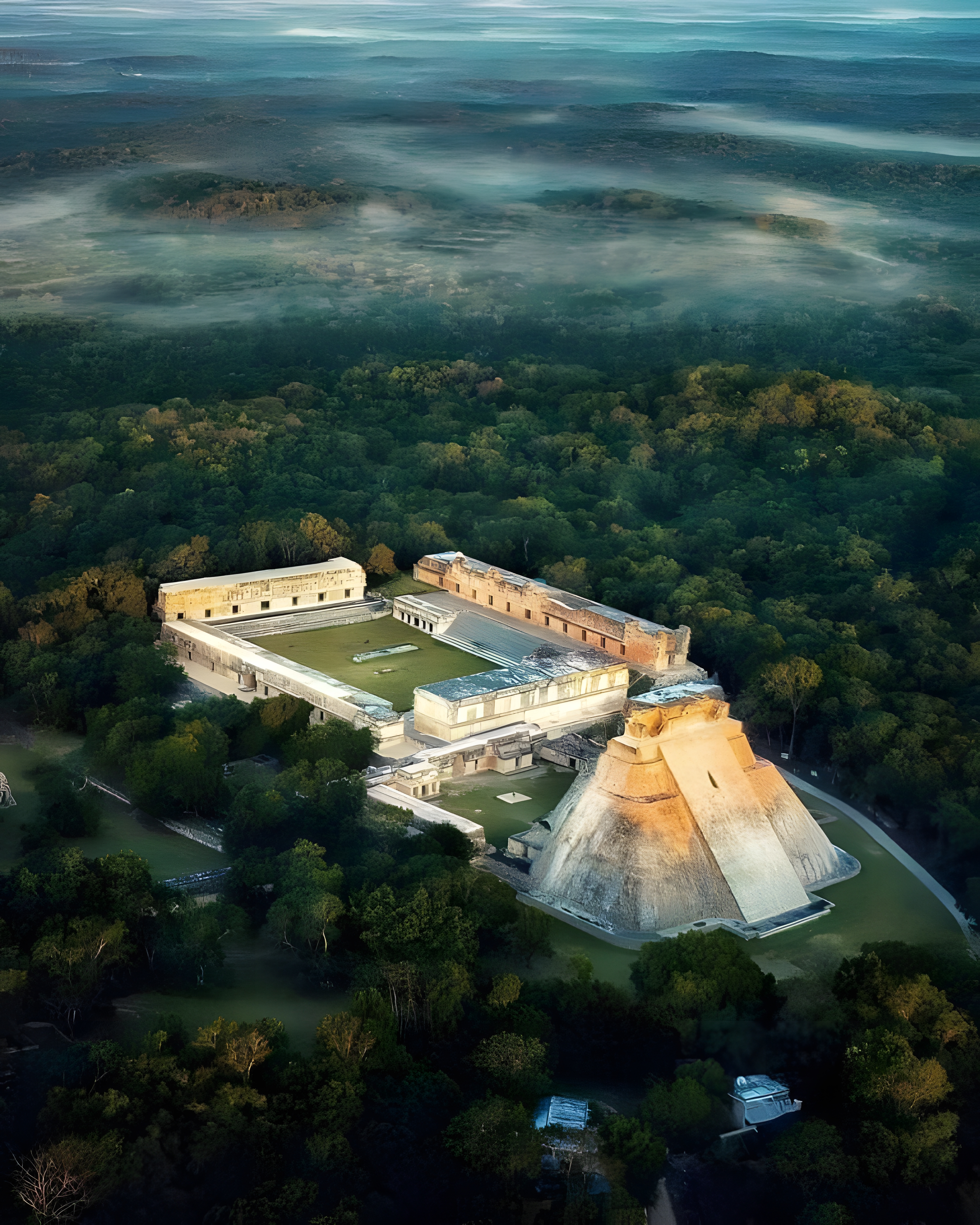 A truly fascinating aerial photograph of the ancient Maya city of Uxmal.
