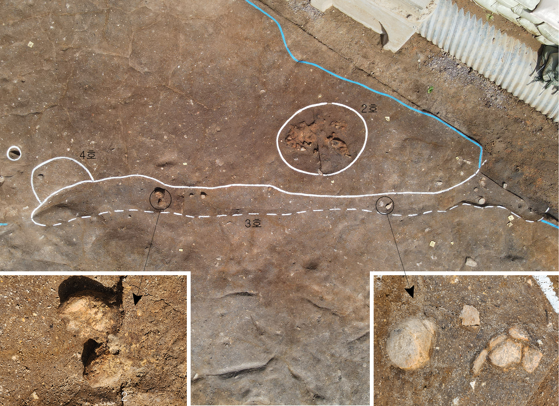그 결과 청동기시대 사람들 산 흔적이 확인되었다는데, 이번 조사구역 내에서 이미 2007년 확인한 송국리형 집터 2동을 비롯해 총 3개 동 집터와 불 먹은 흔적 2곳, 정확한 기능을 알기 힘든 구덩이 7곳 외에 나무기둥 구멍 흔적 등 공동생활을 영위한 집단이 남긴 흔적이 드러났다고 한다.