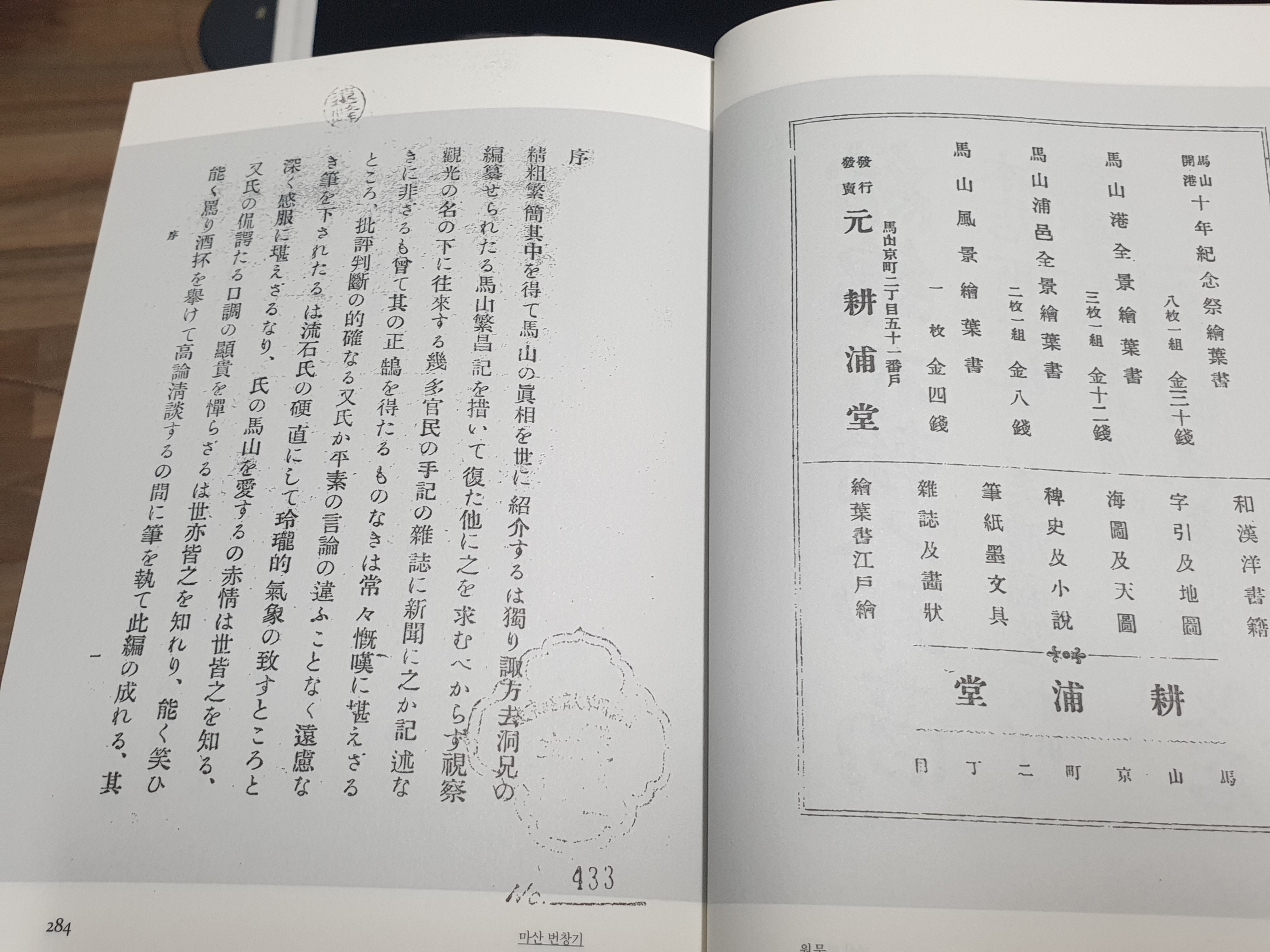 이번 책은 창원시정연구원이 기획한 창원학 시리즈 첫번째 성과로 1908년 스와 부고츠諏方武骨가 집필한 《마산번창기馬山繁昌記》를 완역하고 해제하는 한편 무엇보다 번역 저본을 영인첨부했으니 책을 장식한 무수한 광고는 근대 국가가 무엇인지를 웅변한다.