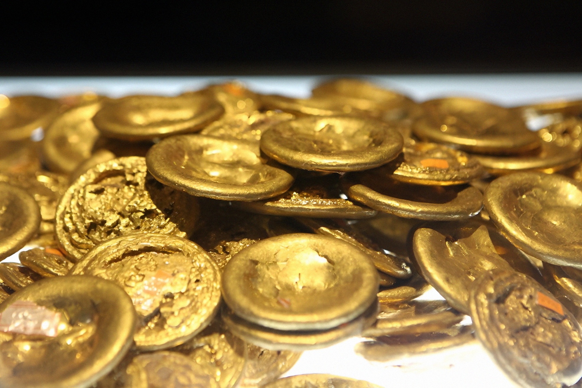 gold discs, western han dynasty(206 bc~8 ad), excavated from dongshilipu village, tanjia town, weiyang district, xian city, china. Housed at Shaanxi History Museum