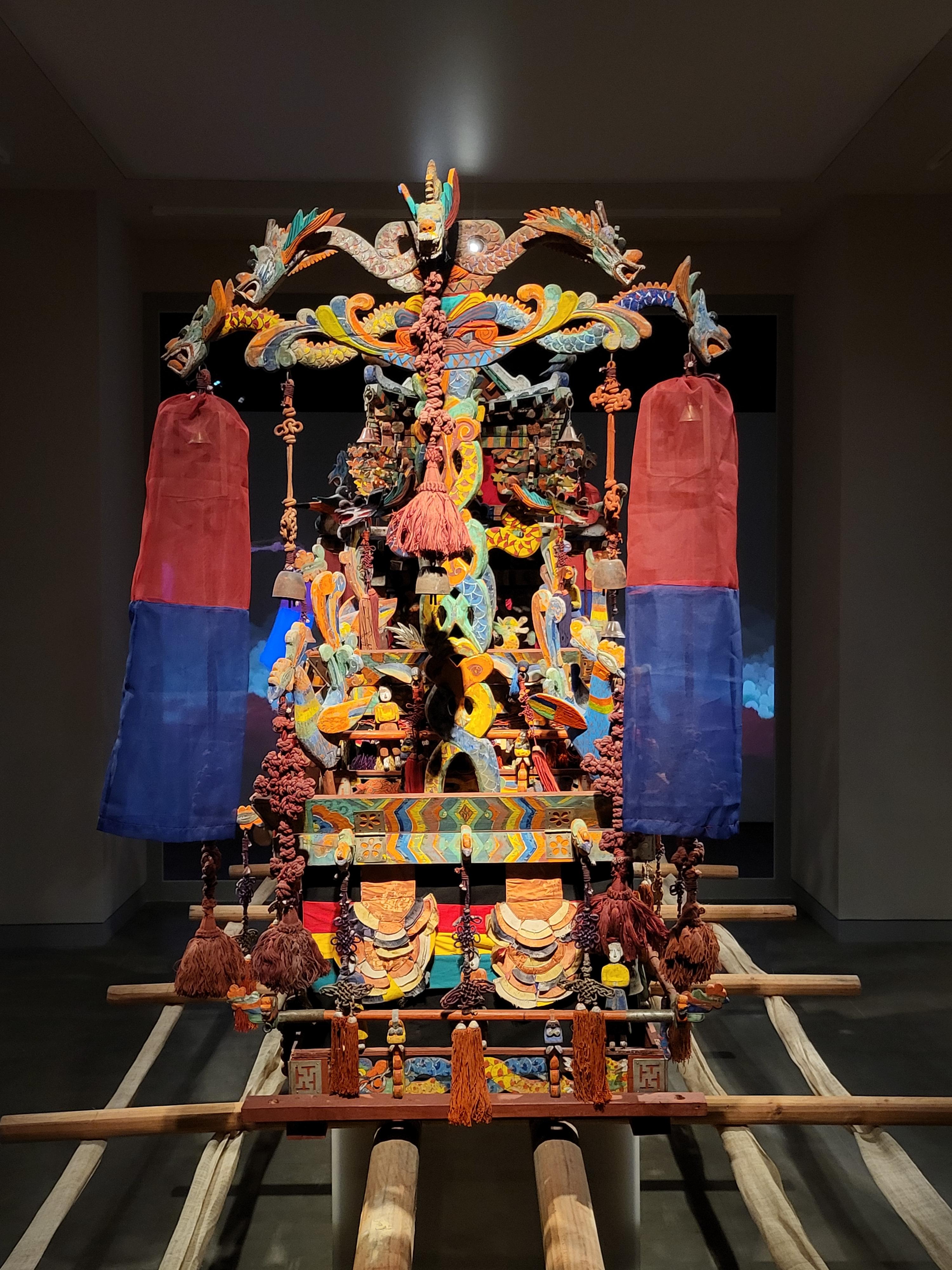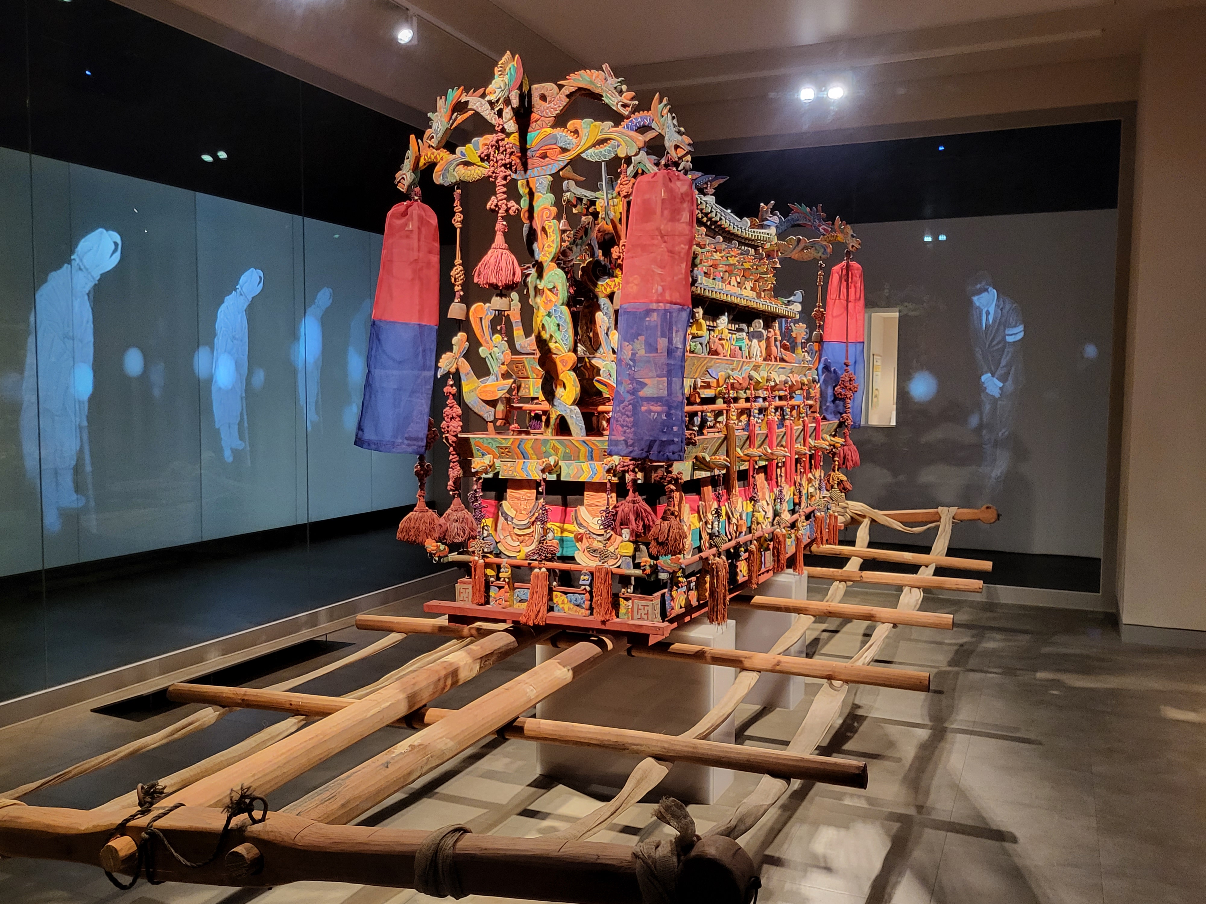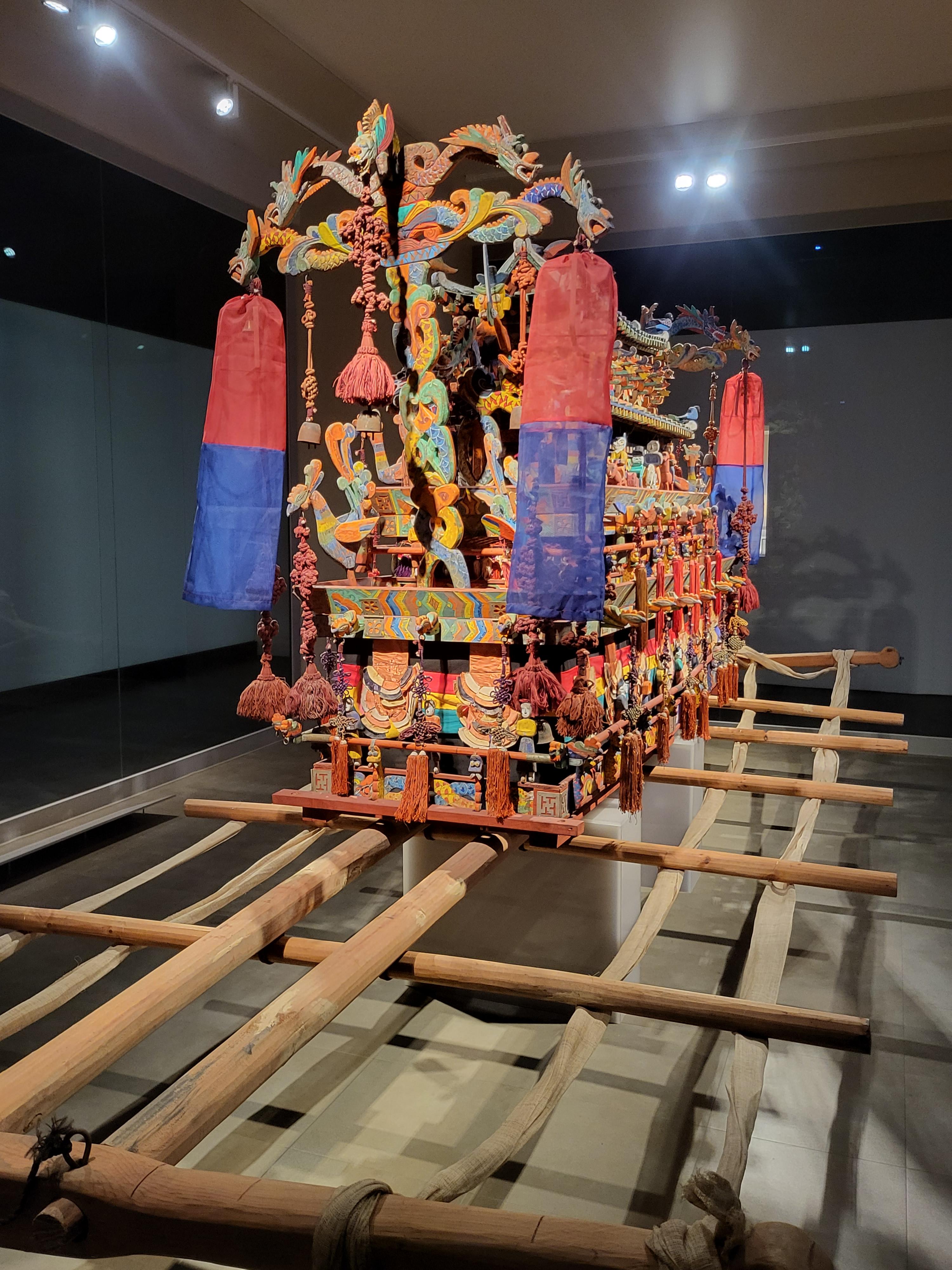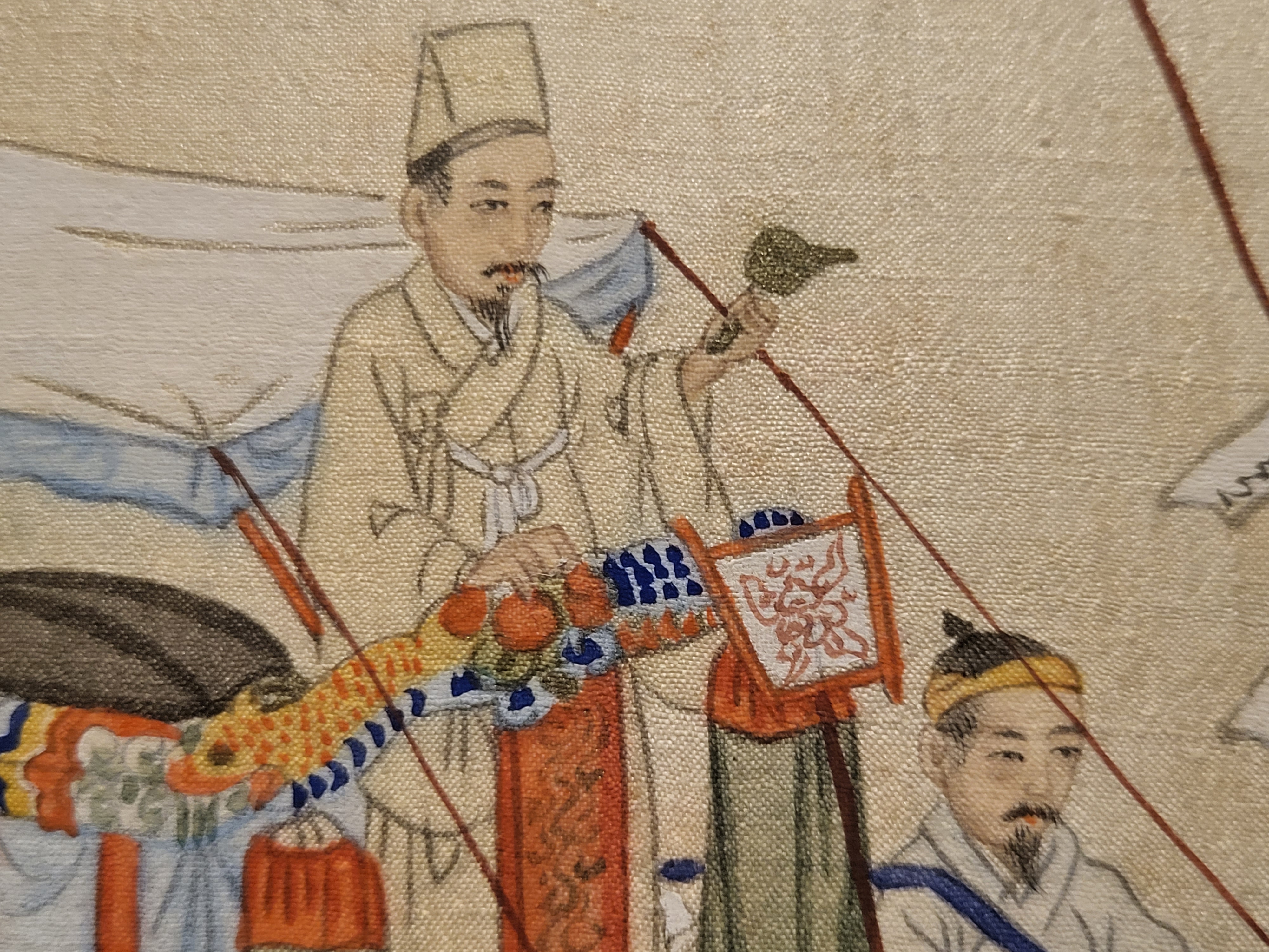 People and procession objects are sequentially depicted, induding myeongjeong (a funeral banner), gongpo (a hemp cloth banner), yoyeo (funeral elegy), wunsab (signs carried at the front and back of the funeral procession), asab (a ritual tool), sangyeo (bier), sangju (family of the deceased), and bingaek (funeral guests).