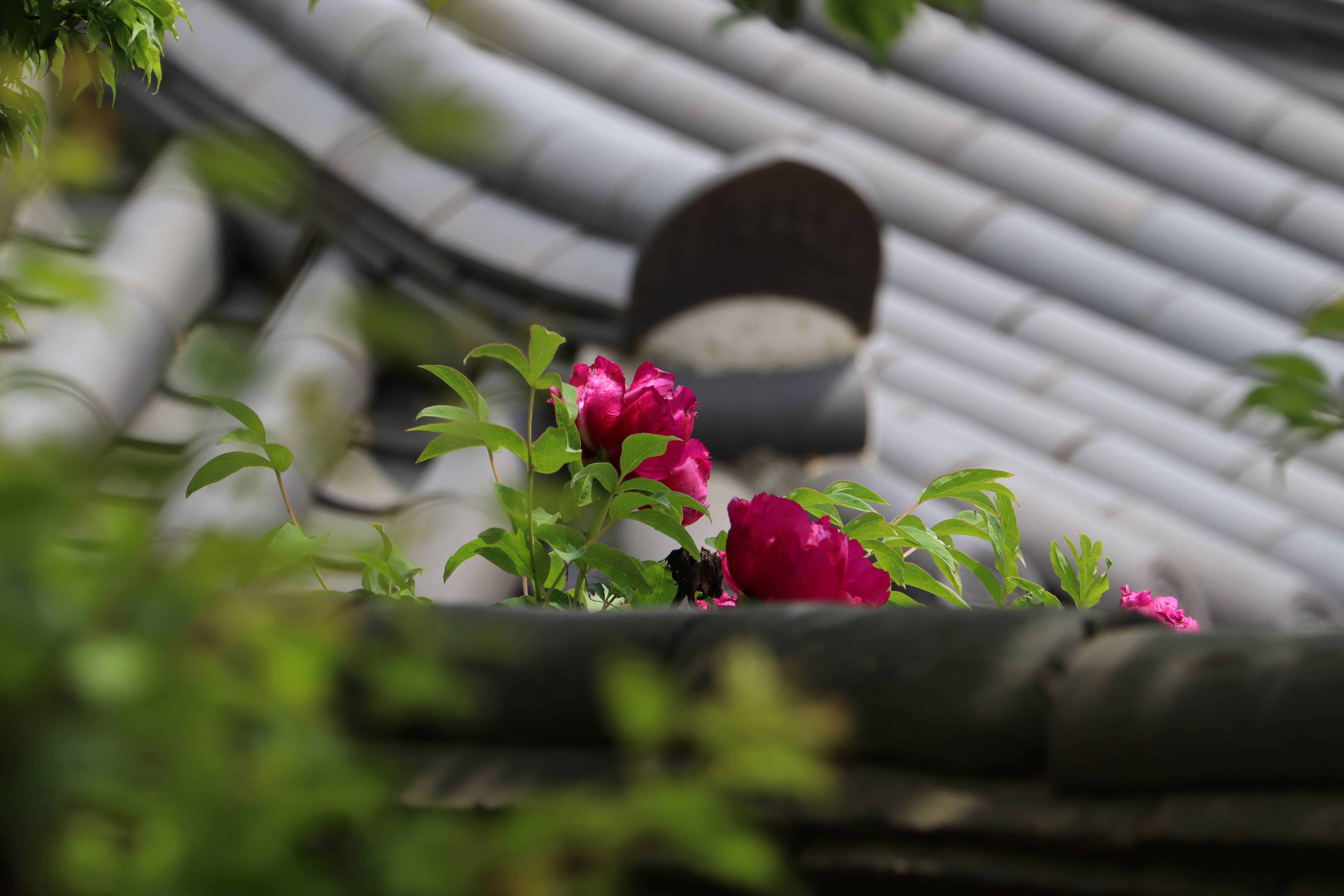 기와 담장 너머로 대가리 빼곡 내민 모란이 만개했다.